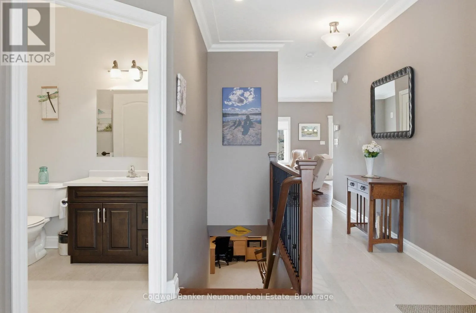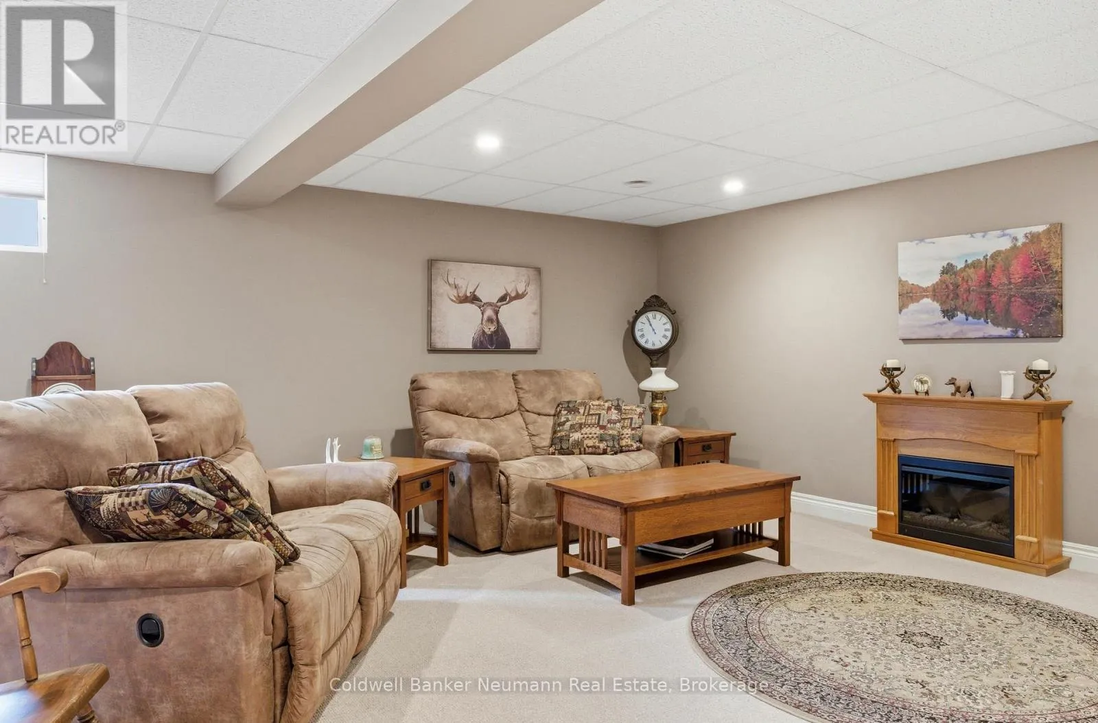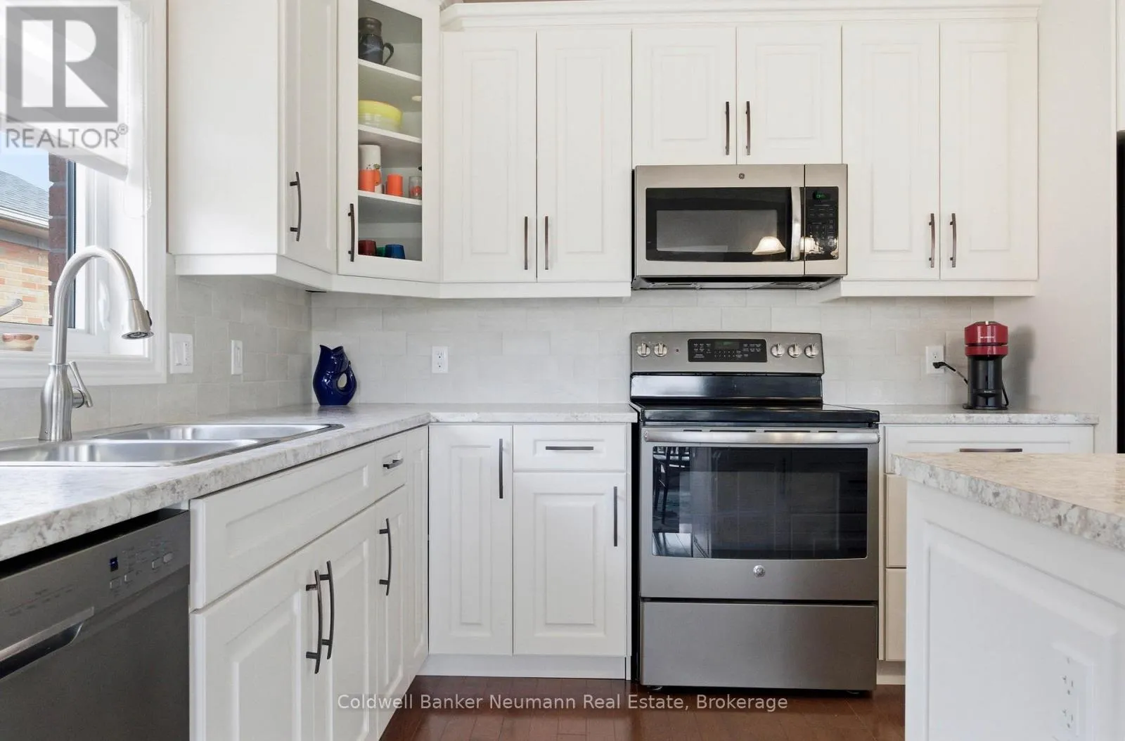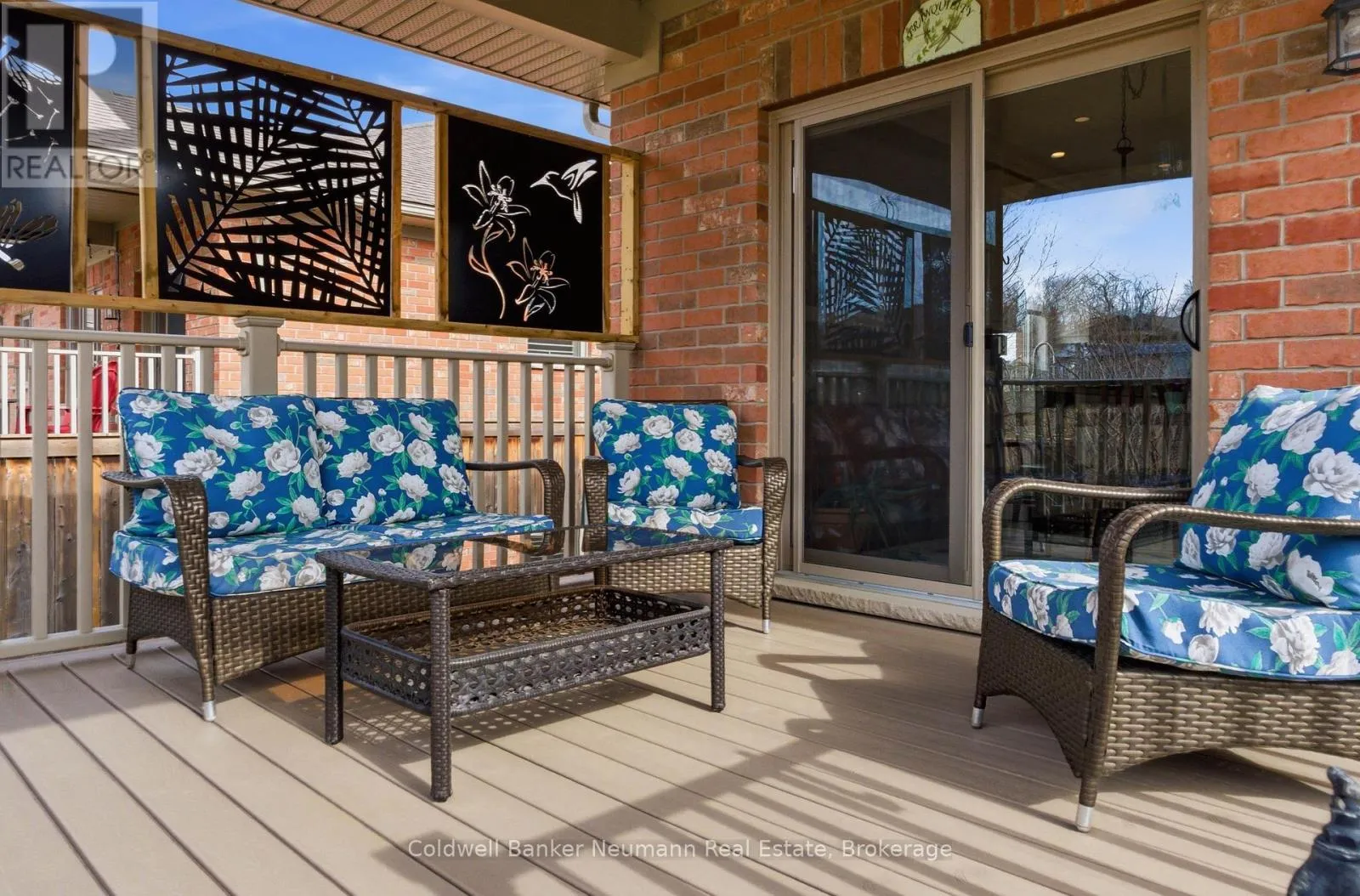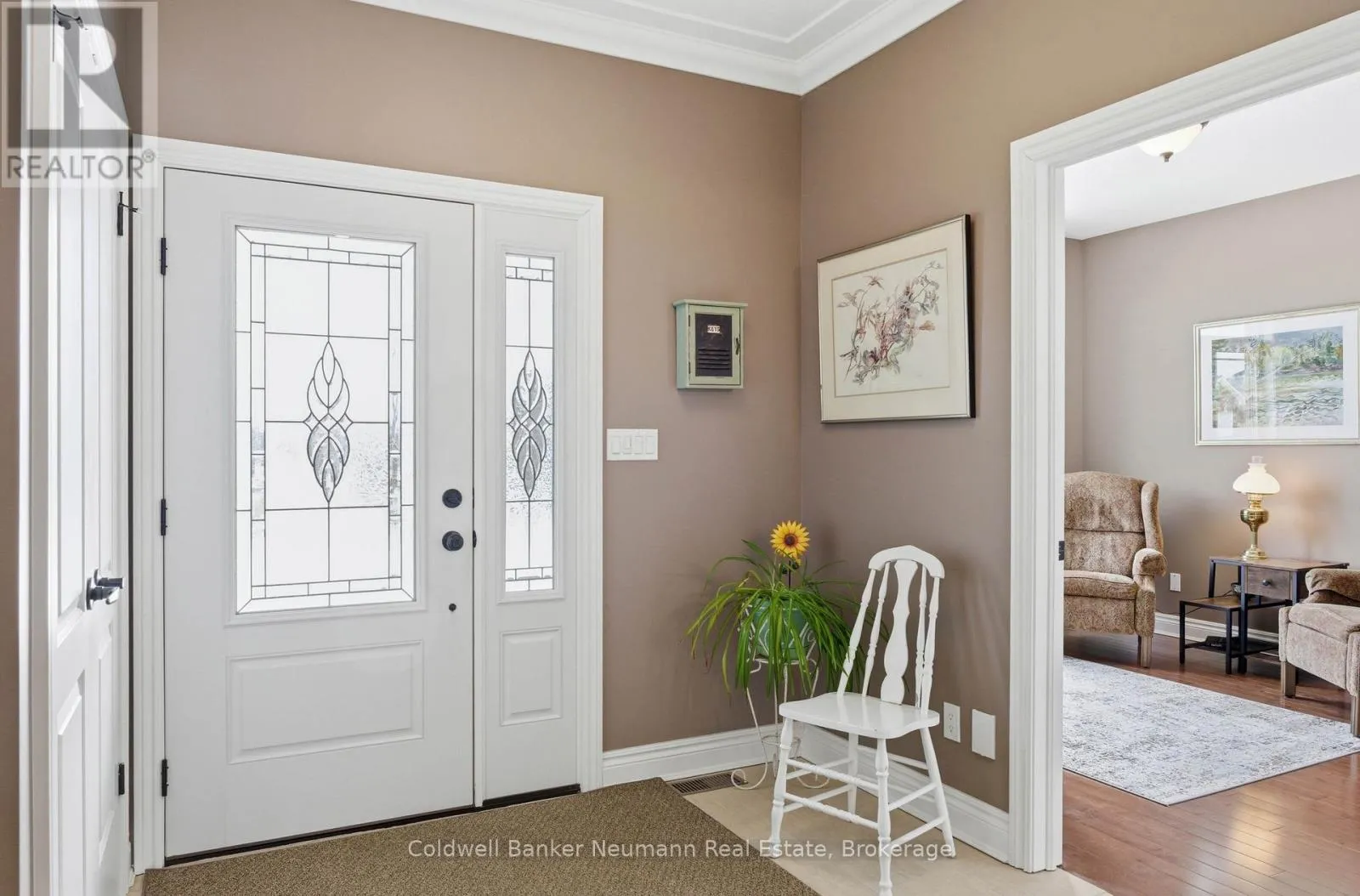Cross Streets: Nelson Street E/Allan Street E. ** Directions: Into Clifford on Arthur-Kincardine Rd/9, north on Nelson Street E. (turns into Brown Street S.), property on left. Welcome to this beautifully maintained, freehold 2+1 BR end-unit bungalow townhome, situated on a quiet street in the heart of Clifford. With the convenience of open concept, main floor living, this home offers style and functional coziness all at once. Immediately evident are high quality details like 9' ceilings and crown moulding, as well as a carpet free main floor. The bright kitchen features plenty of cabinetry, a working island w/bar seating, stylish bronze hardware & soft, muted subway tile backsplash. There is a convenient nearby pantry, & laundry closet with stackable machines. The adjacent dining area is spacious to host family dinners, open to the living room, while also leading out through sliding doors to the covered, spacious, composite rear deck. The landscaping has beautifully evolved over the years, with perennial bushes and trees, including pyramidal oaks, service berry and flowering pear tree, while also incorporating privacy features and a handy 8x12 garden shed. Plus, the lower patio area features a gas line for BBQing. Back inside, there are 2 main floor BRs, with the primary featuring a spacious 3pc ensuite, as well as a main floor 4pc bath. The basement is completely finished, w/large rec room, bedroom w/walk-in closet, 3pc bath, and abundant storage in the utility room. There is an oversized 1-car garage and parking for 2 in the driveway. Clifford is a charming and growing small-town community, all while being strategically positioned within reach of several key urban centres, making commuting or day trips both simple and efficient. Enjoy being near larger towns like Hanover, Listowel & Mount Forest, approx. 60 mins to Lake Huron/Bruce Power, KW & Guelph, and approx. 2 hrs to Toronto/the GTA, and the year round recreation offered around Georgian Bay. Whether you're downsizing or seeking a quiet lifestyle within reach of major centres, this home delivers exceptional value in a location that balances connectivity with country charm. (id:27476)