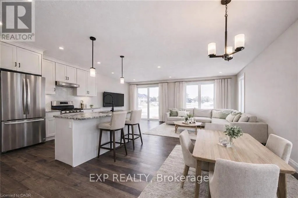 From Elora St S, turn onto Anne St W, left on John St, right on Bean St and then left onto Thackery. Welcome to Maitland Meadows, where modern design meets small town comfort. This brand new Woodgate model offers the perfect upgrade for young professionals or growing families who want more breathing room without the noise that usually comes with townhouse living. These homes are only connected at the garage wall, giving you the privacy and quiet you've been craving. Inside, you get that fresh, contemporary style everyone wants today. Bright, open spaces, thoughtful upgrades already included, and a full appliance package so move in day is truly turn key. Outside, you'll love the peaceful neighbourhood vibe: safe, quiet streets, friendly neighbours, and farmland sunsets you'll never get tired of. Commuting is easy with larger centres about an hour away, and you'll enjoy all the small town essentials - fibre optic internet, natural gas heat, and full municipal services. Quick closing is available so you can start your next chapter sooner. If you're looking for an affordable new build with style, space, and zero hassle, this is the one. Additional perks include: Oversized garage with man door and opener, paved driveway, fully sodded yard, soft close cabinetry, central air conditioning, Tarion Warranty and survey all included in the price. (id:27476)