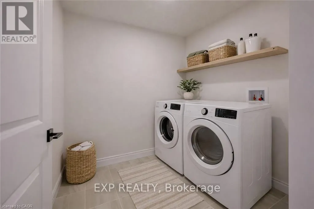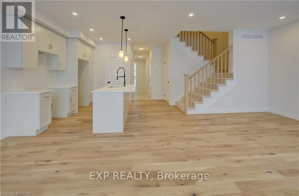 from Elora St S, turn onto Anne St W Step into easy living with this beautifully designed 1,799 sq ft interior unit, where modern farmhouse charm meets clean, contemporary finishes in true fashion. From the moment you arrive, the light exterior palette, welcoming front porch, and classic curb appeal set the tone for whats inside.The main level features 9' ceilings and a bright, functional layout starting with a generous foyer, powder room, and a flexible front room ideal for a home office, reading nook, or play space. The open concept kitchen, dining, and living area is filled with natural light and made for both everyday living and weekend entertaining. The kitchen is anchored by a quartz island with a breakfast bar overhang, perfect for quick bites and extra seating. Upstairs, the spacious primary suite includes a walk-in closet and sleek 3pc ensuite with beautiful time work and glass doors. Two additional bedrooms, a full family bath, and convenient second level laundry round out this floor with thoughtful design. The attached garage offers indoor access and extra storage, while the full basement is roughed in for a future 2-pc bath just waiting for your personal touch. Whether you're a first-time buyer, young family, or down sizer looking for low maintenance living without compromise, this home checks all the boxes. Ask about the full list of features or visit our fully furnished Model Home at 122 Bean Street and explore all your options at Maitland Meadows. Come Home To Calm in Harriston. (id:27476)