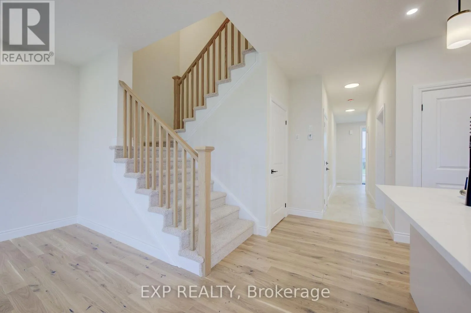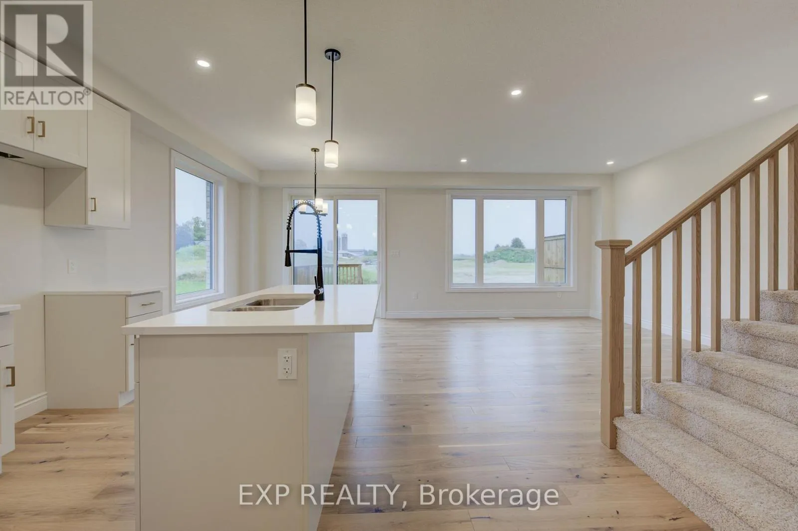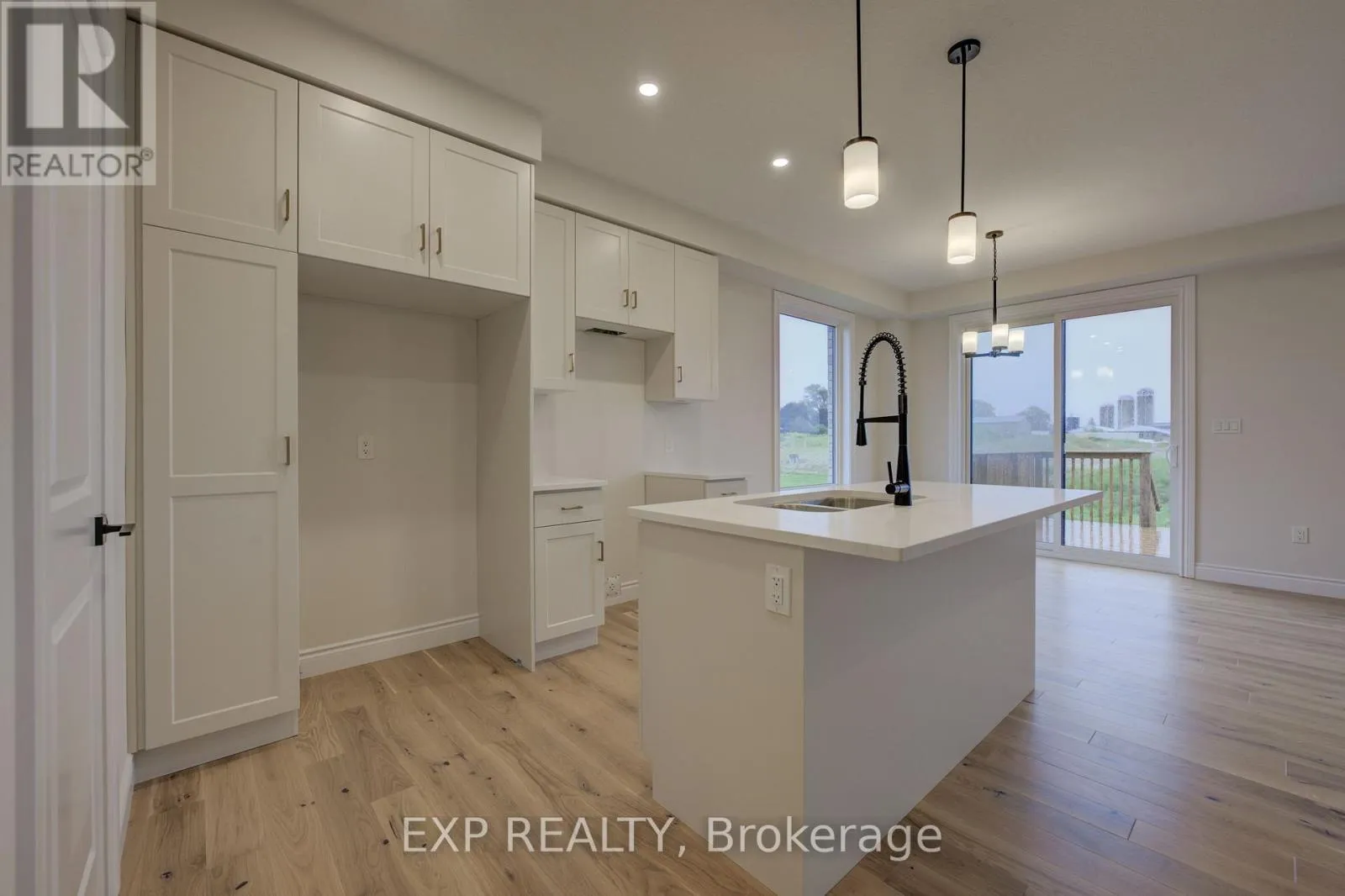 from Elora St S, turn onto Anne St W Welcome to The Town Collection at Maitland Meadows - The Homestead model is where modern farmhouse charm meets calm, connected living. This bright end unit offers 1,810 sq ft of thoughtfully designed space, filled with natural light and upscale finishes. With 9' ceilings and an open concept layout, the main floor feels airy and inviting - from the flexible front room (perfect for a home office or playroom) to the kitchen's quartz island that anchors the dining and living areas. Upstairs, the spacious primary suite features a walk-in closet and private ensuite, while two additional bedrooms and second floor laundry make family life effortless. Energy efficient construction helps keep costs low and comfort high, and the full basement offers room to grow. Complete with a deck and stylish finishes, this home is move-in ready, and if you're looking for that attached garage feature, it's here too! Designed for those who love the modern conveniences of new construction and the peaceful rhythm of small town life. For a full list of features and inclusions visit our Model Home located at 122 Bean Street in Harriston. (id:27476)