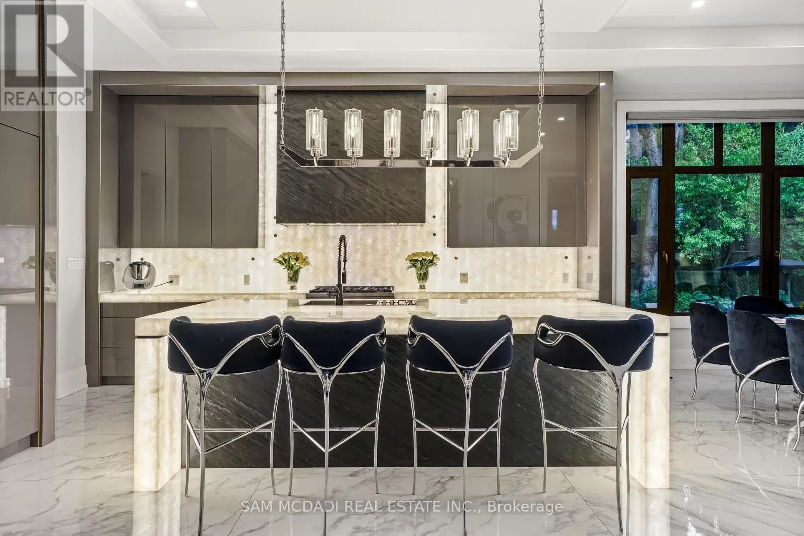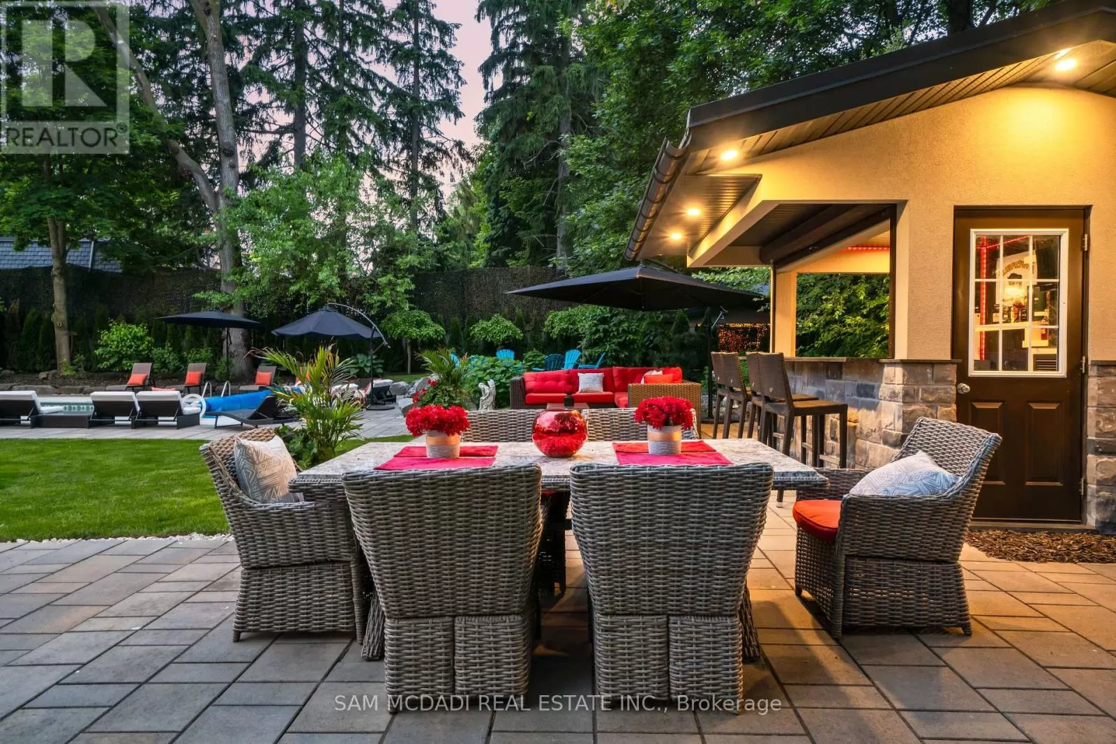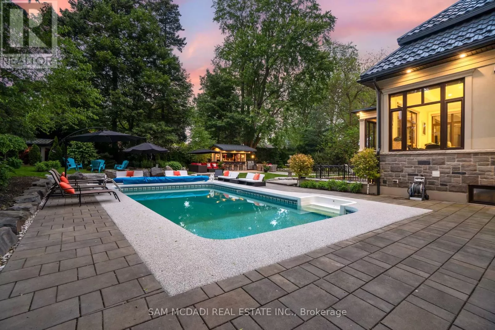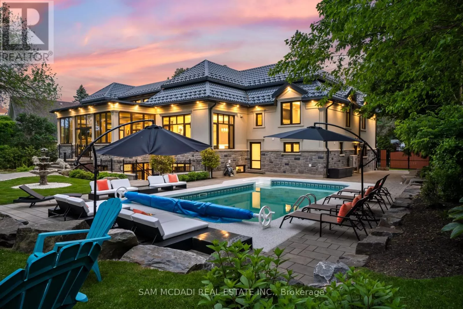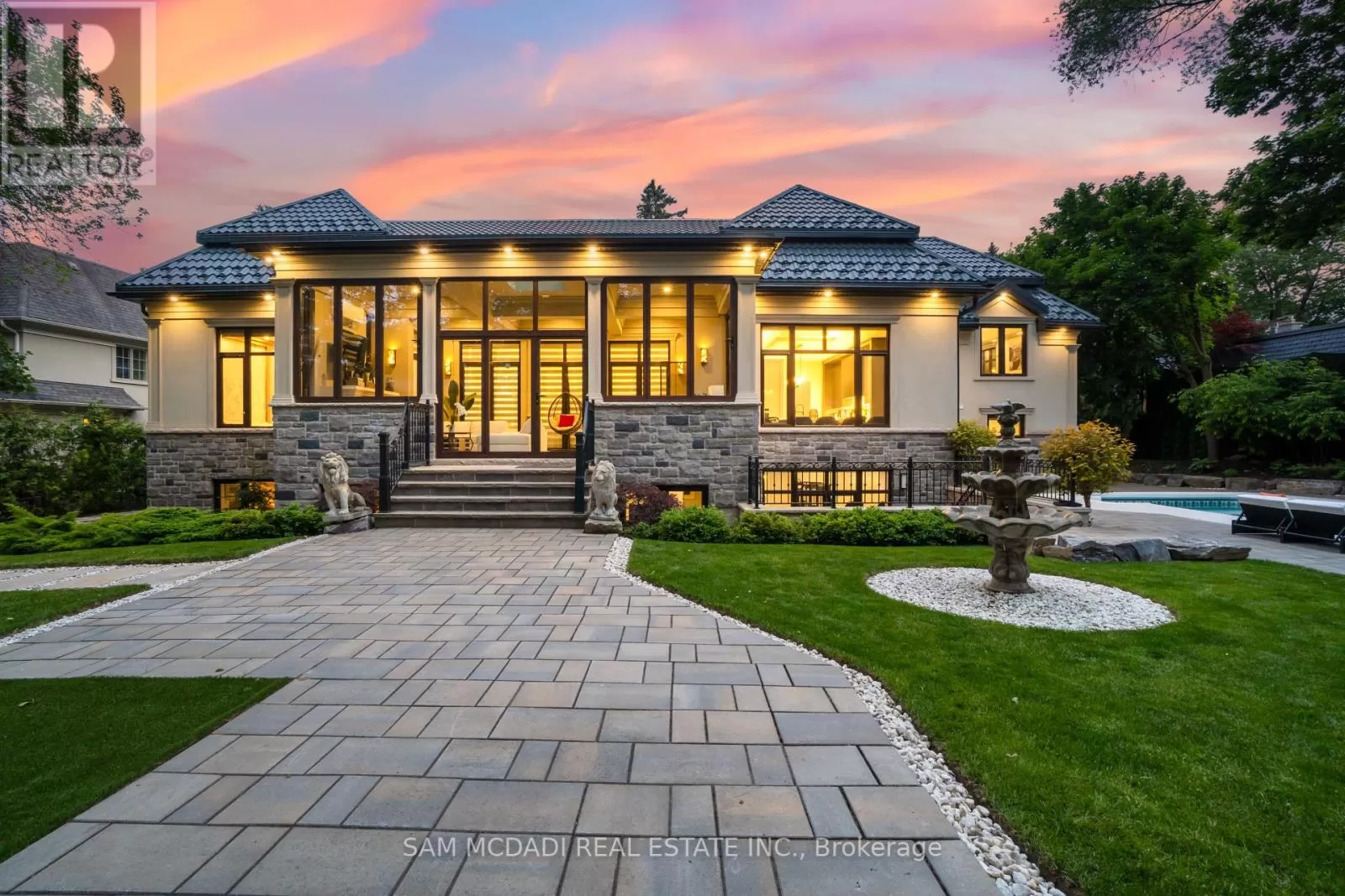 Cross Streets: Meadow Wood Rd/Lakeshore Rd. ** Directions: From Meadow Wood Rd, head towards Orr Rd, then left on Bob O Link, then right on Old Poplar Rd. Property will be on the right. Located in Mississauga's prestigious Rattray Park Estates, 539 Old Poplar Row is a bespoke residence offering 9,000+ sq ft of finished living space on a secluded half-acre lot just steps from Lake Ontario and the trails of Rattray Marsh. Behind solid oak doors, the home unfolds with quiet grandeur beginning with a dramatic foyer dressed in oversized porcelain slabs, hand-laid Versace inlays, and a soaring 20-ft ceiling framed in antique mirror panels and a sculptural chandelier. Thoughtfully curated design elements flow throughout, fluted wall paneling, underlit stone surfaces, and multiple fireplaces that warms the space. The living room stuns with a bookmatched porcelain feature wall, while the formal dining area and four-season sunroom set the tone for elevated, everyday living. The kitchen blends form and function with a glowing stone island, workstation sink, integrated knife block, and custom cabinetry with accent lighting, anchored by a sunlit breakfast room that opens to the backyard oasis. The main floor primary suite is a sanctuary unto itself with dual walk-in closets, and a spa-style five-piece semi-ensuite with direct access to the sunroom for morning coffee or midnight calm. Above, three bedrooms feature walk-in closets and ensuite or semi-ensuite baths, complemented by a private office and full elevator access across all levels. The lower level delivers on lifestyle: a full home gym, theatre, sauna, and showpiece wet bar wrapped in underlit gemstone with a floor-to-ceiling illuminated display. Outside, enjoy a heated saltwater pool, cabana bar with built-in grill, beverage centre, and media wall, framed by mature trees and a heated driveway for year-round ease. A home of this stature surpasses your expectations and redefines them. Enjoy being moments from top-rated schools, lakefront trails, and the vibrant offerings of Port Credit and Clarkson Village, this is where design, location, and lifestyle converge. (id:27476)