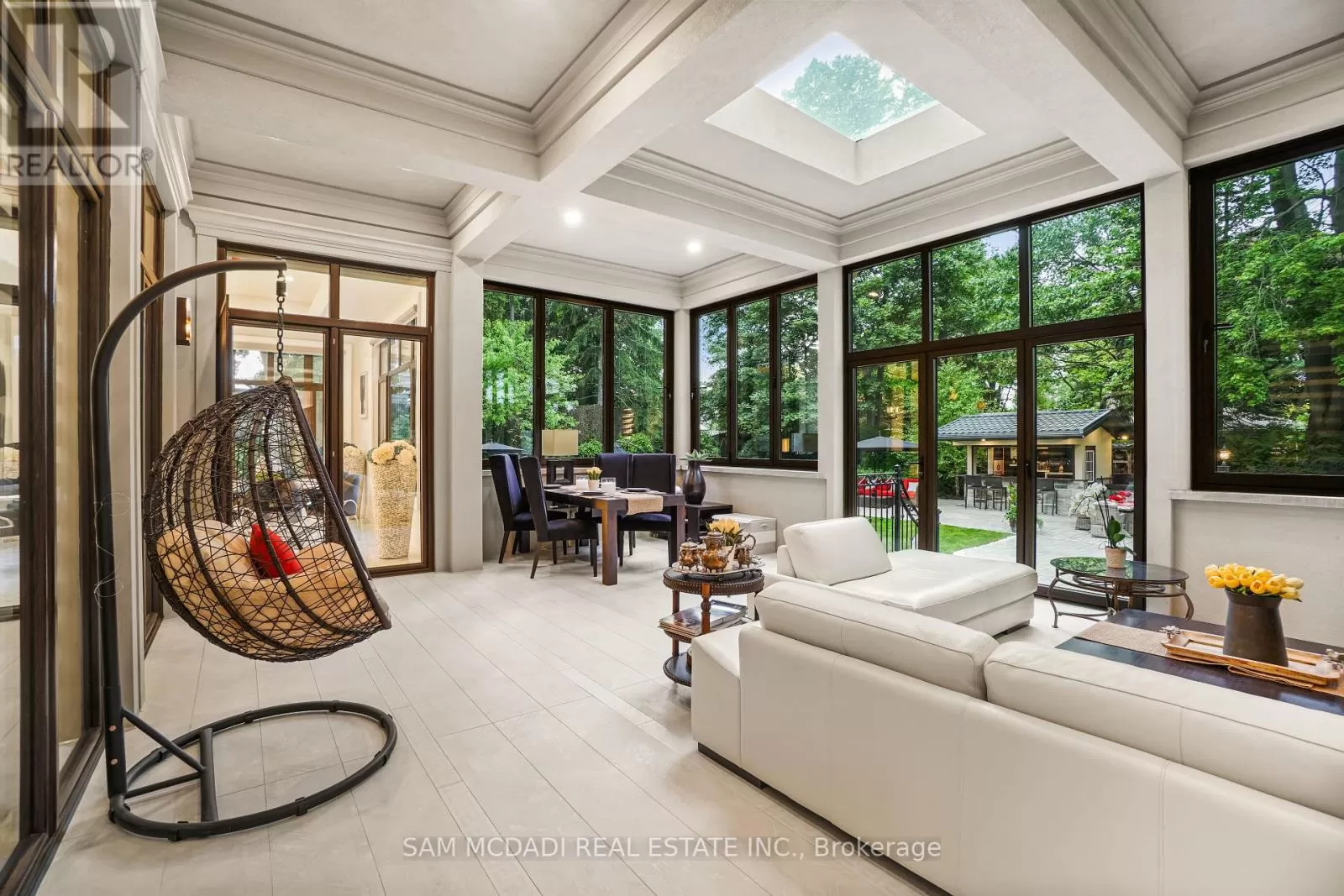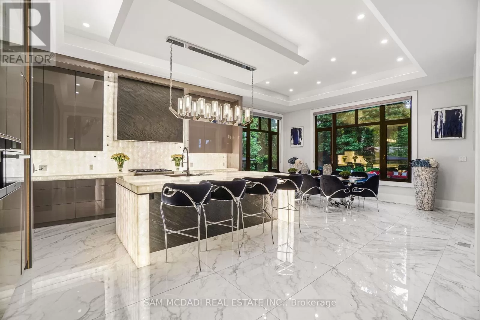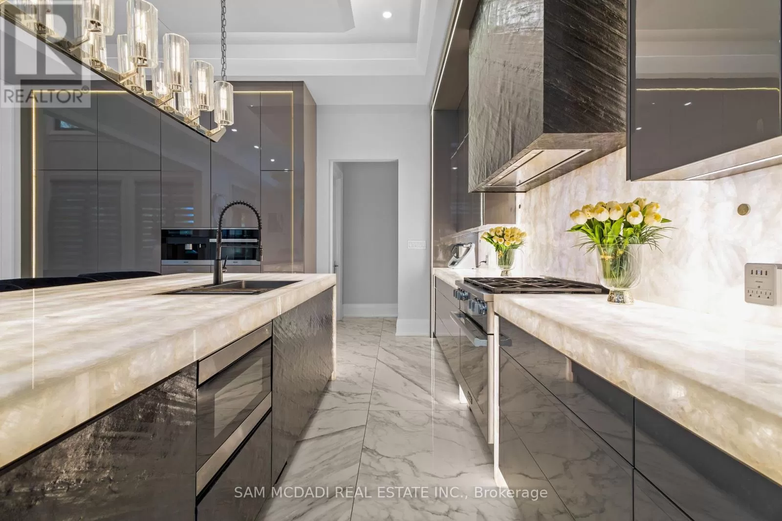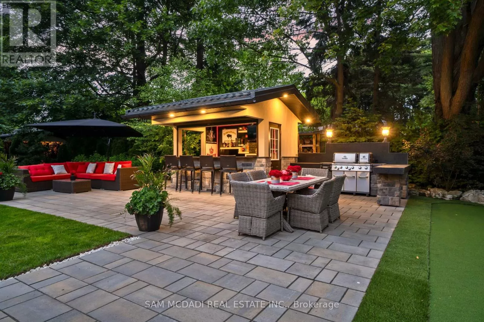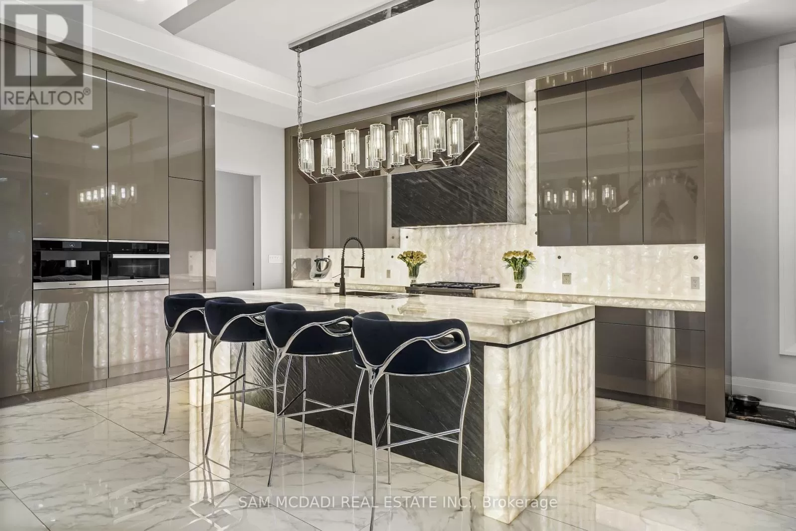 Cross Streets: Meadow Wood Rd/Lakeshore Rd. ** Directions: From Meadow Wood Rd, head towards Orr Rd, then left on Bob O Link, then right on Old Poplar Rd. Property will be on the right. Located in Mississauga's prestigious Rattray Park Estates, 539 Old Poplar Row is a bespoke residence offering 9,000+ sq ft of finished living space on a secluded half-acre lot just steps from Lake Ontario and the trails of Rattray Marsh. Behind solid oak doors, the home unfolds with quiet grandeur beginning with a dramatic foyer dressed in oversized porcelain slabs, hand-laid Versace inlays, and a soaring 20-ft ceiling framed in antique mirror panels and a sculptural chandelier. Thoughtfully curated design elements flow throughout, fluted wall paneling, underlit stone surfaces, and multiple fireplaces that warms the space. The living room stuns with a bookmatched porcelain feature wall, while the formal dining area and four-season sunroom set the tone for elevated, everyday living. The kitchen blends form and function with a glowing stone island, workstation sink, integrated knife block, and custom cabinetry with accent lighting, anchored by a sunlit breakfast room that opens to the backyard oasis. The main floor primary suite is a sanctuary unto itself with dual walk-in closets, and a spa-style five-piece semi-ensuite with direct access to the sunroom for morning coffee or midnight calm. Above, three bedrooms feature walk-in closets and ensuite or semi-ensuite baths, complemented by a private office and full elevator access across all levels. The lower level delivers on lifestyle: a full home gym, theatre, sauna, and showpiece wet bar wrapped in underlit gemstone with a floor-to-ceiling illuminated display. Outside, enjoy a heated saltwater pool, cabana bar with built-in grill, beverage centre, and media wall, framed by mature trees and a heated driveway for year-round ease. A home of this stature surpasses your expectations and redefines them. Enjoy being moments from top-rated schools, lakefront trails, and the vibrant offerings of Port Credit and Clarkson Village, this is where design, location, and lifestyle converge. (id:27476)