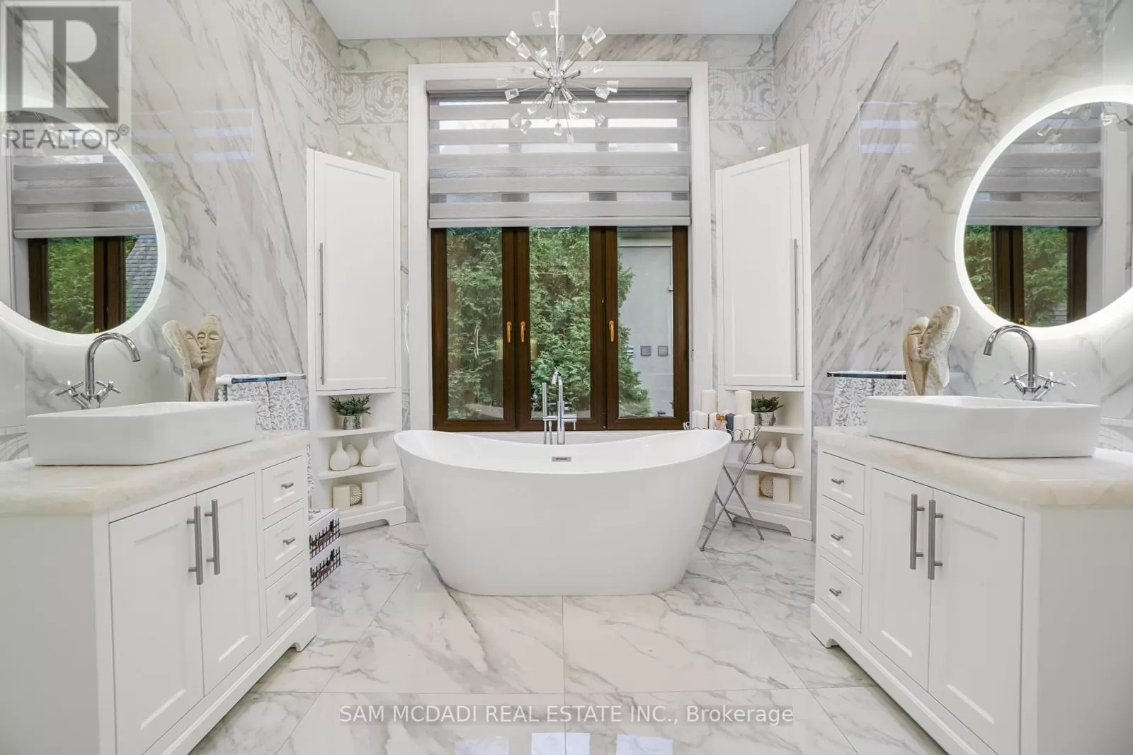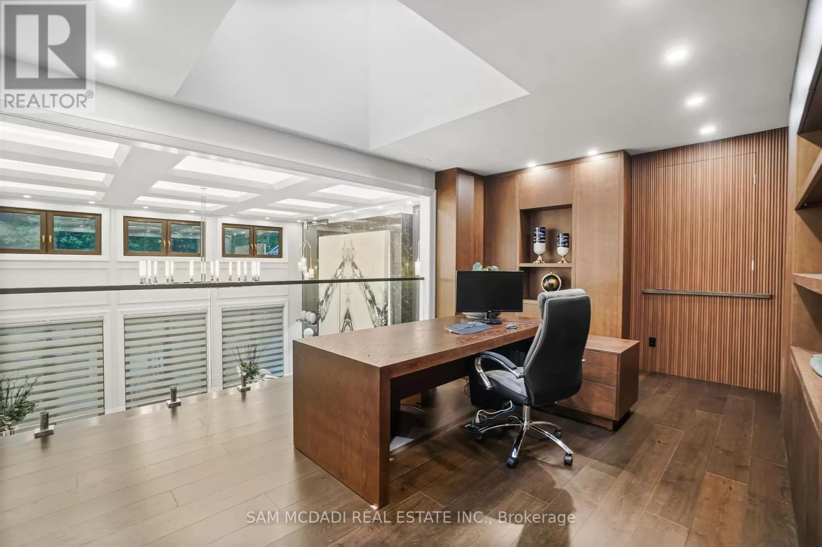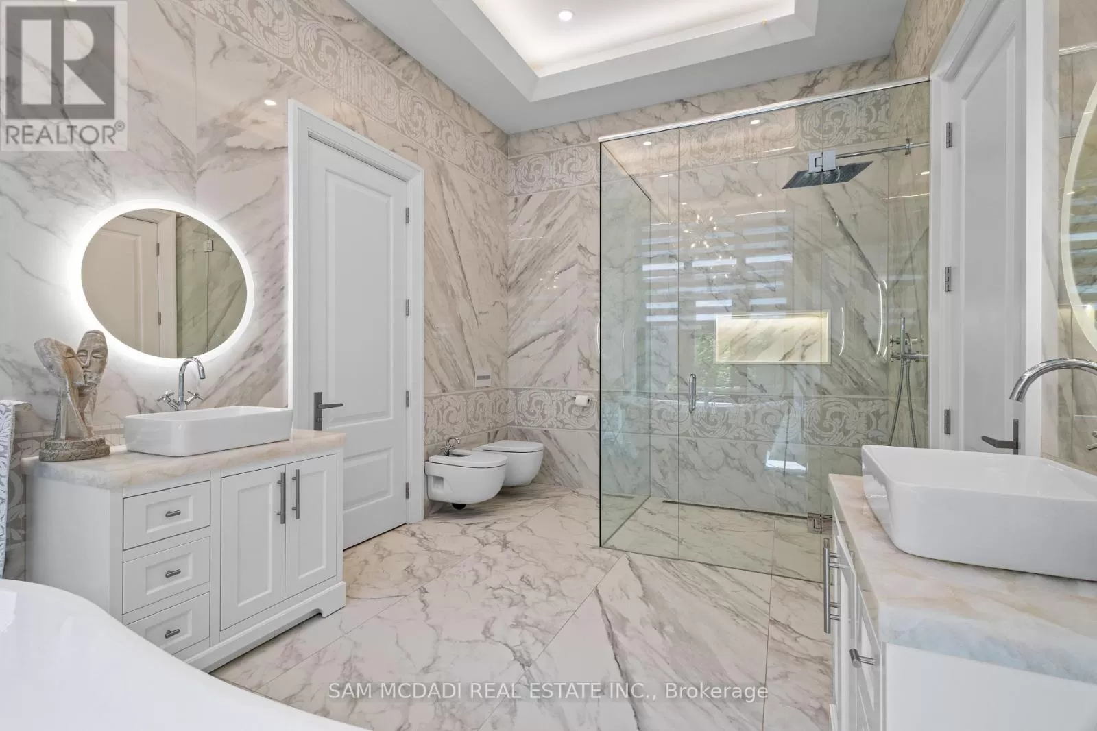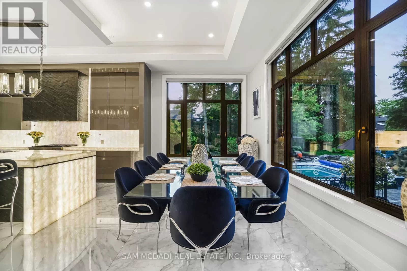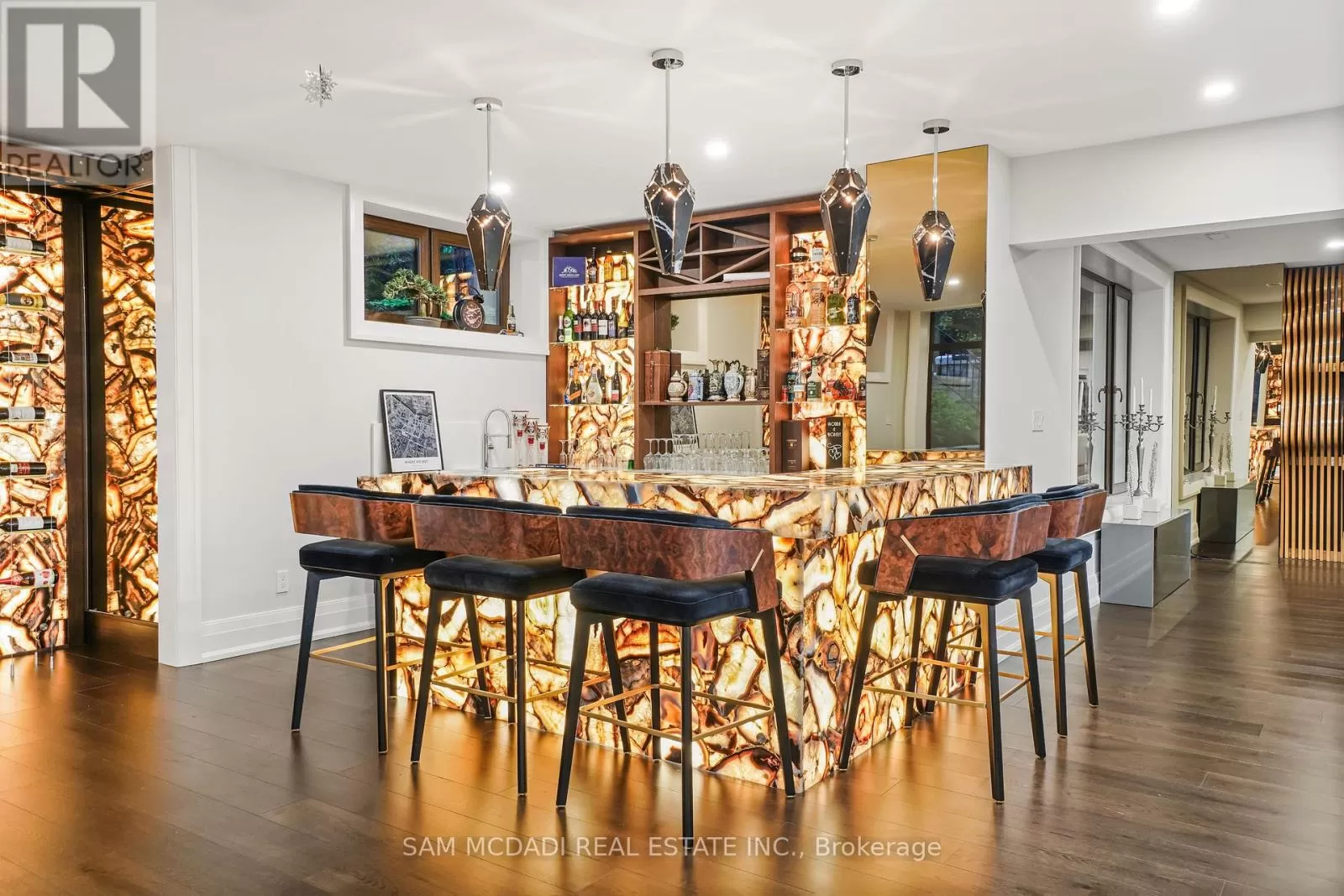 Cross Streets: Meadow Wood Rd/Lakeshore Rd. ** Directions: From Meadow Wood Rd, head towards Orr Rd, then left on Bob O Link, then right on Old Poplar Rd. Property will be on the right. Located in Mississauga's prestigious Rattray Park Estates, 539 Old Poplar Row is a bespoke residence offering 9,000+ sq ft of finished living space on a secluded half-acre lot just steps from Lake Ontario and the trails of Rattray Marsh. Behind solid oak doors, the home unfolds with quiet grandeur beginning with a dramatic foyer dressed in oversized porcelain slabs, hand-laid Versace inlays, and a soaring 20-ft ceiling framed in antique mirror panels and a sculptural chandelier. Thoughtfully curated design elements flow throughout, fluted wall paneling, underlit stone surfaces, and multiple fireplaces that warms the space. The living room stuns with a bookmatched porcelain feature wall, while the formal dining area and four-season sunroom set the tone for elevated, everyday living. The kitchen blends form and function with a glowing stone island, workstation sink, integrated knife block, and custom cabinetry with accent lighting, anchored by a sunlit breakfast room that opens to the backyard oasis. The main floor primary suite is a sanctuary unto itself with dual walk-in closets, and a spa-style five-piece semi-ensuite with direct access to the sunroom for morning coffee or midnight calm. Above, three bedrooms feature walk-in closets and ensuite or semi-ensuite baths, complemented by a private office and full elevator access across all levels. The lower level delivers on lifestyle: a full home gym, theatre, sauna, and showpiece wet bar wrapped in underlit gemstone with a floor-to-ceiling illuminated display. Outside, enjoy a heated saltwater pool, cabana bar with built-in grill, beverage centre, and media wall, framed by mature trees and a heated driveway for year-round ease. A home of this stature surpasses your expectations and redefines them. Enjoy being moments from top-rated schools, lakefront trails, and the vibrant offerings of Port Credit and Clarkson Village, this is where design, location, and lifestyle converge. (id:27476)