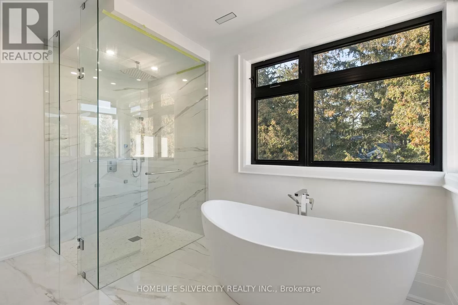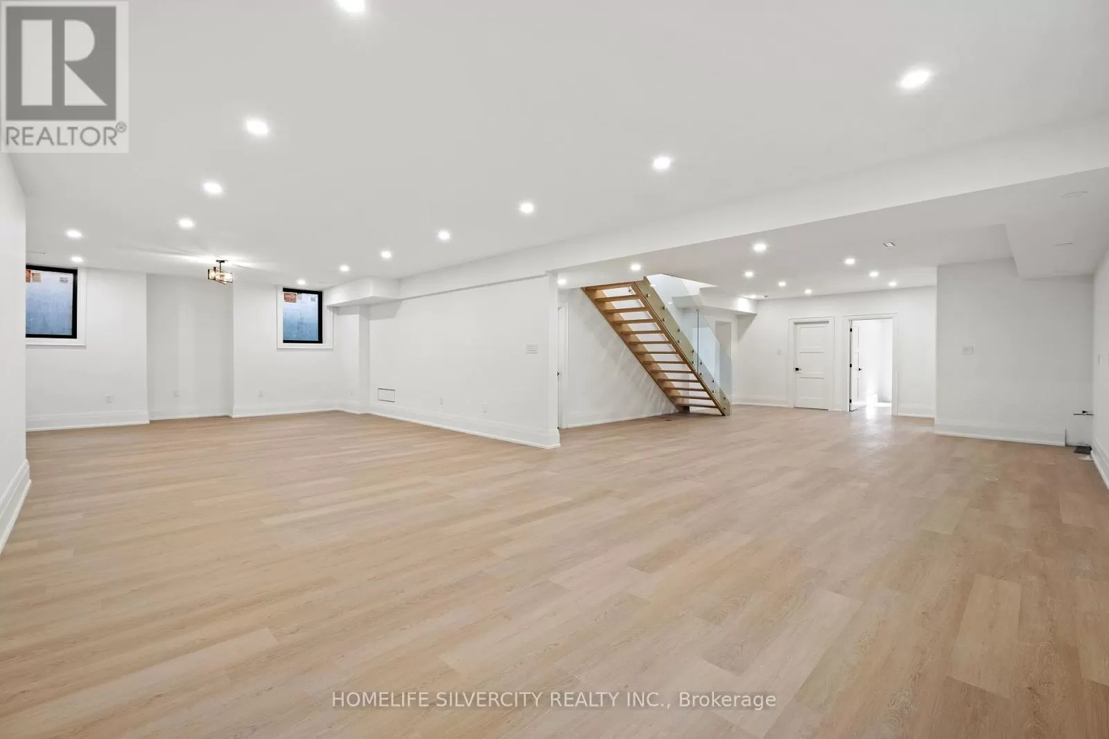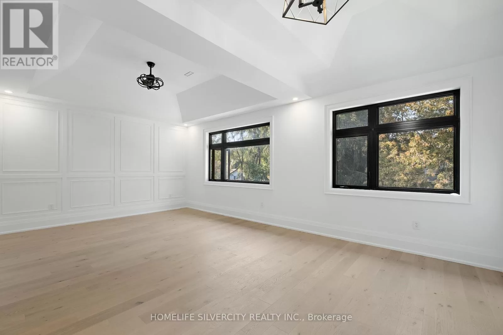 Hurontario QEW Modern custom built executive home nestled in the beautiful Mineola neighbourhood. Beautiful modern finishes with hardwood throughout the home leaving no expenses spared. This gorgeous homes boasts over 5800 sq ft of living space with an open concept design. Two skylights and over sized windows provide an abundance of natural light throughout the home. The bright open concept kitchen is equipped with an oversized island and stainless steel appliances. The custom oversized glass wall opens up both the kitchen and family room to your very own backyard oasis equipped with an in ground pool perfect for entertaining. The upper floor features five bedrooms located with a laundry for ease of use. The lower level provides an additional bedroom with a complete bath and a larger than life open concept rec room equipped with a wet bar. Thanks to the area excavated under the garage an additional room in the lower level awaits your personal touch for your very own home theatre. (id:27476)