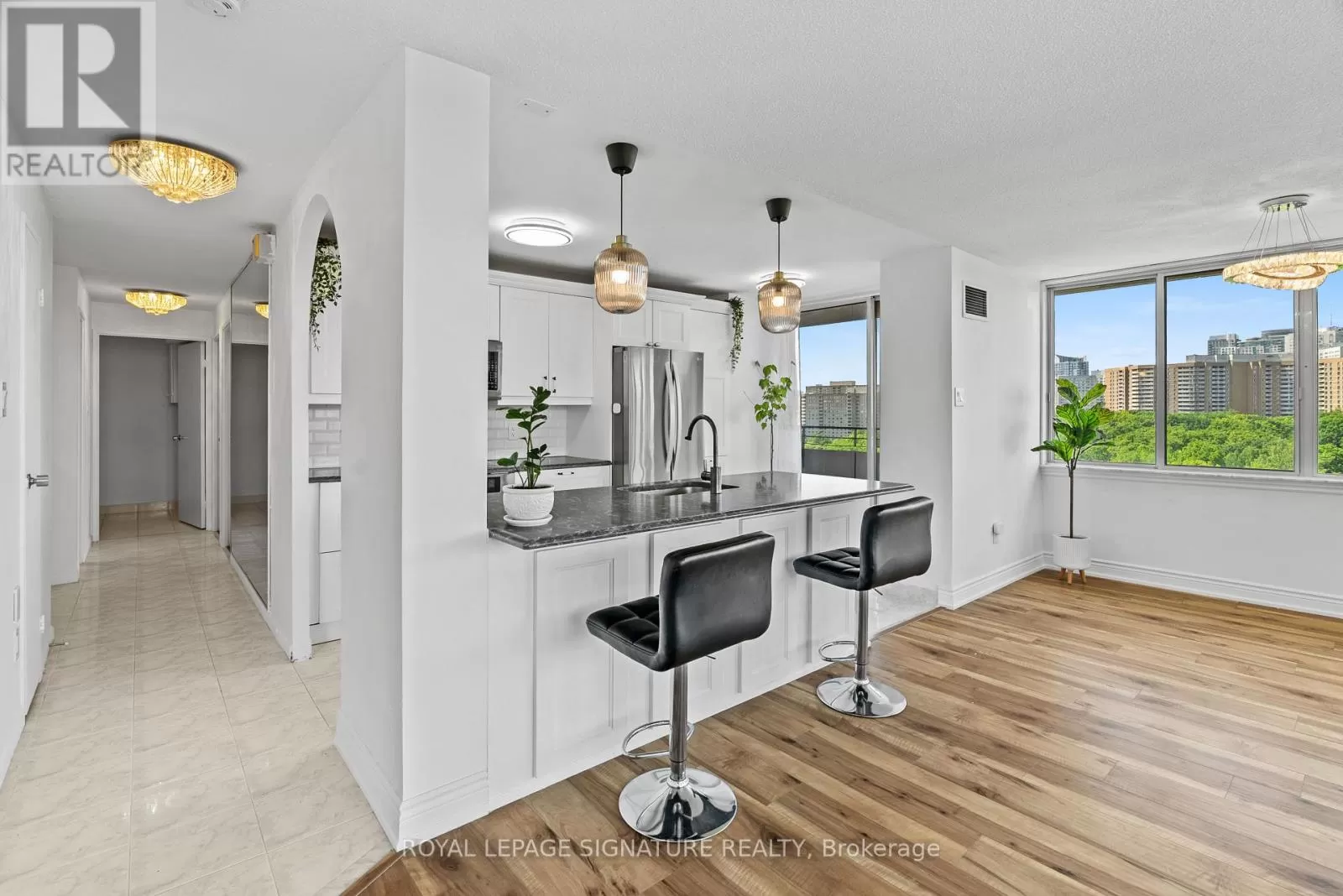 Central Parkway/Burnhamthorpe Spacious Corner Unit in Prime Mississauga Location, Welcome to this beautifully maintained and freshly painted 3-bedroom, 2-bathroom corner unit condo nestled in the heart of Mississauga. Located just minutes from Square One Shopping Centre, major highways, public transit, and recreational facilities, this home offers both comfort and convenience. Situated on the 10thfloor of a quiet, mature building, this bright and airy suite features an open-concept layout with large windows that flood the space with natural light. The newly upgraded kitchen (2022)flows seamlessly into the spacious living and dining areas, which open onto an oversized private balcony with spectacular views. The king-sized primary bedroom is set apart for privacy and includes a walk-in closet and full ensuite bath. Two additional generously sized bedrooms featured nice views to the nature. New laminate flooring throughout, a full-sized in-suite laundry room with ample storage. Enjoy exceptional building amenities such as a sauna, party/games room, hobby room, tennis court, and evening security. Maintenance fees include all utilities: heat, hydro, water, A/C, Rogers cable TV and internet, plus one parking spot and a locker. Don't miss this rare opportunity to own one of the best layouts in a highly sought-after location! (id:27476)