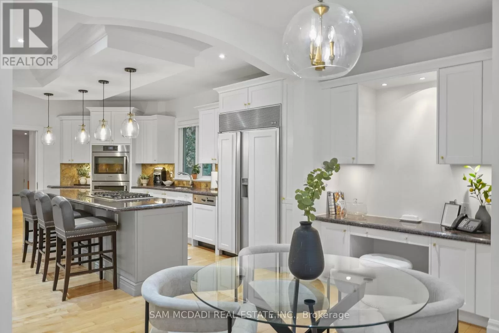 Cross Streets: Indian Rd & Birchview Rd. ** Directions: From Birchview Dr, turn right onto Aldo Dr, destination will be on the right. Immerse yourself in the upscale rhythm of Lorne Park, where this remarkable custom-built estate delivers privacy and comfort. Set on a deep 310-ft lot, 1382 Aldo Drive offers nearly 7,500 square feet of finished living space in one of South Mississauga's most sought-after enclaves. A sun-filled foyer introduces the home's grand proportions, leading to a dramatic family room with soaring ceilings, custom built-ins, and floor-to-ceiling windows that flood the space with natural light. The formal dining area sits just beyond, offering an elegant setting for hosting. At the heart of the home, the chef-inspired kitchen pairs granite counters with stainless steel appliances, an oversized island, and a breakfast area that invites connection and ease. The main-floor suite provides spa-like comfort and boutique-style storage. Above, five more bedrooms await, each with a private ensuite or semi-ensuite and custom closets. The Owner's suite is a true retreat with a private balcony, walk-in closet, and a luxurious five-piece bath designed for rest and relaxation. The finished walkout lower level brings incredible versatility. A wine cellar, sauna, home gym, office, and large recreation area with a fireplace create the perfect backdrop for entertaining or quiet evenings in. Step outside to curated landscaping, a spacious patio shaded by mature trees, and a resort-style inground pool that makes every summer day feel like a getaway. Topped with a durable Marley roof, the home pairs timeless design with long-term peace of mind. Located just minutes from Whiteoaks Park, top-rated schools, lakefront trails, and the shops and restaurants of Port Credit and Clarkson Village. Commuters will appreciate quick access to major highways and downtown Toronto. This is a home that delivers presence, privacy, and purpose in every square foot. (id:27476)
