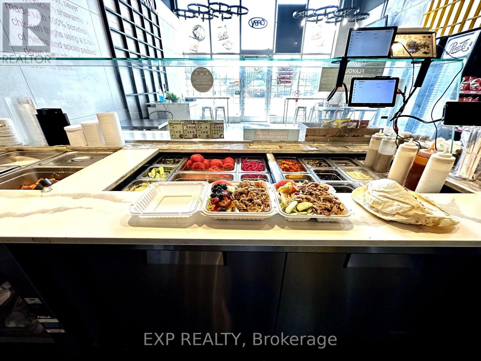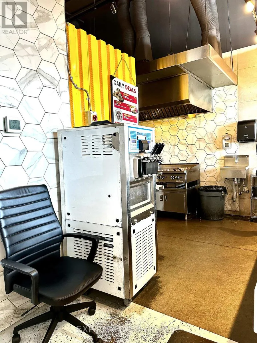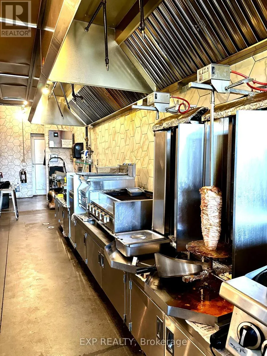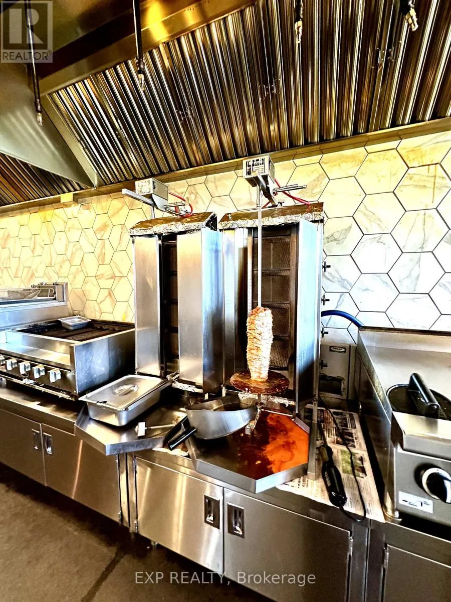 Hurontario St / World Drive Fantastic Pita Land Franchise For Sale in Prime Mississauga Location! Turnkey opportunity to own a fully equipped Pita Land restaurant located at 70 World Dr, just off 401 & Hurontario St in the heart of Mississauga's thriving commercial and industrial corridor. This strategically positioned plaza location offers exceptional exposure, surrounded by high-density office condos, busy industrial hubs, and a strong residential population. Ideal for lunch rush and dinner traffic, this unit is also perfectly situated for meal prep and delivery services like tiffin or catering especially with Amazon's massive fulfillment center nearby. The current setup features a state-of-the-art commercial kitchen with 24 feet of double hood ventilation, ideal for high-volume cooking operations. All equipment and leasehold improvements are in pristine condition. The existing Pita Land franchise is performing well with solid monthly sales and potential for rapid growth under active ownership. Rent is affordable at approx. $6,400/month (TMI included). Long lease available. This is an excellent opportunity for owner-operators or food entrepreneurs looking for a central Mississauga location with built-in clientele and room to scale. (id:27476)