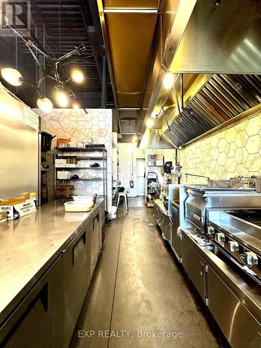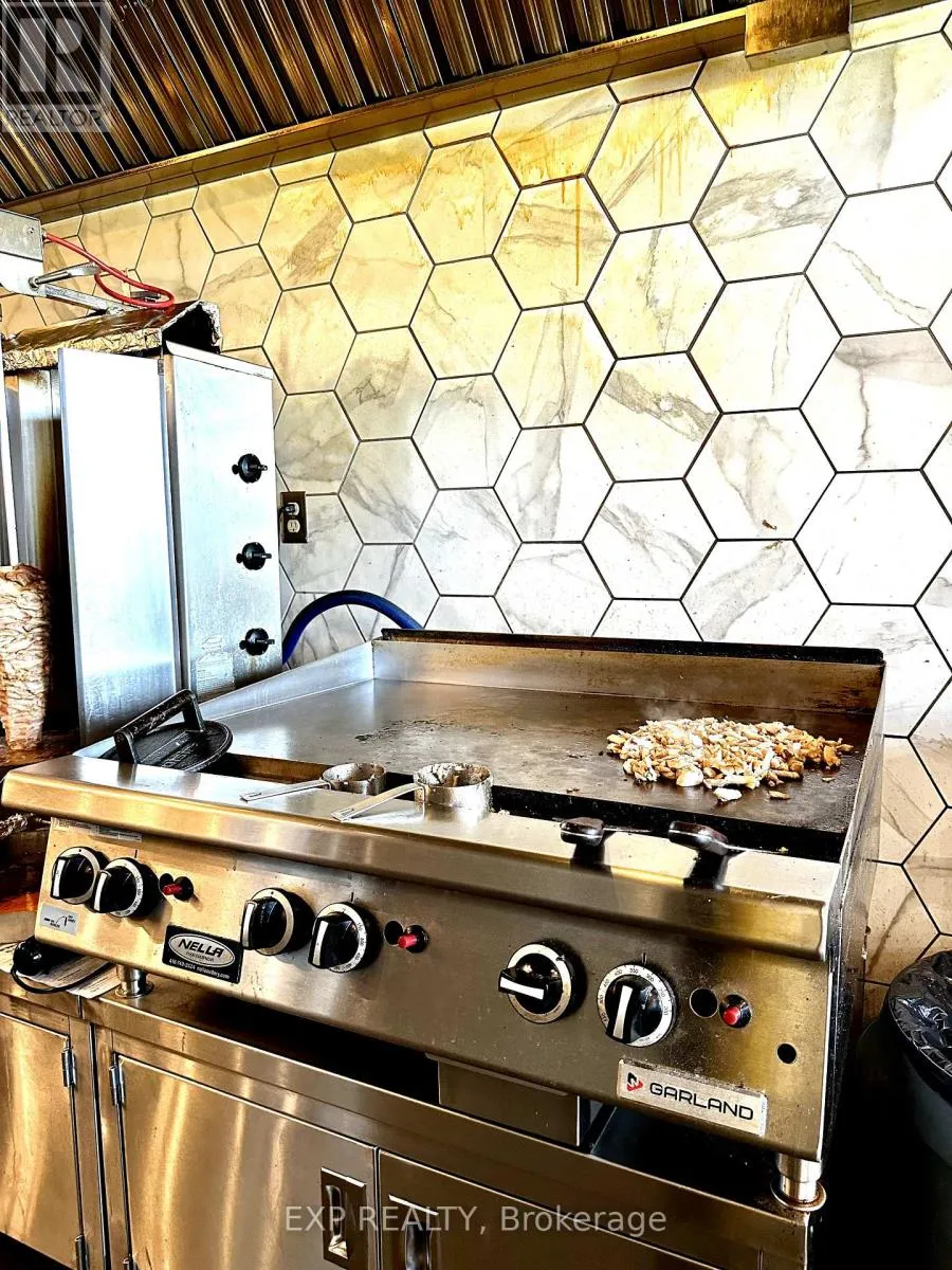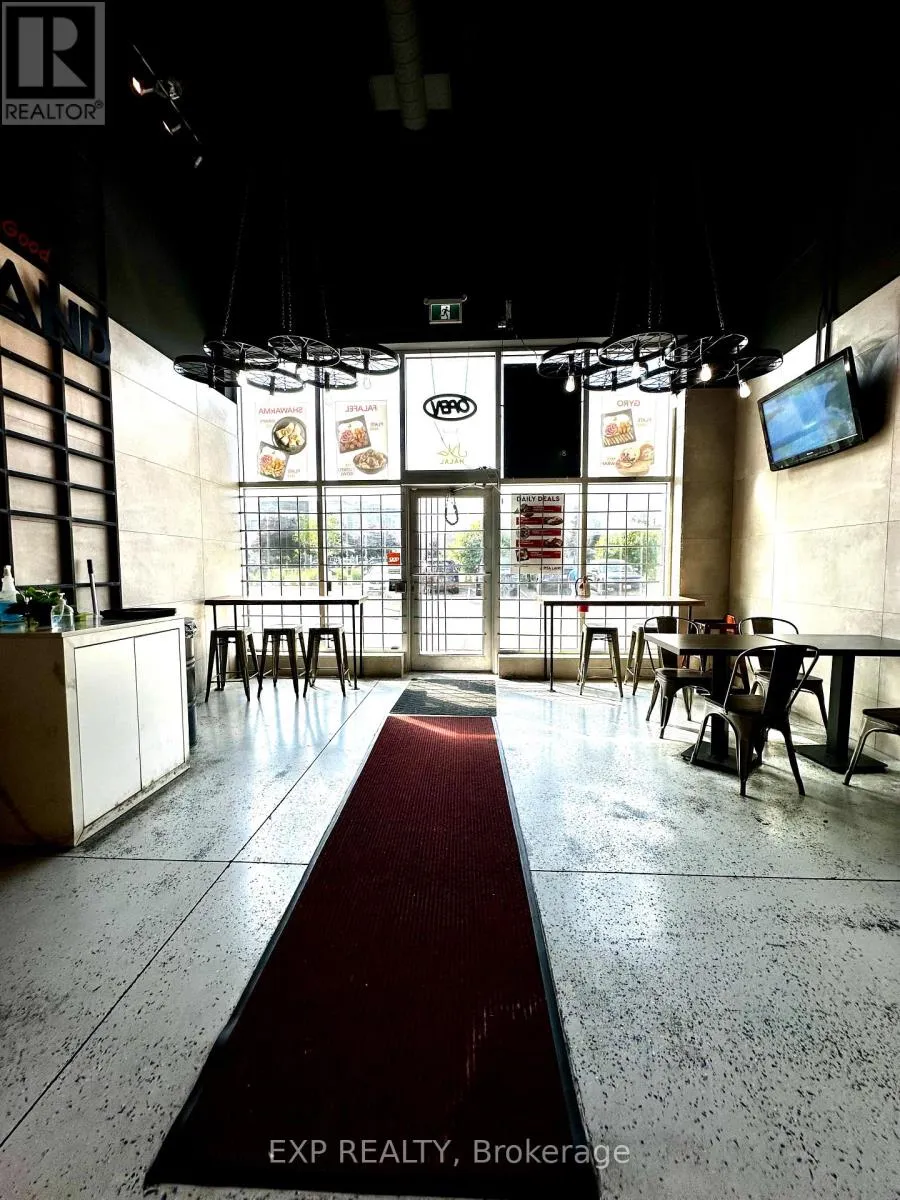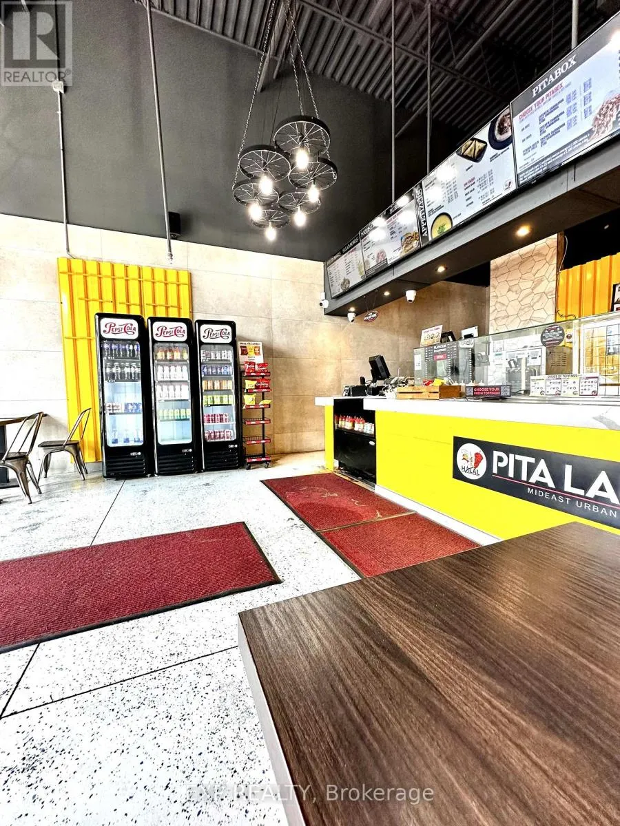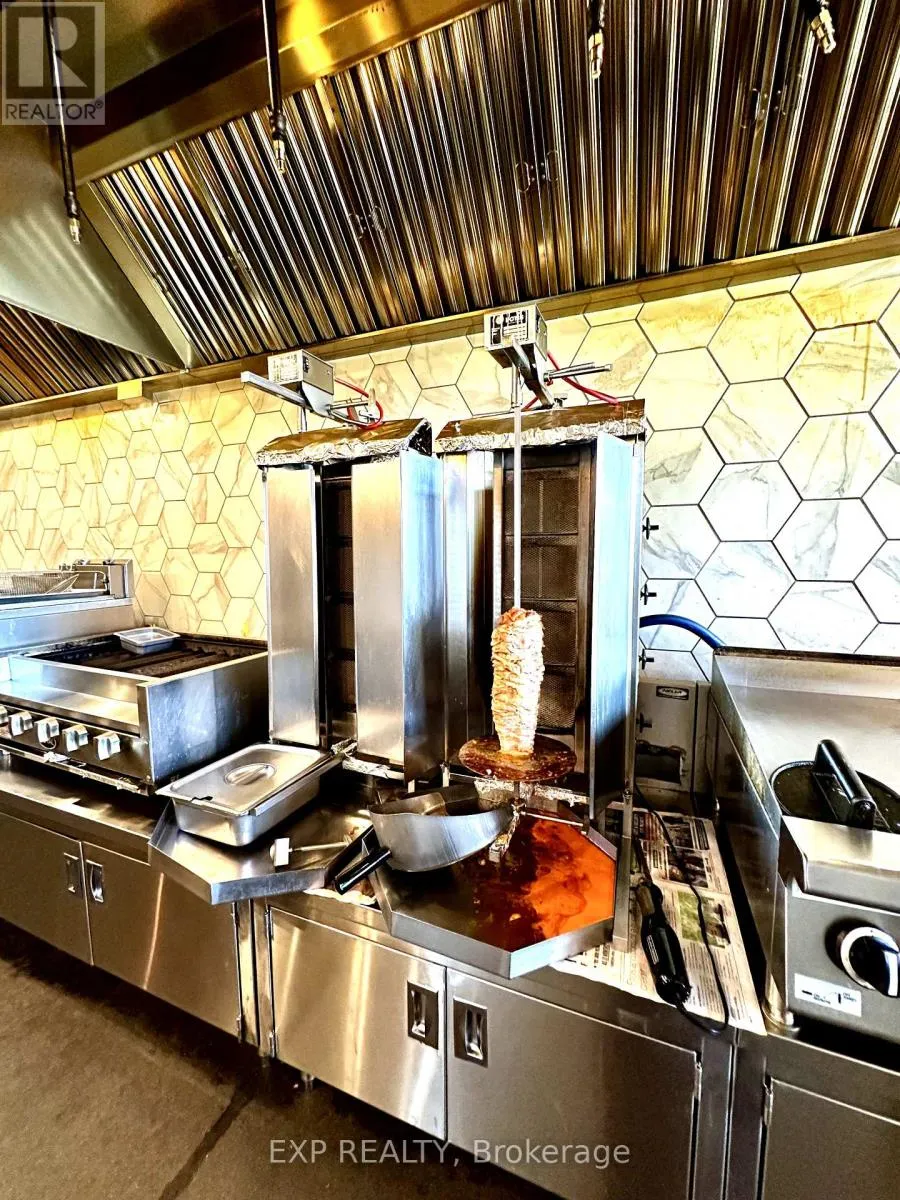 Hurontario St / World Drive Fantastic Pita Land Franchise For Sale in Prime Mississauga Location! Turnkey opportunity to own a fully equipped Pita Land restaurant located at 70 World Dr, just off 401 & Hurontario St in the heart of Mississauga's thriving commercial and industrial corridor. This strategically positioned plaza location offers exceptional exposure, surrounded by high-density office condos, busy industrial hubs, and a strong residential population. Ideal for lunch rush and dinner traffic, this unit is also perfectly situated for meal prep and delivery services like tiffin or catering especially with Amazon's massive fulfillment center nearby. The current setup features a state-of-the-art commercial kitchen with 24 feet of double hood ventilation, ideal for high-volume cooking operations. All equipment and leasehold improvements are in pristine condition. The existing Pita Land franchise is performing well with solid monthly sales and potential for rapid growth under active ownership. Rent is affordable at approx. $6,400/month (TMI included). Long lease available. This is an excellent opportunity for owner-operators or food entrepreneurs looking for a central Mississauga location with built-in clientele and room to scale. (id:27476)