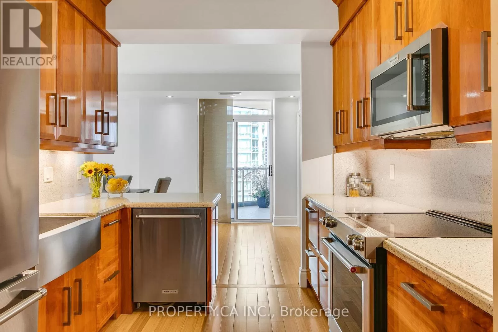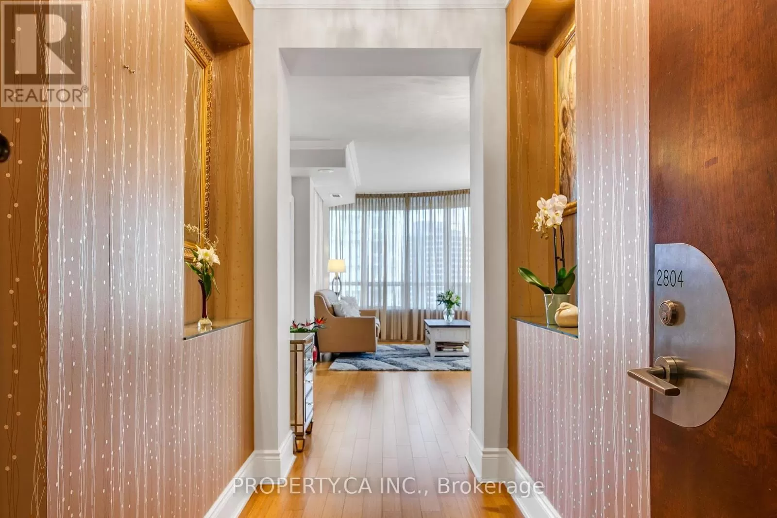 Hurontario & Burnhamthorpe Welcome to Suite 2804 at Ovation by Tridel. Experience luxury living at one of Mississauga City Centres most iconic addresses. This expansive corner suite offers over 1,850 sq. ft. of elegant living space, featuring 3 spacious bedrooms, 3 bathrooms, and 2 premium VIP parking spots located on the main level of the parking garage. Designed for both comfort and style, the suite boasts breathtaking panoramic views of the city skyline and Lake Ontario. The open-concept layout is enhanced by floor-to-ceiling windows that flood the space with natural light, all equipped with custom window coverings for privacy and light control. A custom cherrywood kitchen, bamboo wood flooring, and refined crown moulding throughout add timeless sophistication. The oversized primary bedroom features a luxurious 5-piece ensuite for your private retreat. Residents of Ovation enjoy over 30,000 sq. ft. of premium amenities, including a 24-hour concierge, indoor pool and sauna, fully equipped fitness centre, party room, bowling alley, movie theatre, billiards and games rooms, guest suites, car wash, rooftop terrace with BBQs, and beautifully landscaped gardens. Maintenance fees include all utilities. Ideally located just steps from Square One Shopping Centre, the YMCA, Living Arts Centre, Mississauga Central Library, and public transit. (id:27476)