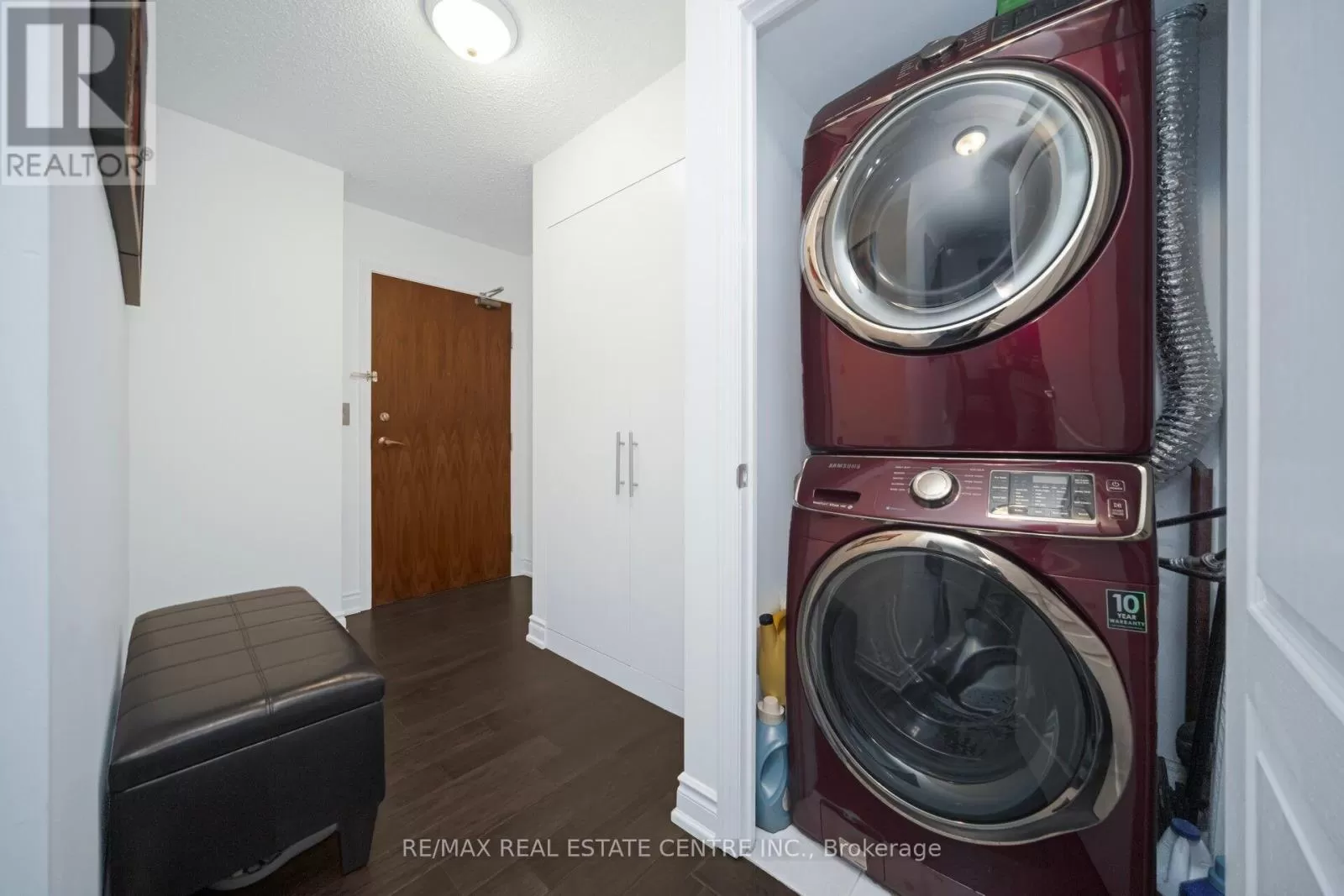 Hurontario St/Burnhamthorpe Rd This Stunning, Fully Renovated 2-bedroom, 2-bathroom 885 Sqft Corner Unit With ***2 Parkings*** Is Located In The Heart Of Mississauga's Highly Sought-after City Centre, Just Steps From Square One, The Future LRT, Go Station, And Major Highways Including The 403 And QEW. Offering A Spacious And Well-designed Two Bedroom Layout, This Bright And Airy Condo Features 9-foot Ceilings, Hardwood Flooring Throughout, And Floor-to-ceiling Windows That Flood The Space With Natural Light. The Open-concept Living And Dining Area Flows Seamlessly Into A Custom Kitchen With Extended Cabinetry, Premium Finishes, And A Cozy Breakfast Area. Both Bedrooms Include Custom-built Cabinets, With The Primary Bedroom Offering A Private Ensuite Bath And The Second Bedroom Conveniently Located Next To The Second Full Bathroom. Freshly Painted And Move-in Ready, This Unit Also Includes Ensuite Laundry, A Large Balcony With Panoramic Views. Additional Features Include Two Rare Side-by-side Parking Spaces And A Locker. Residents Enjoy Access To A Wide Range Of Luxury Amenities Including A Yoga Studio, Gym, Indoor Swimming Pool, Jacuzzi, Sauna, Billiards And Table Tennis Rooms, A Party/dining Room, And 24-hour Security. Nestled In A Family-friendly Neighborhood With Schools And Daycare Within Walking Distance, This Spotless And Beautifully Maintained Condo In A Well-managed Daniels Building Is Ideal For First-time Buyers, Downsizers, Or Investors. A True Gem In One Of Mississauga's Most Convenient And Vibrant Communities. Don't Miss Out! (id:27476)