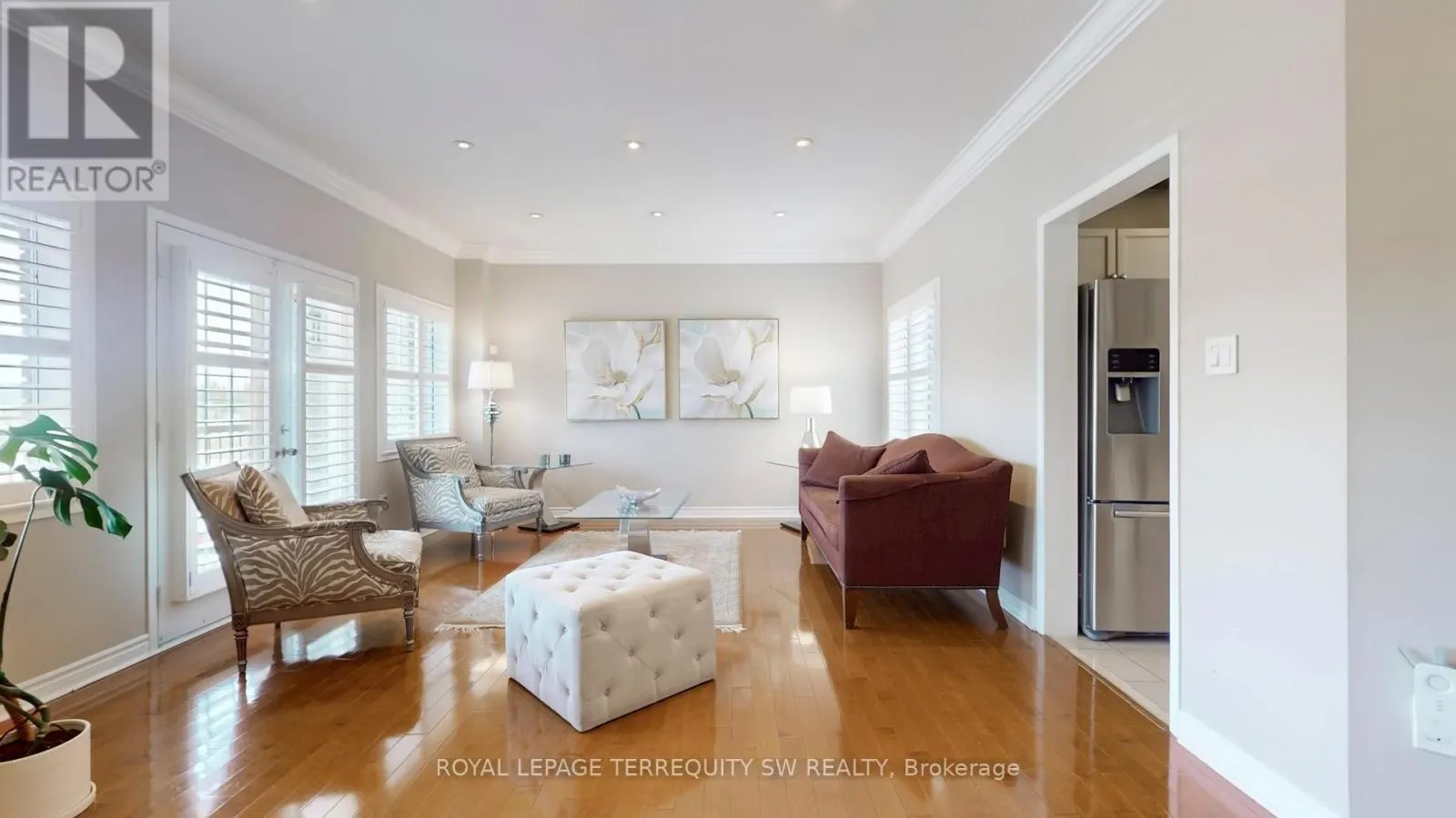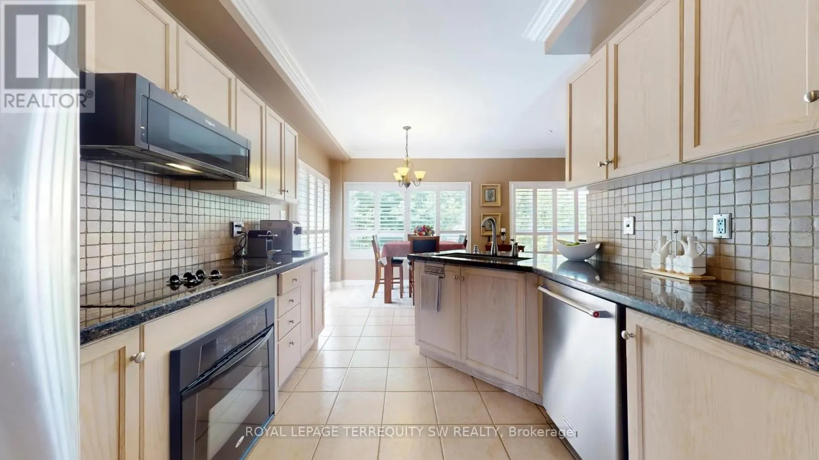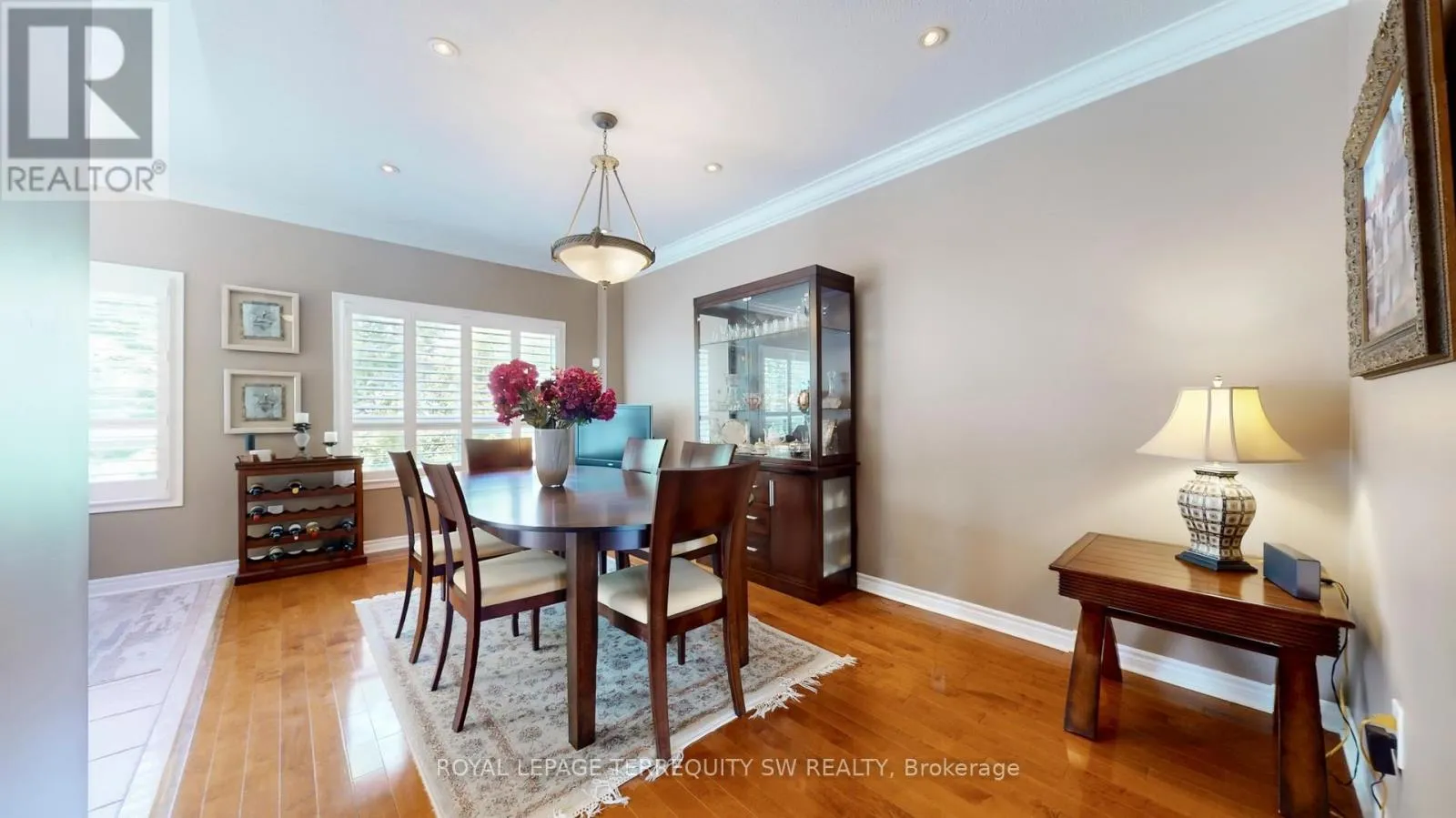 Churchill Meadows/Eglinton This beautifully maintained 2-storey detached brick home blends style, comfort, and function in one of Mississaugas most sought-after communities. With striking curb appeal, manicured landscaping, and a prime location steps to Churchill Meadows Community Centre and Mattamy Sports Complex, it truly has it all. The inviting foyer opens to a sun-filled, south-facing living room with hardwood floors and walk-out to a private covered deck perfect for morning coffee or evening wine. A separate dining room with crown moulding and hardwood sets the stage for elegant entertaining. The chefs kitchen features premium stainless steel appliances (Samsung double-door fridge, Gallery Series flattop cooktop, Whirlpool wall oven & microwave, B/I dishwasher), granite counters, ample cabinetry, and oversized undermount sink. A second walk-out with gas BBQ line makes summer gatherings a breeze. California shutters grace every window for a polished look. Upstairs, three spacious bedrooms offer hardwood floors and shutters. The primary suite boasts a walk-in closet and spa-like 4-pc ensuite with granite vanity, soaker tub, and separate shower. The main 4-pc bath has semi-ensuite access to the second bedroom. The professionally finished lower level includes a recreation room with hardwood, pot lights, built-ins, and a cozy gas fireplace, plus a walk-out to a landscaped patio, storage, cold room, and separate laundry with front-load appliances. Close to parks, greenspace, top golf courses (Pipers Heath, Royal Ontario, Wyldewood), schools, and major highways. Offering 2,296 sq ft above grade (MPAC) plus finished lower level, this move-in ready home comes with a pre-listing inspection buy with confidence! (id:27476)