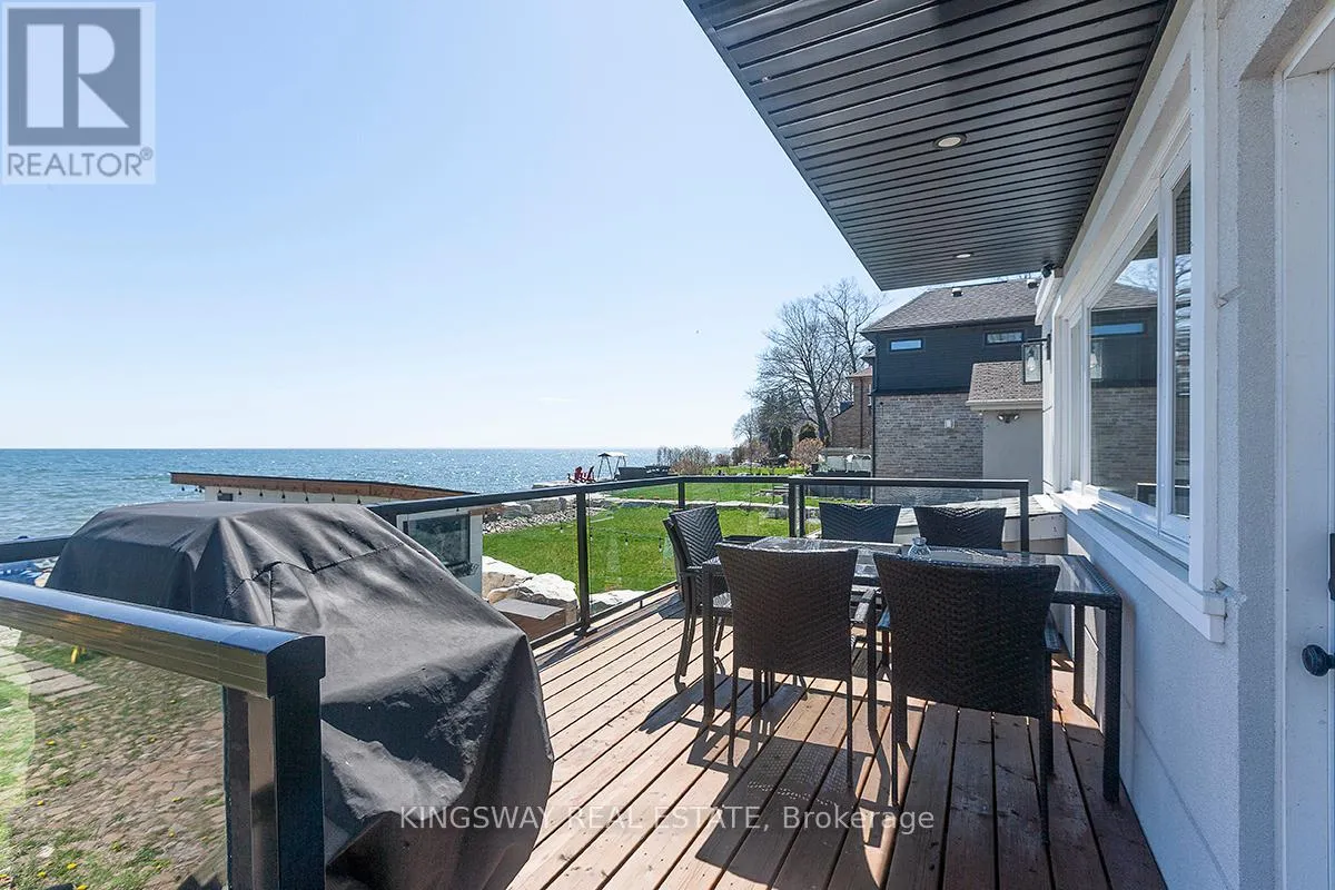 Cross Streets: Cawthra & Lakeshore. ** Directions: South of Lakeshore and Beechwood. Exquisite Waterfront Property in Port Credit! Discover the ultimate in lakeside living with this rare waterfront gem, a stunning 2-story, 3-bedroom home that sits directly on Lake Ontario in one of the most sought-after areas. This meticulously modernized residence boasts professional finishes and high-end features throughout, with a view that is second to none. A chefs dream kitchen equipped with stainless steel appliances and a huge island, looking out over the lake, with a huge bay window. Retreat to a serene master suite with a private balcony overlooking the water, and expansive lake views. Enjoy the open layout with a walk-out basement providing easy access to a beautifully landscaped yard with artificial grass, perfect for a low maintenance space for relaxing lakeside. A windows up tiki bar offers a space for outdoor entertaining, with additional storage for outdoor equipment, and lakeside gear. Spacious 1.5 garage/work place. Large insulated attic for storage. Situated on the Waterfront trail, and surrounded by parks, get ready for non-stop cottage style living right in the city. 15 min walk to the Port Credit strip, 5 min drive to the Port Credit Go Station or Long Branch, Sherway Gardens, walk to Port Credit Yacht Club, 20 min drive to downtown Toronto. A newly constructed sea wall (2022) ensures both beauty and protection for your waterfront property. Brand new HVAC, furnace, electrical, s/s appliances, stove, rangehood, dishwasher, water heater, washer, and dryer. This rare waterfront gem is ready for you to move in and enjoy. Don't miss the opportunity to own a piece of paradise in one of Port Credit's most coveted locations. (id:27476)
