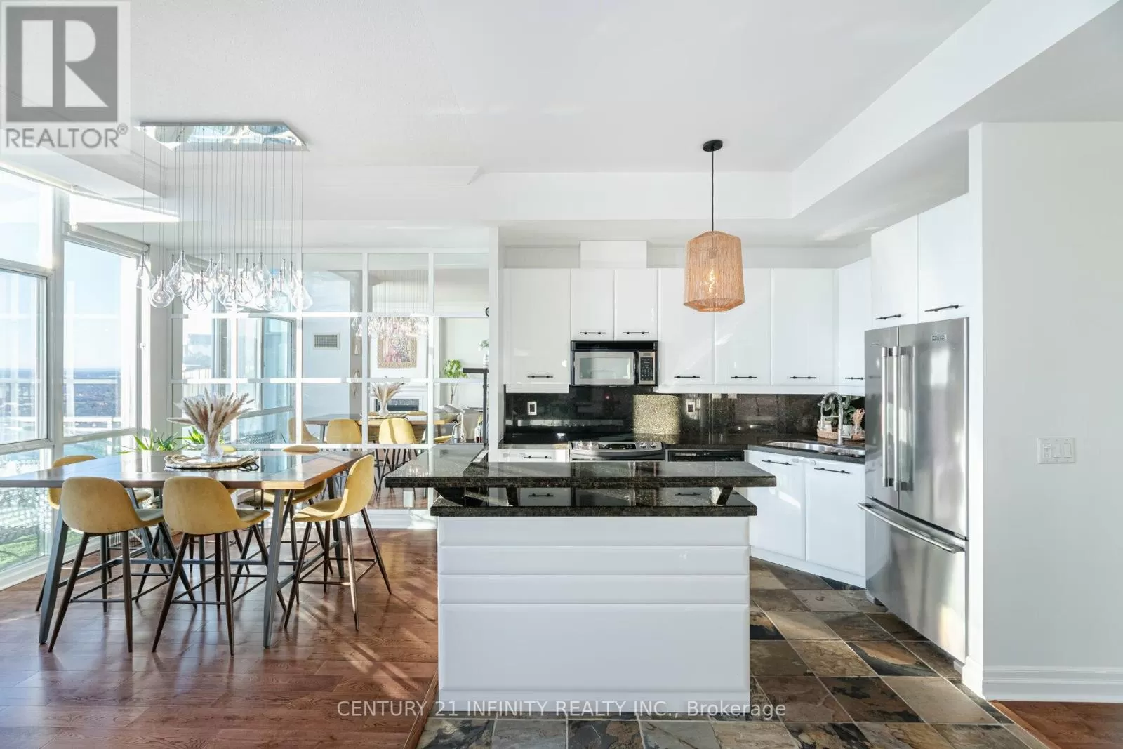 Cross Streets: BURNHAMTHORPE & DUKE OF YORK. ** Directions: Intersection of Duke Of York and Burnhamthorpe, South East Corner Building. Rare 2-Storey Penthouse Condo With All Utilities Included. Luxurious Living Experience & Complete Privacy With Truly Breathtaking Unobstructed Views To The North And West, Perfect For Watching Unforgettable Sunsets Over Downtown Mississauga And Celebration Square ** Over 1800sqft Interior Space ** Largest Condo In Building ** Maintenance Fee Includes All Utilities ** Open-Concept Layout. 10-Foot Ceilings On Main Floor, Hardwood Floors Throughout And Floor-To-Ceiling Windows That Fill The Space With Natural Light And Showcase The Gorgeous Views. The Condo Is Beautifully Renovated With Modern Finishes Throughout. Spacious Living Room With Gas Fireplace That Enhances The Ambiance. Mirrored Wall In The Dining Room And Beautiful Chandelier Add A Touch Of Elegance To The Space. The Kitchen Features Granite Countertops, Central Island And Stainless Steel Appliances. Step Out Onto The Open Balcony Directly From The Living Room to BBQ With Available Gas Hookup, Enjoy Outdoor Relaxation And Gorgeous Views. Storage Under The Stairs Provides Additional Space. The Main Floor Also Includes A Powder Room For Guests And A Den With Multiple Potential Uses. 2nd Floor Has Large Primary Suite With 3pc Elegant Ensuite And His-Hers Closets. 2nd Large Bedroom And Modern Main Bath With Sleek Finishes. 2 Versatile Dens For Various Separate Uses ** Or Combine Both Dens, Add A Door & Create A Third Room That Has A Large Closet, As Illustrated In Picture** Convenient Laundry Room. Top-Tier Amenities, Swimming Pool, Bbq, Terrace, Mini Golf, Playground And Gym. Ideally Located Across From Celebration Square And Near Library, Shopping, Transit, Go Station, College, School Routes & Highways. Enjoy Privacy And Comfort In A Central Location That Offers Panoramic Views And An Elevated Lifestyle. Don't Miss The Opportunity To Own This One-Of-A-Kind Penthouse! **EXTRAS** Maintenance Fee Includes All Utilities!! Hydro, Heat, Water, Parking & Locker. (id:27476)