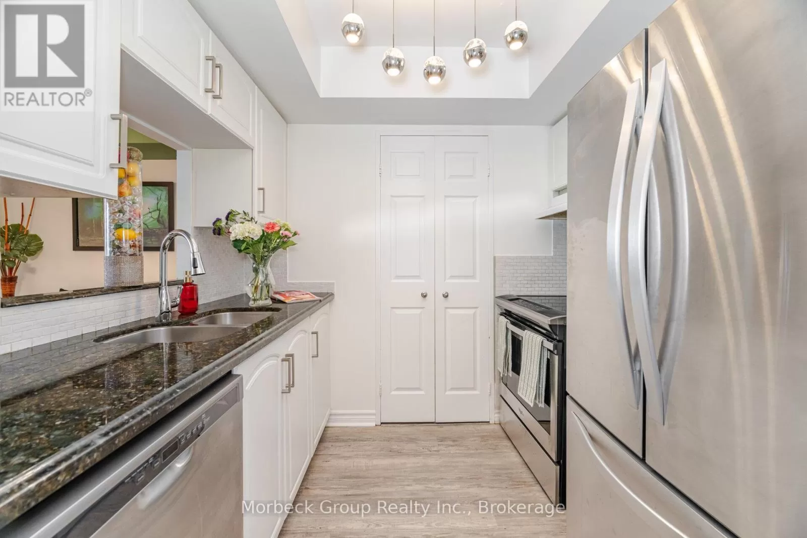 Hwy 10 / Burnhamthorpe Rd. W Gorgeous 2-Bedroom Plus Den Condo In Enfield Place, Two Full Bathrooms, Upgraded Kitchen With Granite Surfaces, Pantry Storage, Premium Appliances & In-Suite Laundry. Primary Suite Boasts A Walk-In Closet And Ensuite Bath, Complemented By A Well-Proportioned Second Bedroom. Enhanced With Fresh Paint And Laminate Flooring, Walking Distance To Square One Shopping Centre, Short Drive To 403 Hwy, And Just 15 Minutes To Pearson International Airport. Enjoy Serene Views Of The Garden And Tennis Courts While Benefiting From Unparalleled Access To Transit, Highways, All Urban Conveniences. (id:27476)