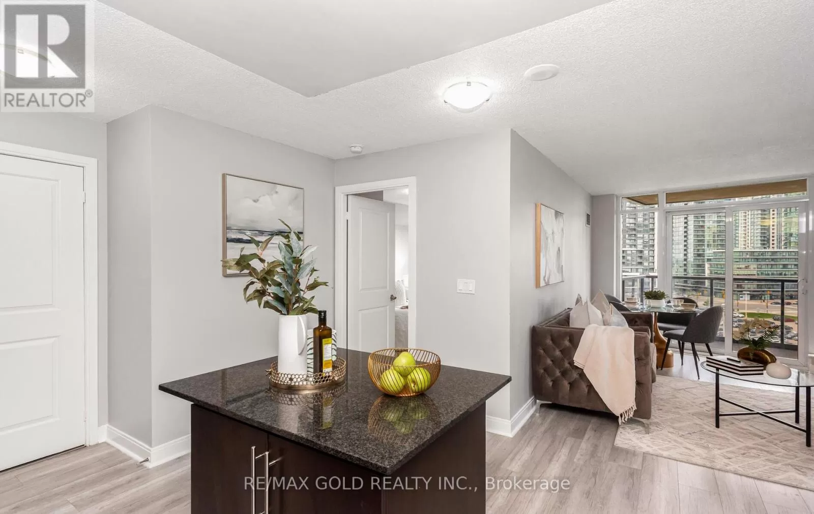 Cross Streets: Burnhamthorpe Rd.W/ Hurontario. ** Directions: Burnhamthorpe Rd. W/ Hurontario. Absolutely Stunning 2 Bedroom + Den in Tridel's Ultra Ovation! This spacious 992 sq. ft. suite offers a bright and functional layout with 9 ft. ceilings, floor-to-ceiling windows, and an open-concept living and dining area. The upgraded maple espresso kitchen features granite countertops, a center island, and a pantry perfect for everyday living and entertaining. Highlights include:2 bedrooms + large sun-filled den (separate room, can be used as 3rd bedroom)2 full bathrooms, including a 4-piece ensuite in the primary bedroom with double closets **Brand New Laminate flooring throughout** New Paint Job** Spacious balcony with unobstructed views overlooking Celebration Square .Enjoy world-class amenities in this luxurious Tridel-built residence: fitness center, indoor pool, party room, guest suites, and 24-hour concierge. Prime Location Just steps to Square One, Celebration Square, Living Arts Centre, Sheridan College, YMCA, Central Library, City Hall, restaurants, and public transit, with easy access to Hwy 403/401. (id:27476)