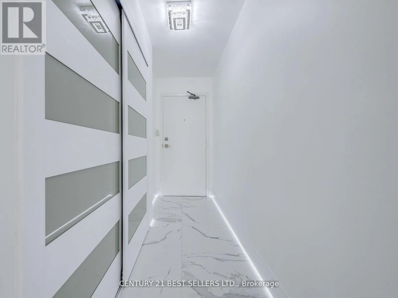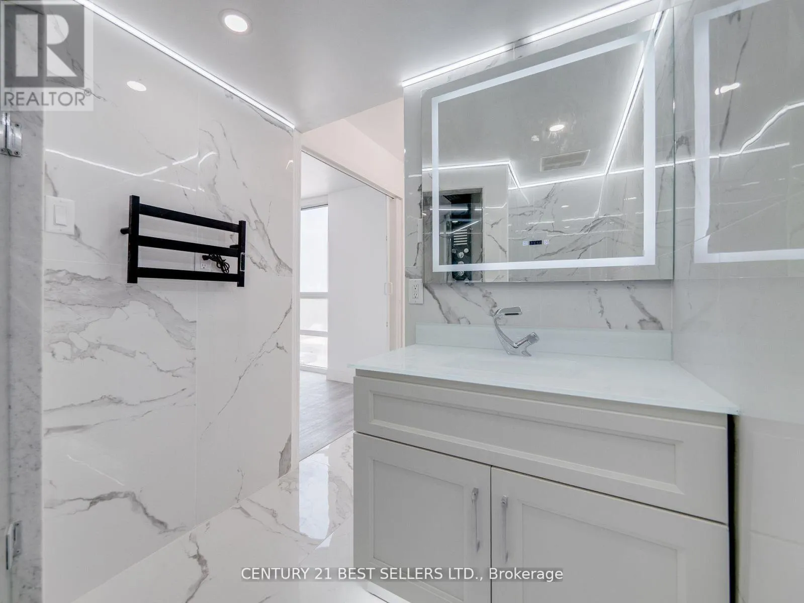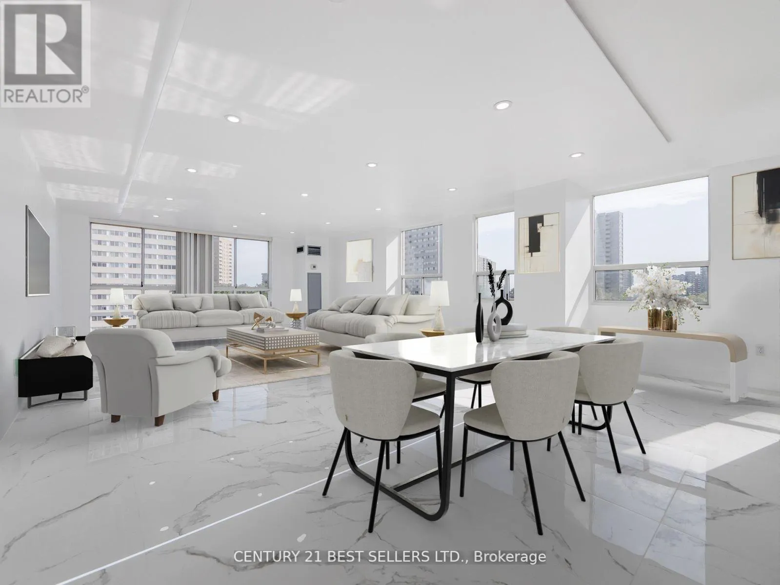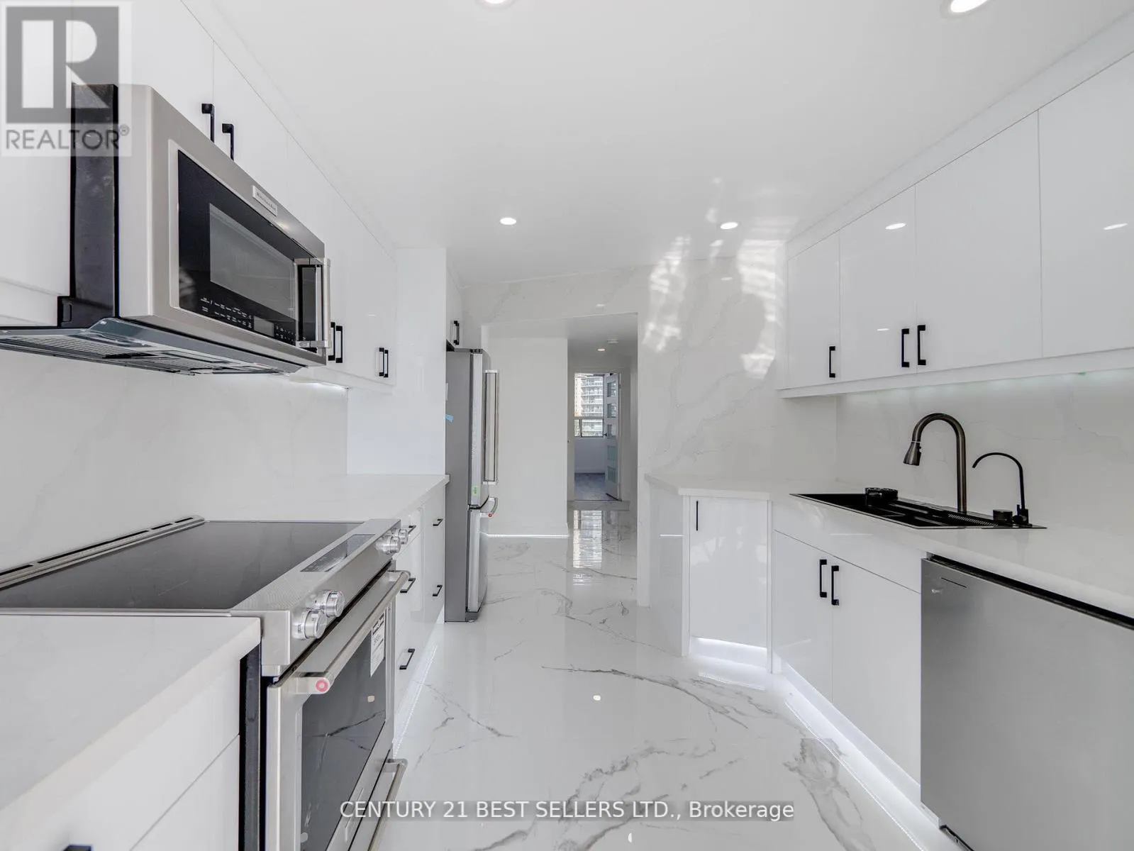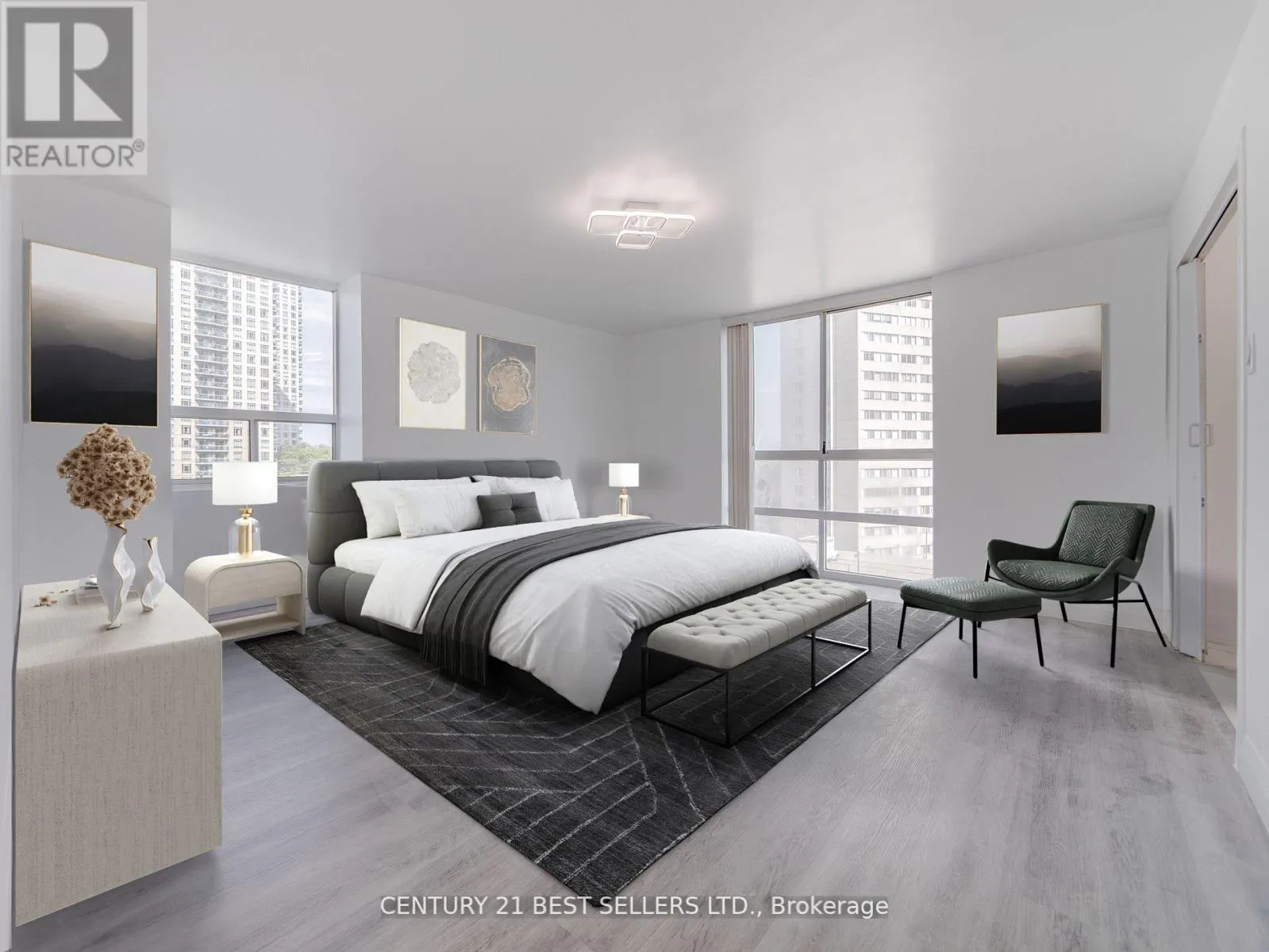 Hurontario and Burnhamthorpe Welcome to this stunning 3 + 1 bedroom condo that's truly move-in ready! Located in the heart of highly sought-after Downtown Mississauga, this spotless, spacious, and bright unit boasts wall-to-wall windows that flood the space with natural light. The open-concept living and dining areas are perfect for entertaining, with dual access to the kitchen ensuring seamless flow. The kitchen is a chefs delight, featuring ample cabinetry, granite countertops, and a stylish backsplash. The primary bedroom offers a walk-in closet and a 3-piece en-suite bath. The versatile Den can be easily transformed into a home office! The condo also includes the convenience of in-suite laundry and 2 owned underground parking spots. Recent upgrades include New Kitchen cabinets, paint and tile flooring (2024), Stainless Steel Kitchen Appliances (2024), washer/dryer (2024) and modern light fixtures (2024). This is more than just a condo- its a lifestyle. Don't miss this opportunity. (id:27476)