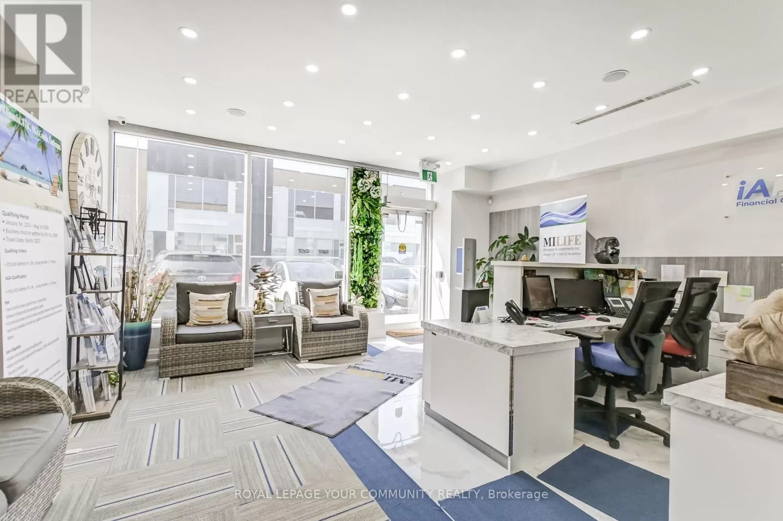 Queensway East & Stanfield Ground Floor Office Space Spanning Approx 2000sqft In A Bustling Commercial Retail & Industrial Mixed Use Newly Constructed Plaza. Professionally Finished And Move In Ready Suitable For Multiple Uses Including: Insurance, Real Estate, Law, Engineering, Accounting, Architecture, Marketing, Advertising, Design, & More. A Variety Of Businesses Within The Plaza Currently Operating Include: Medical, Pharmaceutical, Dental, Physio, Restaurant & Many More To Make This A High Traffic Area. Excellent South Exposure On Queensway Providing Visible Signage & Tons Of Natural Light. 1 Front Desks, 7 Private Offices, 8 Cubicles + 2 Private Cubicle Offices With Closed Door, 1 Kitchenette, 2 Bathrooms (1 Handicap Accessible). Property Currently Leased For Approx. $8,000 Per Month on a 3+2 Year Lease. Buyer Must Assume Tenant. Modern Finishes Throughout Including Glass Office Walls, Motion-Sensor LED Lights, Stainless Steel Appliances, Custom Cabinetry. (id:27476)