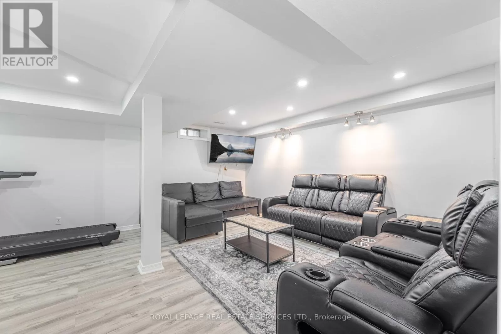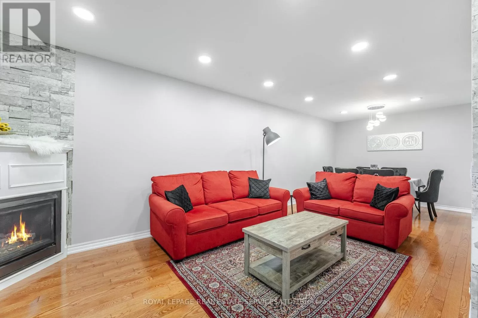 Mavis Rd & Eglinton Ave E Welcome to this beautifully upgraded end-unit condo townhouse, ideally tucked away on a quiet court in the heart of Mississauga. Boasting over 2,000 square feet of thoughtfully designed living space, this impeccably maintained home features elegant hardwood flooring throughout both the main and upper levels.The open-concept main floor offers a seamless flow, perfect for everyday living and entertaining. Enjoy a spacious dining area, a chic 2-piece powder room, and a kitchen equipped with built-in appliances. The inviting living room is warmed by a cozy fireplace and overlooks a sun-drenched backyard facing a children's playground - a serene setting for families. Upstairs, the expansive primary suite offers his and hers custom closets and a luxurious 4-piece ensuite. Three additional generously sized bedrooms and a beautifully updated 4-piece bathroom complete the upper level. Custom closets throughout by Grinyer add both style and smart storage, while WiFi-controlled LED pot lights elevate the ambiance throughout the home.The finished basement has been recently renovated to include a modern bathroom, a functional laundry area, and plenty of storage space. Situated minutes from Square One, top-rated schools, major highways, parks, and dining- this home truly checks athe boxes. A must-see gem in a prime location! (id:27476)