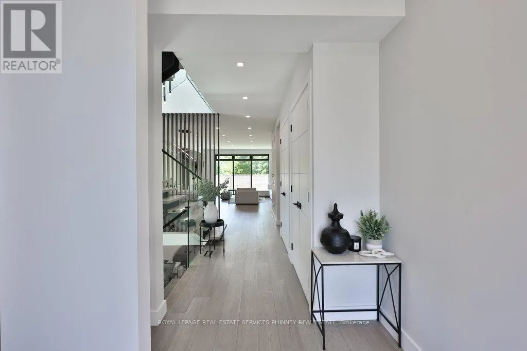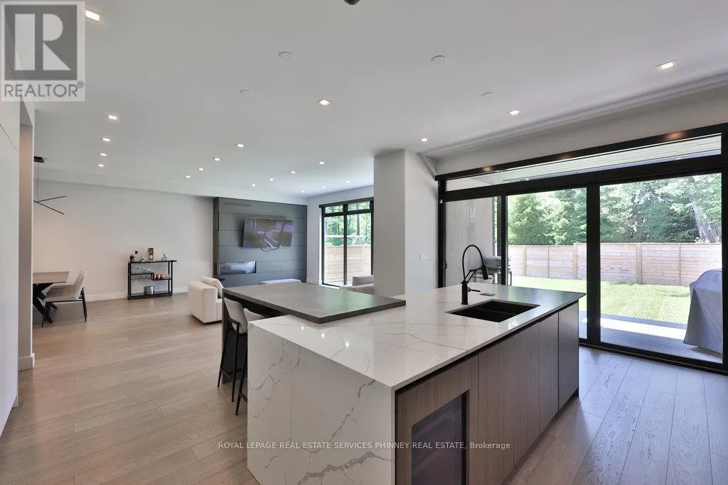 Cross Streets: Lakeshore Rd E/Beechwood. ** Directions: Lakeshore Rd E South on Beechwood Ave. Client RemarksAn Unrivaled Expression of Luxury South of Lakeshore. Tucked away on a tranquil cul-de-sac just steps from the shimmering shores of the lake, this custom-built masterpiece embodies the essence of refined living.Over 5,500 sqft of beautifully curated space, every inch of this home has been thoughtfully designed to impress. 10ft ceilings on main, 9ft ceilings on 2nd and lower level. Wide planked flooring, solid interior doors, radiant floor heating under all tiled surfaces and the entire lower level floor.The layout is both elegant and functional, offering a secluded home office at the front of the house-perfect for moments of quiet focus. At the heart of the home, an open-concept living, dining, and kitchen area is tailor-made for effortless entertaining. The chefs kitchen is a vision of modern glamour ft Thermador integrated appliances, sleek quartz countertops and backsplash, a showstopping custom stone island with breakfast bar, and a striking built-in wine display.Upstairs, natural light pours through three skylights, illuminating the spacious bedrooms and spa-inspired bathrooms. The exquisite primary suite is a private retreat, with expansive windows, a custom walk-in dressing room, and a lavish six-piece ensuite. Unwind in the oversized soaker tub, or indulge in the dual showers with body jets-a sanctuary designed for total relaxation.The lower level is equally impressive, featuring a unique 400-square-foot gym beneath the excavated garage, a guest bedroom, and a sprawling recreation space bathed in natural light from above-grade windows. With a rough-in for a secondary kitchen or wet bar, the possibilities are endless whether hosting, relaxing, or creating a full in-law suite.Walk to the end of the street to the waterfront trails to Adamson Estate, Lakefront Promenade, Port Credit Yacht Club. Close to schools, the shops and restaurants of Port Credit, easy highway access or a short drive to Long Branch GO station. (id:27476)
