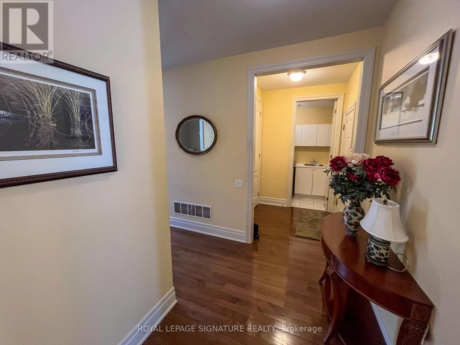 Dundas/Mississauga/Collegeway Elegant condo townhouse with a bright open-concept design and vaulted Great Room leading to a spacious deck overlooking a private garden. The primary suite offers a walk-in closet and spa-inspired ensuite. A fully finished lower level includes a guest bedroom, full bath, and ample storage. Maintenance-free living with exterior care, landscaping, and road up keep included. (id:27476)