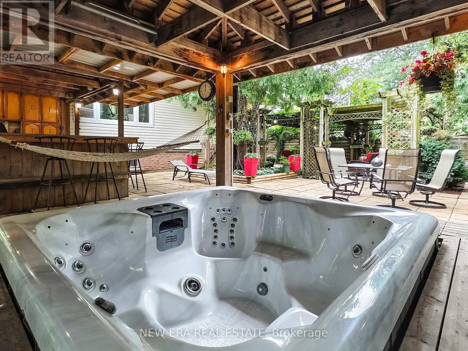 Britannia/Glen Erin Welcome to this unique front split-style home in Prime West Meadowvale! Surrounded by beautiful parks, the scenic Wabukayne Trail, and the serene Lake Aquitaine, this fully renovated gem offers the perfect blend of a cottage-like oasis and an entertainer's dream, perfect for growing families who crave space and character. The home features 3 spacious bedrooms and a private family room, that can easily be used as an additional bedroom! The backyard is incredibly private, surrounded by mature cedar trees and custom landscaping, complete with a hot tub and a custom outdoor kitchen! Inside, you will find a cozy living room featuring breathtaking cathedral ceilings, and a wood-burning fireplace. Enjoy a finished basement with tones of extra storage space and an office that embodies classic character, as well as a sauna to enjoy for ultimate relaxation. Steps away from St. Elizabeth Seton Catholic School, plazas and transit, and only a short drive to Erin Mills Town Centre, Credit Vally Hospital, and Meadowvale Town Centre. This home truly provides a spectacular lifestyle in a vibrant neighbourhood. (id:27476)