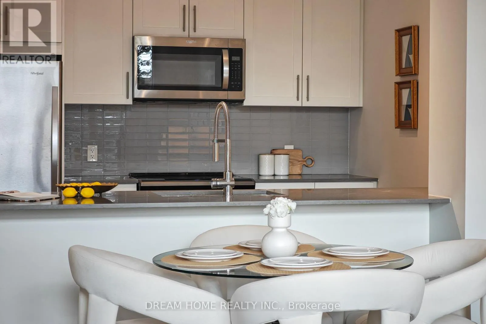 Confederation/Burnhamthorpe Beautiful 3-Bedroom, 2-Level Townhouse! Well-maintained by the Owner, this bright open-concept townhouse is ideally situated on a quiet west-facing street. Featuring a gourmet kitchen with premium stainless steel appliances & breakfast bar, spacious family & dining rooms with floor-to-ceiling windows & zebra blinds. The primary suite boasts a spa-like 5pc ensuite, walk-in closet & private balcony, while the second bedroom offers a large closet & balcony access. With 9ft ceilings, engineered hardwood throughout, central vacuum, powder room & full bath, this stylish and functional home is perfect for family living and entertaining. Welcome to your new townhouse! Priced to Sell! (id:27476)