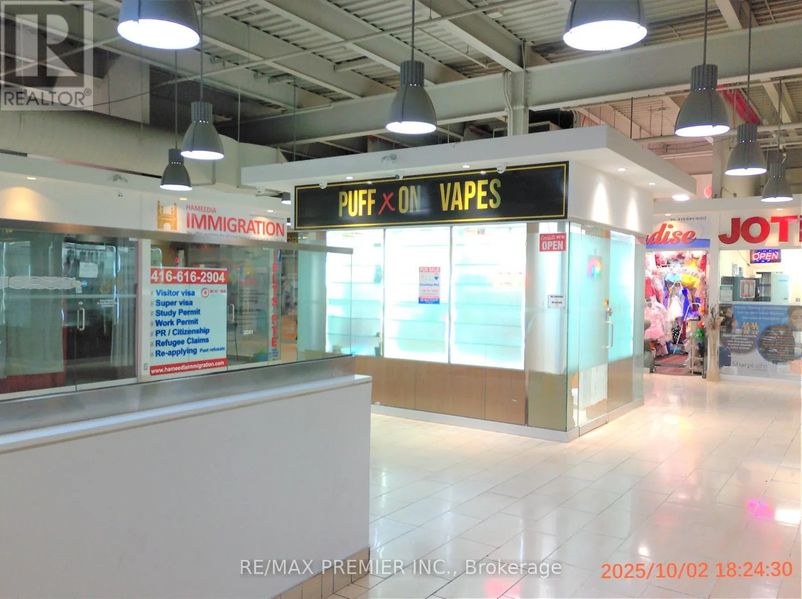 Cross Streets: Derry Rd & Goreway Dr. ** Directions: Off Goreway Drive. Location....Location....Location.... Fully Furnished Prime Space in a High Traffic Mall....Strategically well-located retail unit...Approx. 134 Sq. Ft... Currently being run as a Licensed Vape Store ....just right off the escalators on the second floor of Westwood Square Mall. Great exposure & High visibility catches the attention of all foot traffic heading to the second floor..... This commercial retail unit offers numerous advantages for retailers seeking a prime location to establish their business and attract customers. Situated in a bustling commercial district with high foot traffic and excellent visibility, this unit offers a versatile space for a range of businesses..... Ample parking options nearby ensure convenience for both customers and employees.... Enjoy the benefits of ownership while potentially generating rental income or capital appreciation. (id:27476)