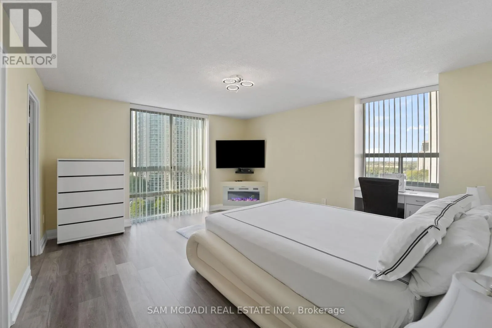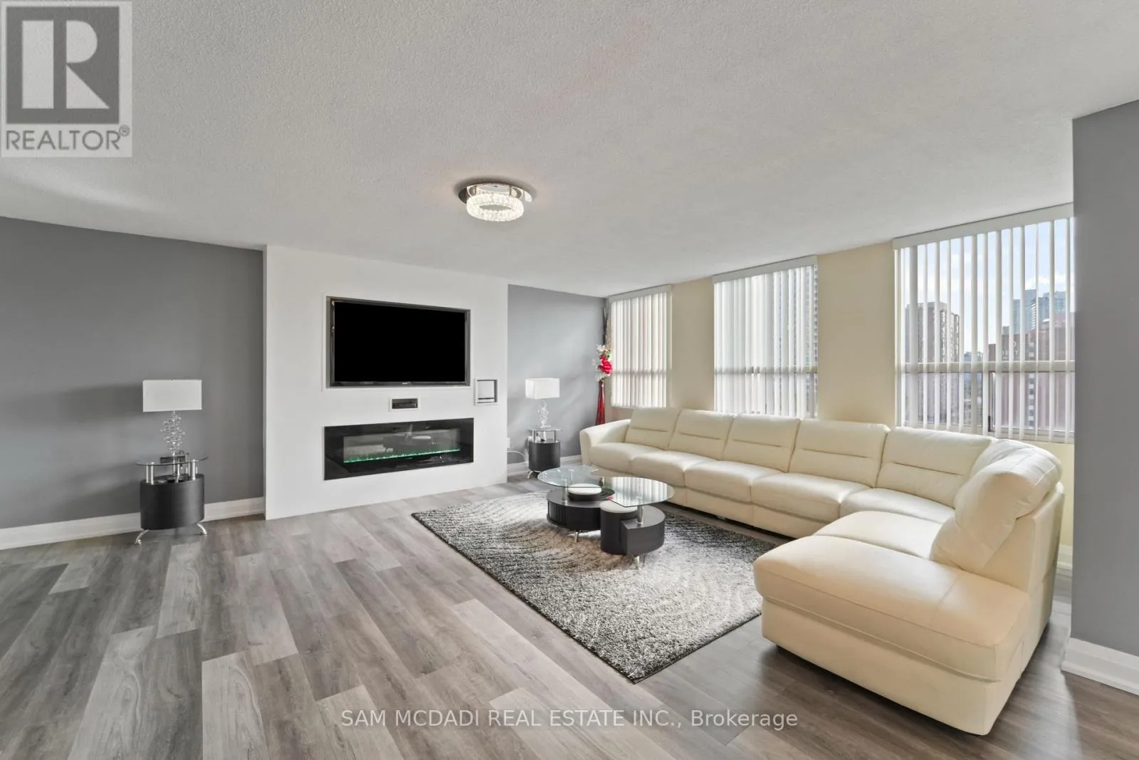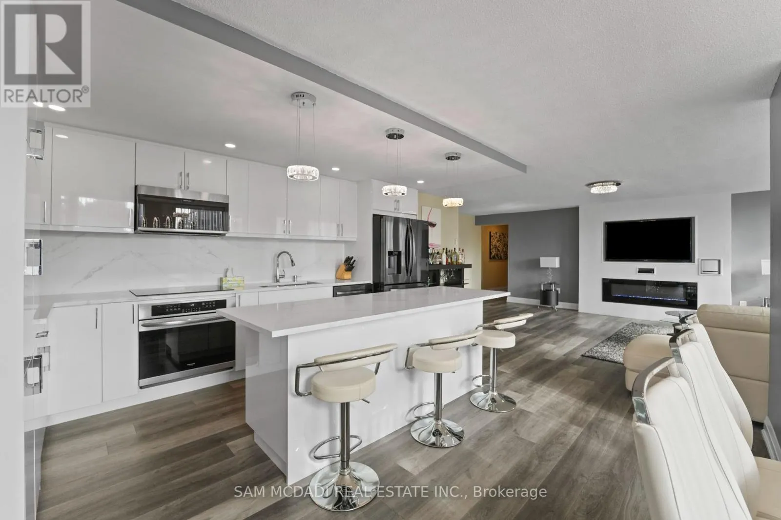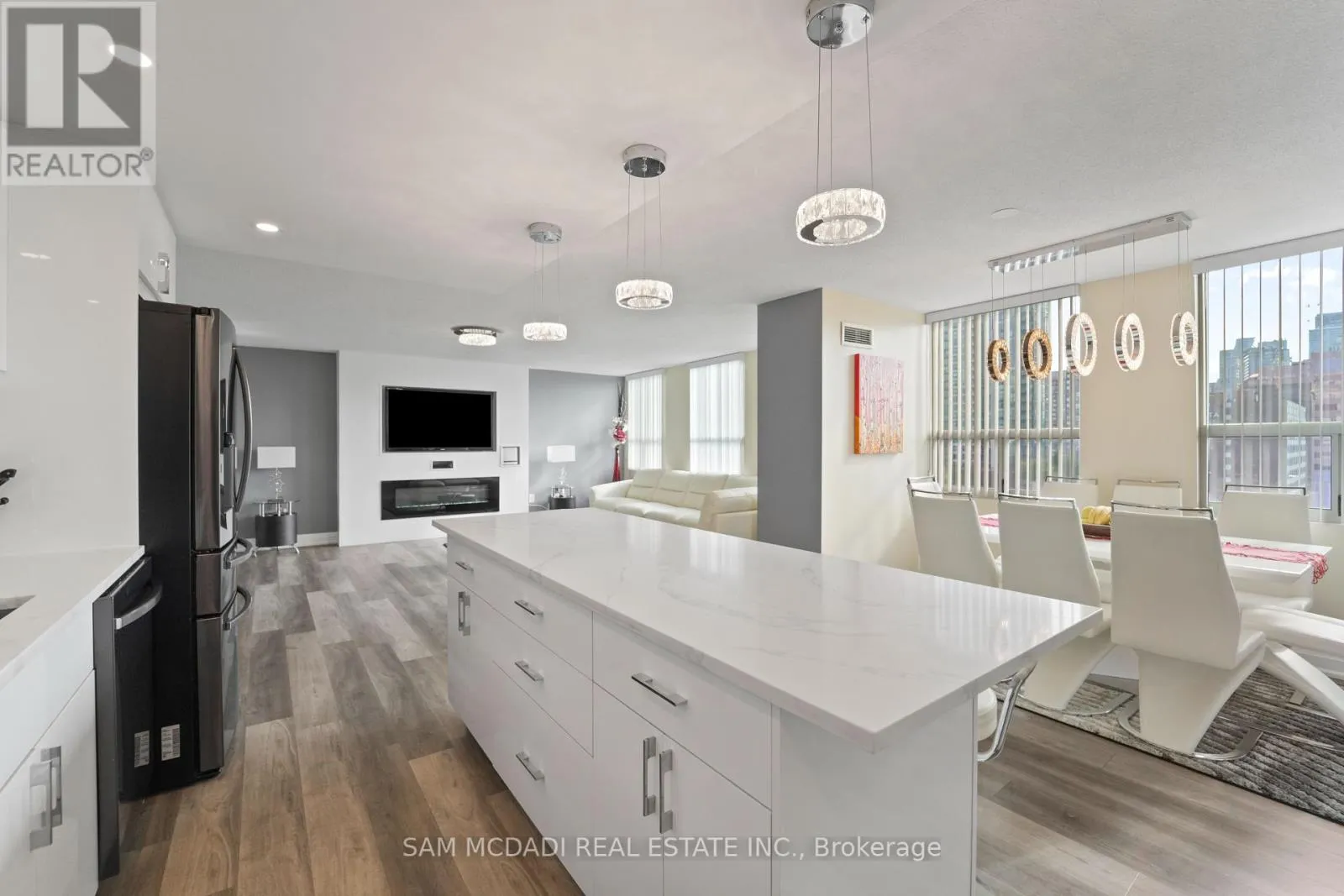 Burnhamthrope And Hurontario Welcome to your dream luxury condo, an exceptional residence spanning 1,682 square feet and one of the largest apartments in the area. Located in the heart of Mississauga, this exquisite residence has been tastefully renovated with high-end finishes, showcasing a commitment to quality and sophistication. As you enter, you are greeted by wall-to-wall windows that flood the space with natural light, creating an airy and inviting atmosphere. The heart of this home is the breathtaking kitchen, featuring beautiful quartz countertops and an elegant backsplash that exemplify modern design. The modern vinyl flooring flows seamlessly throughout the living spaces, creating a warm and inviting atmosphere. This condo boasts 3 generously sized bedrooms and 2 beautifully appointed bathrooms, offering ample space for relaxation and privacy. The living room and primary bedroom each feature a sleek electric fireplace, providing warmth and a touch of opulence. The primary bedroom features a luxurious 4-piece ensuite and an expansive walk-in closet, providing ample storage and privacy. Additional highlights include a versatile solarium/den, perfect for a home office or cozy reading nook, and two dedicated parking spots for your convenience. With all utilities included, you can enjoy a worry-free lifestyle in this prestigious setting. Building ammenities includes: 24-Hour Concierge, Gym, Exercise Room, Indoor Swimming Pool with Jetted Seating Area, Men's & Women's Sauna, Library, Security Guard, Squash racquet court, Party Room, Billiards & Ping-Pong Rooms, Outdoor Tennis Court, Outdoor Garden with Patio Seating Area and covered visitors parking. Located just a short walk from Square One Mall and conveniently close to highways 403, 401, and QEW, as well as public transit, schools, a library, grocery stores, pharmacies, and banks, this condo offers the perfect blend of luxury and location. Dont miss your chance to call this exquisite property home! (id:27476)