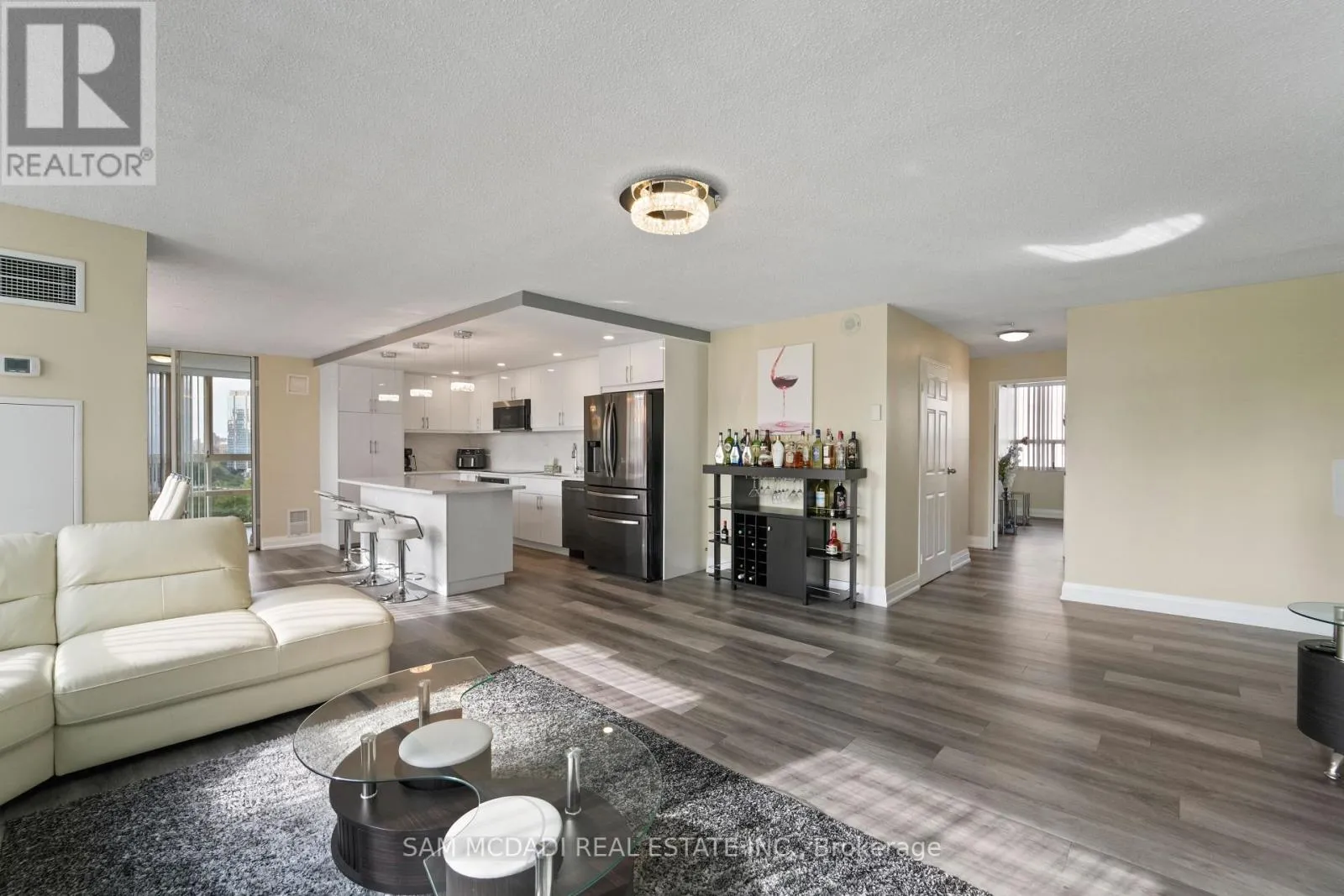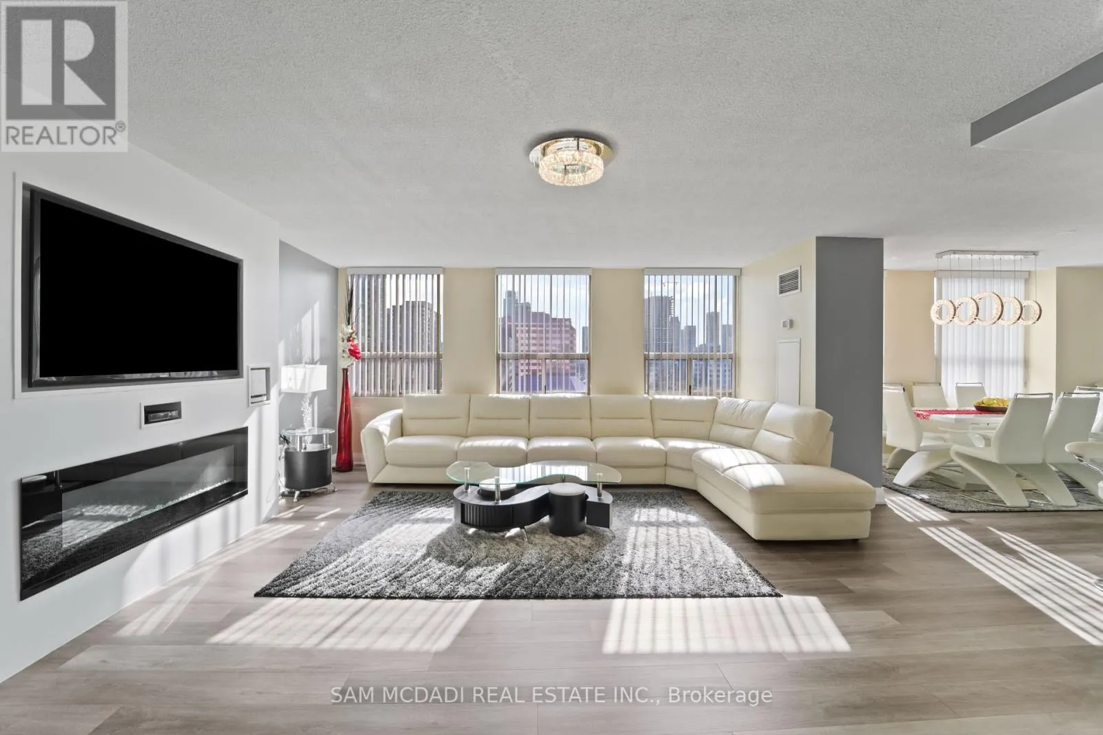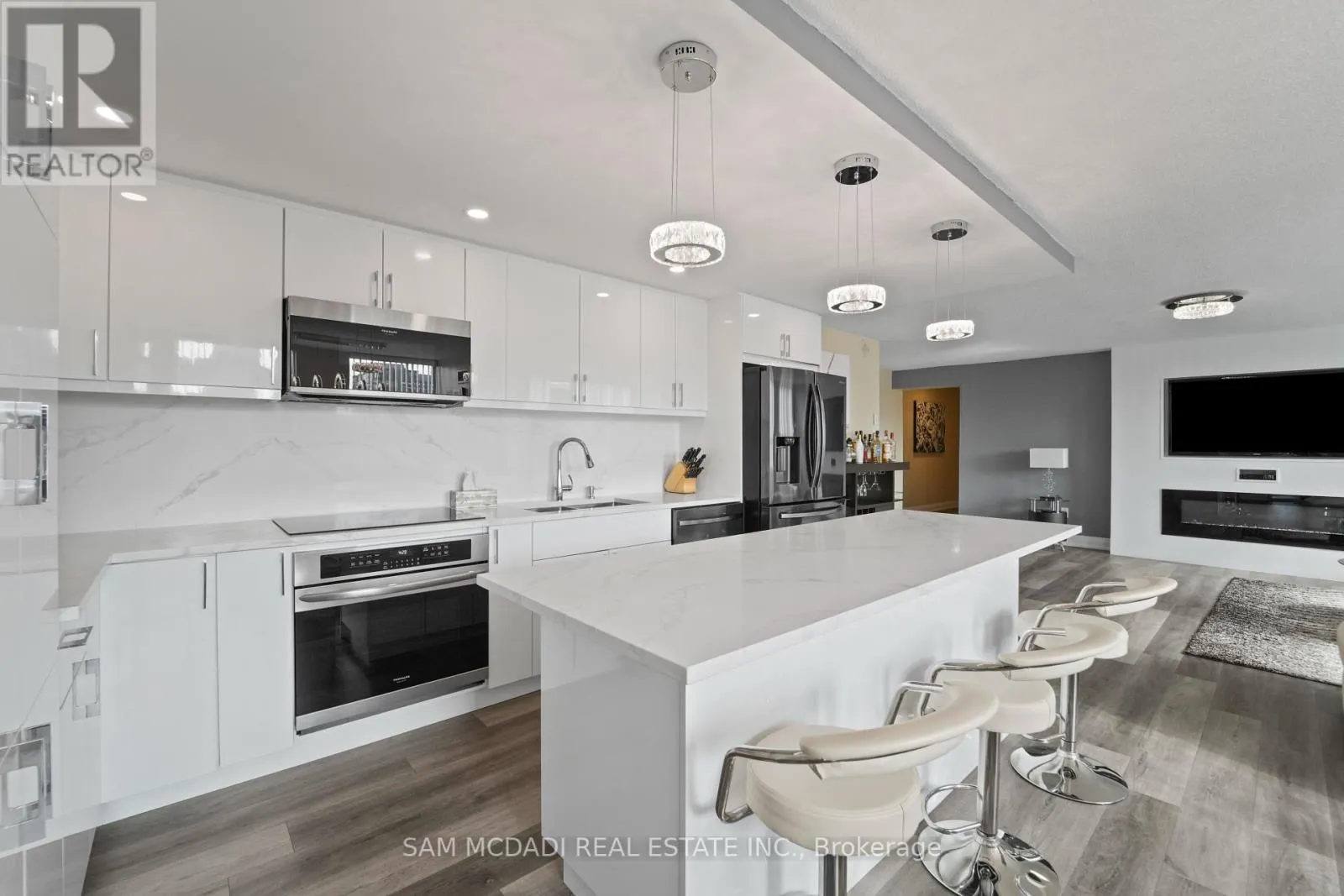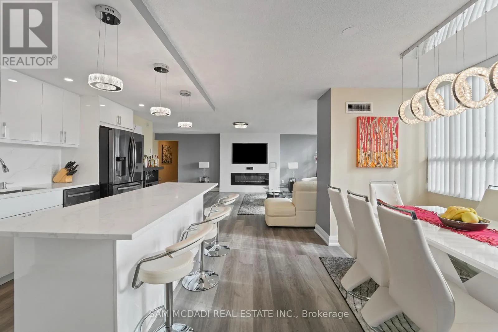 Burnhamthrope And Hurontario Welcome to your dream luxury condo, an exceptional residence spanning 1,682 square feet and one of the largest apartments in the area. Located in the heart of Mississauga, this exquisite residence has been tastefully renovated with high-end finishes, showcasing a commitment to quality and sophistication. As you enter, you are greeted by wall-to-wall windows that flood the space with natural light, creating an airy and inviting atmosphere. The heart of this home is the breathtaking kitchen, featuring beautiful quartz countertops and an elegant backsplash that exemplify modern design. The modern vinyl flooring flows seamlessly throughout the living spaces, creating a warm and inviting atmosphere. This condo boasts 3 generously sized bedrooms and 2 beautifully appointed bathrooms, offering ample space for relaxation and privacy. The living room and primary bedroom each feature a sleek electric fireplace, providing warmth and a touch of opulence. The primary bedroom features a luxurious 4-piece ensuite and an expansive walk-in closet, providing ample storage and privacy. Additional highlights include a versatile solarium/den, perfect for a home office or cozy reading nook, and two dedicated parking spots for your convenience. With all utilities included, you can enjoy a worry-free lifestyle in this prestigious setting. Building ammenities includes: 24-Hour Concierge, Gym, Exercise Room, Indoor Swimming Pool with Jetted Seating Area, Men's & Women's Sauna, Library, Security Guard, Squash racquet court, Party Room, Billiards & Ping-Pong Rooms, Outdoor Tennis Court, Outdoor Garden with Patio Seating Area and covered visitors parking. Located just a short walk from Square One Mall and conveniently close to highways 403, 401, and QEW, as well as public transit, schools, a library, grocery stores, pharmacies, and banks, this condo offers the perfect blend of luxury and location. Dont miss your chance to call this exquisite property home! (id:27476)