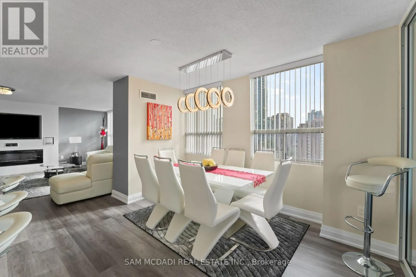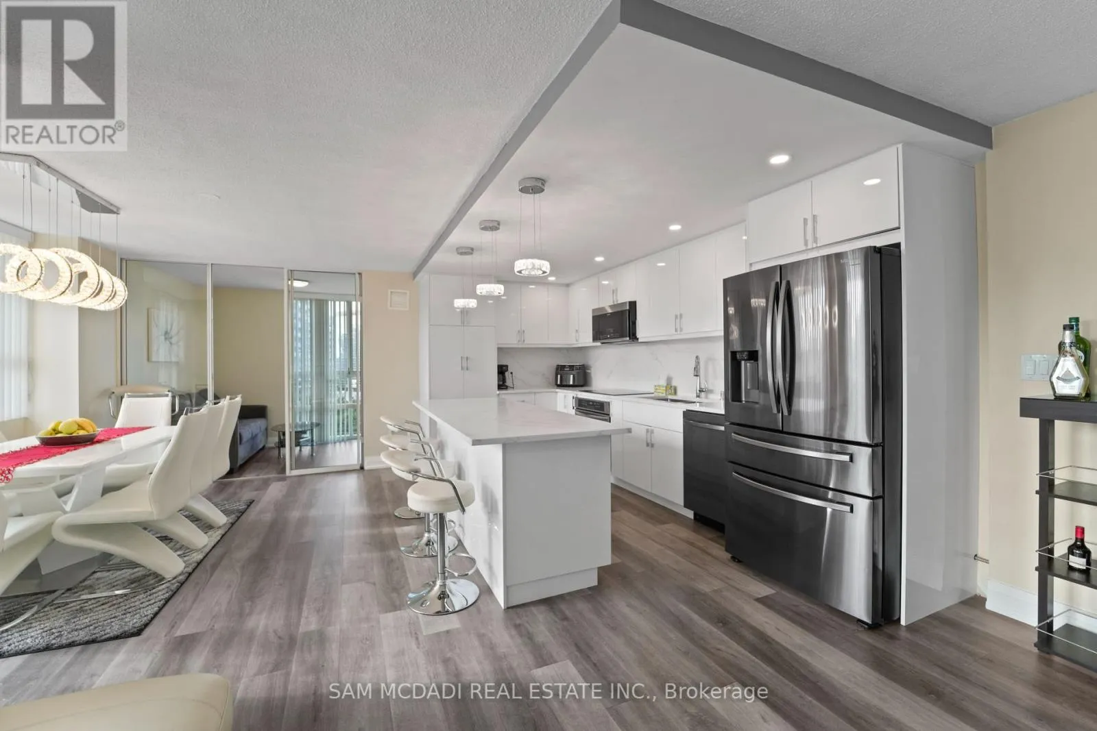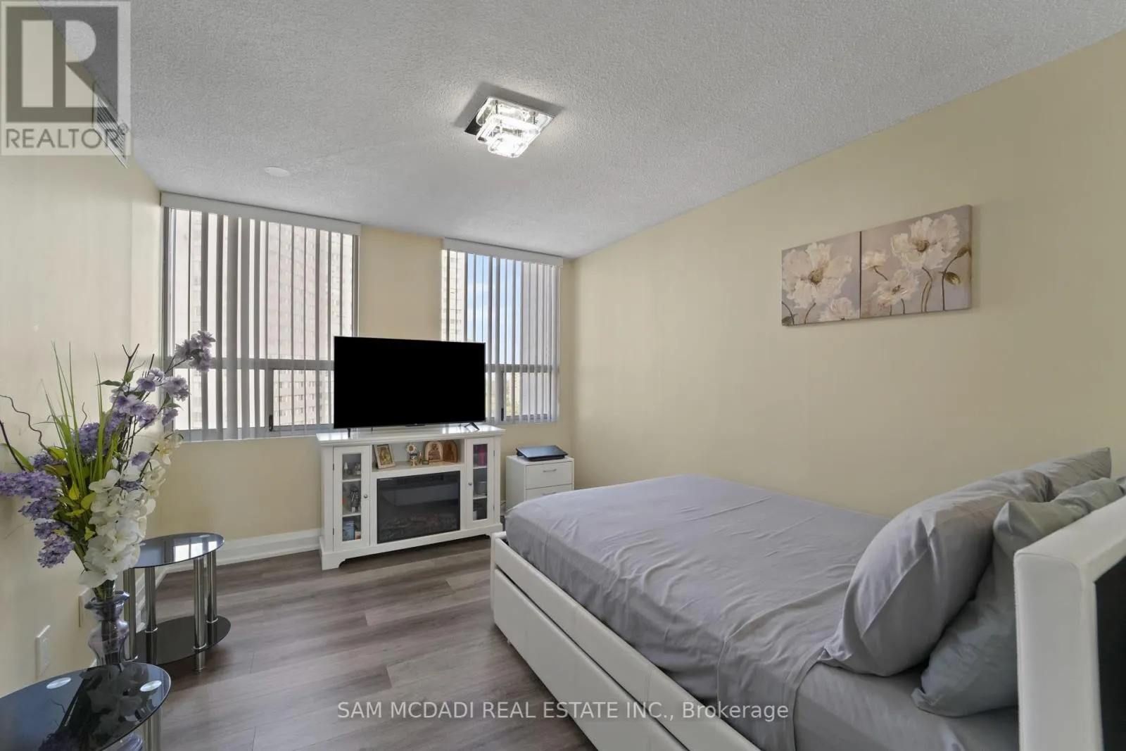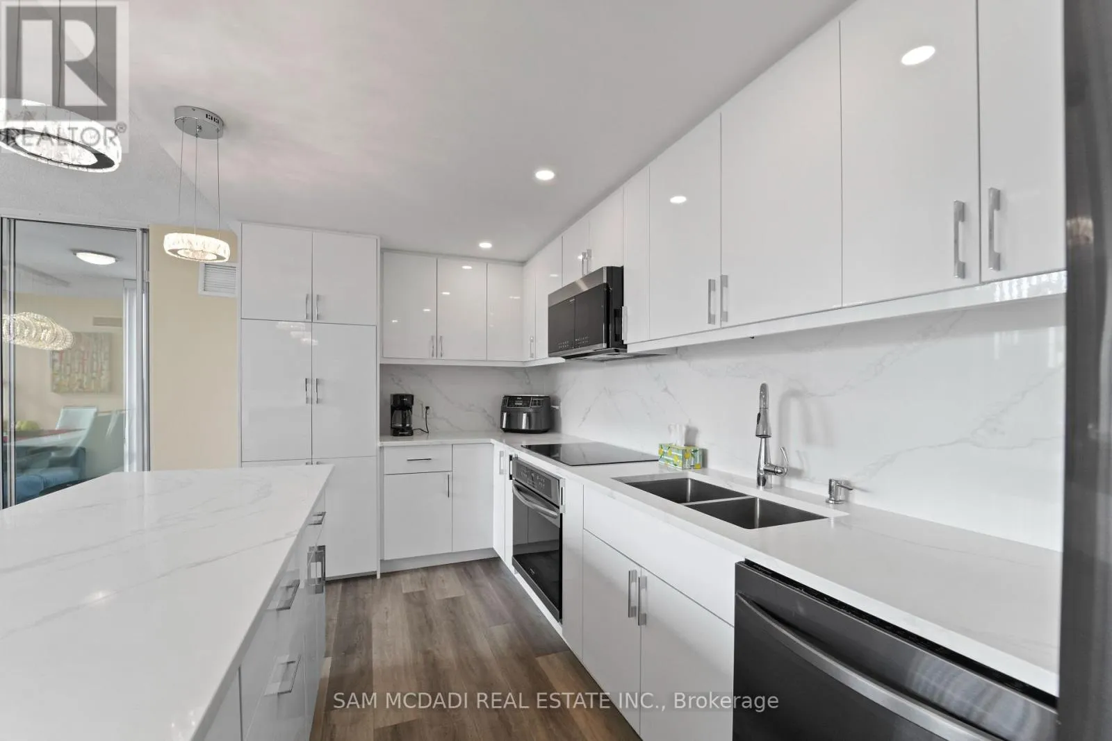 Burnhamthrope And Hurontario Welcome to your dream luxury condo, an exceptional residence spanning 1,682 square feet and one of the largest apartments in the area. Located in the heart of Mississauga, this exquisite residence has been tastefully renovated with high-end finishes, showcasing a commitment to quality and sophistication. As you enter, you are greeted by wall-to-wall windows that flood the space with natural light, creating an airy and inviting atmosphere. The heart of this home is the breathtaking kitchen, featuring beautiful quartz countertops and an elegant backsplash that exemplify modern design. The modern vinyl flooring flows seamlessly throughout the living spaces, creating a warm and inviting atmosphere. This condo boasts 3 generously sized bedrooms and 2 beautifully appointed bathrooms, offering ample space for relaxation and privacy. The living room and primary bedroom each feature a sleek electric fireplace, providing warmth and a touch of opulence. The primary bedroom features a luxurious 4-piece ensuite and an expansive walk-in closet, providing ample storage and privacy. Additional highlights include a versatile solarium/den, perfect for a home office or cozy reading nook, and two dedicated parking spots for your convenience. With all utilities included, you can enjoy a worry-free lifestyle in this prestigious setting. Building ammenities includes: 24-Hour Concierge, Gym, Exercise Room, Indoor Swimming Pool with Jetted Seating Area, Men's & Women's Sauna, Library, Security Guard, Squash racquet court, Party Room, Billiards & Ping-Pong Rooms, Outdoor Tennis Court, Outdoor Garden with Patio Seating Area and covered visitors parking. Located just a short walk from Square One Mall and conveniently close to highways 403, 401, and QEW, as well as public transit, schools, a library, grocery stores, pharmacies, and banks, this condo offers the perfect blend of luxury and location. Dont miss your chance to call this exquisite property home! (id:27476)