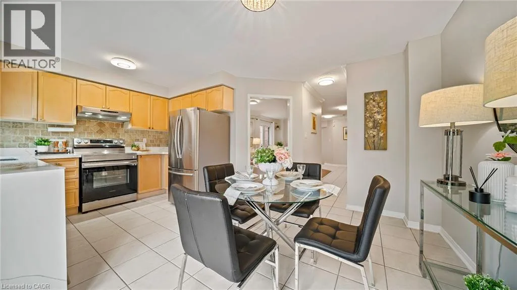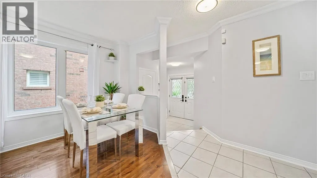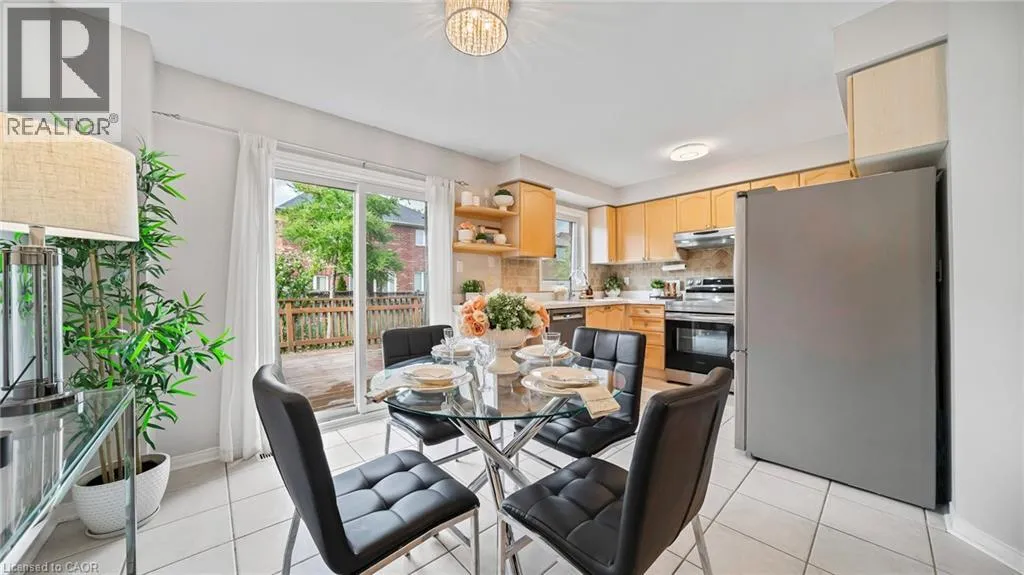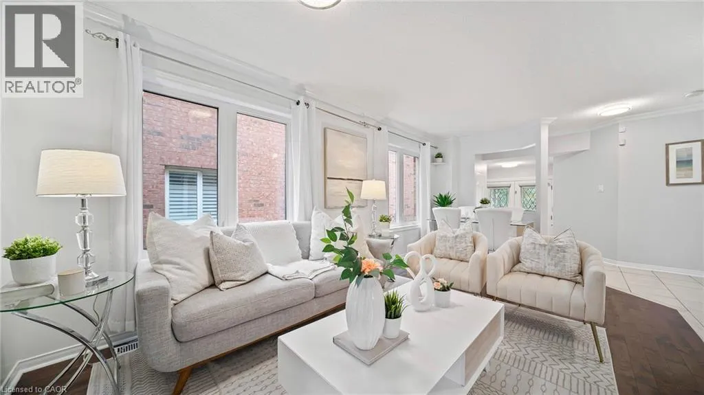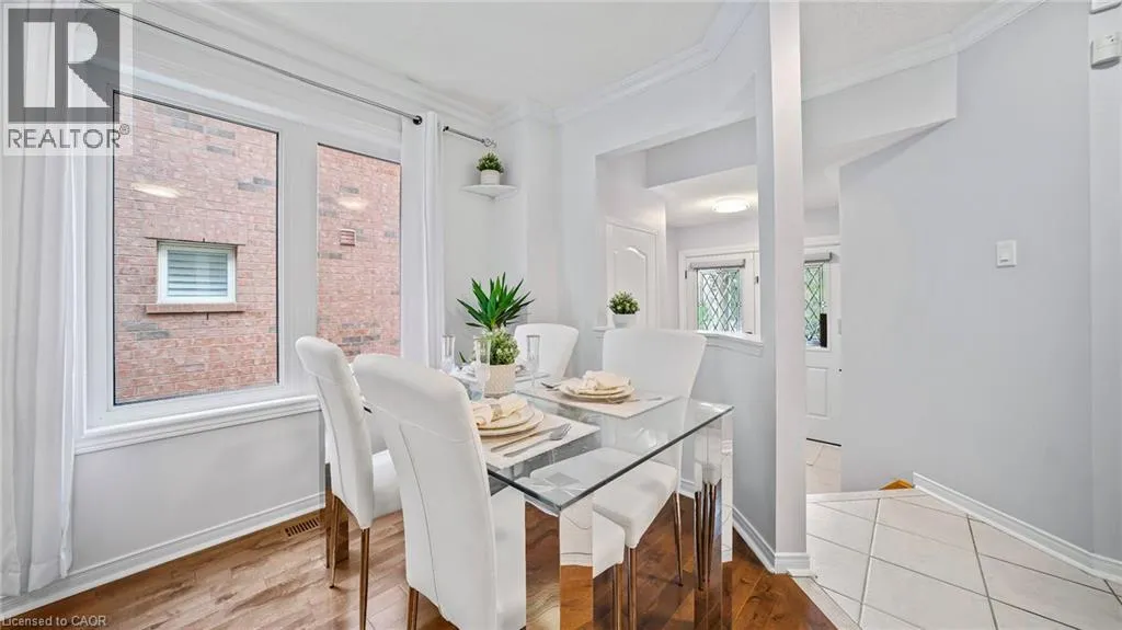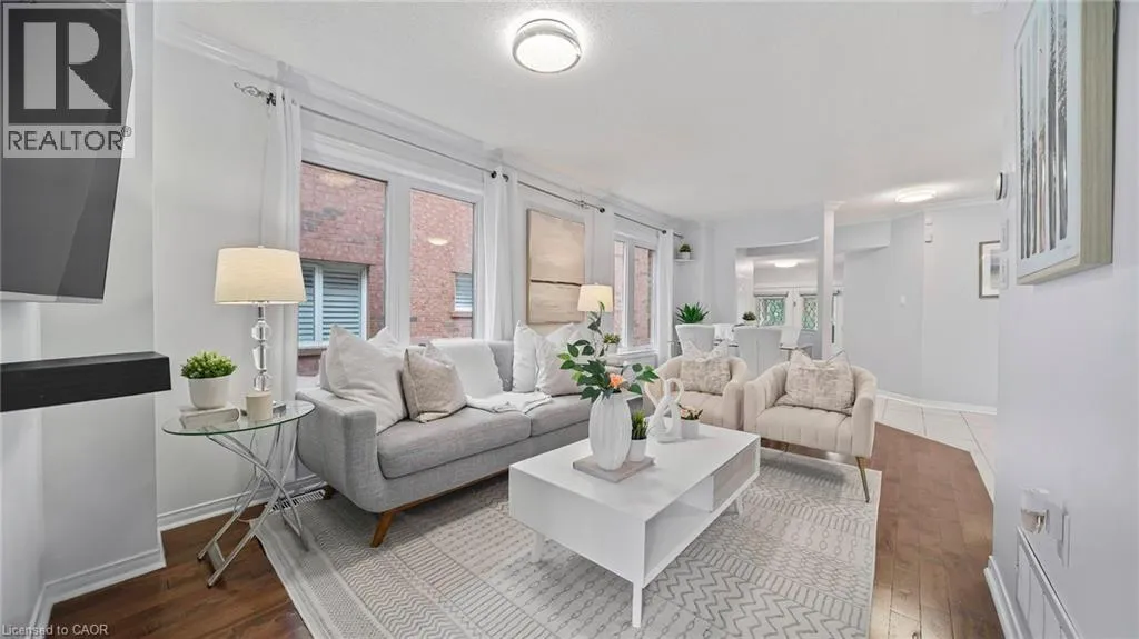 Thomas St & Tenth Line Absolutely stunning semi-detached home in the highly sought-after Churchill Meadows community. Offering 3 spacious bedrooms, 2.5 baths, and one of the largest layouts on the street, this property is surrounded by detached homes, adding long-term value and appeal. Step inside through a custom double-door entry to a bright, welcoming hallway with garage access. The open-concept living and dining area features large windows that flood the space with natural light and wood flooring throughout the main and upper levels. The chef-inspired kitchen is equipped with stainless steel appliances, new quartz countertops, a large window over the double sink, and an inviting breakfast area with a walkout to a private deck. Perfect for morning coffee or family gatherings, the fenced yard offers a serene retreat with a sun-shelter and plenty of space to enjoy. Upstairs, the sun-filled family room provides a versatile space that can also be used as a fourth bedroom. The primary suite features double-door closets and a 4-piece ensuite, while the additional bedrooms are generously sized with ample storage. The basement offers endless potential for a recreation room, home office, or gym. Interlocking brick on the front pathway adds curb appeal. A newly installed heat pump ensures year-round comfort and energy efficiency. Conveniently located just steps to FreshCo, Tim Hortons, top schools, parks, trails, public transit, Highways 401, 407, and QEW, this home truly combines comfort, style, and convenience in one of Mississauga's most desirable neighborhoods. (id:27476)