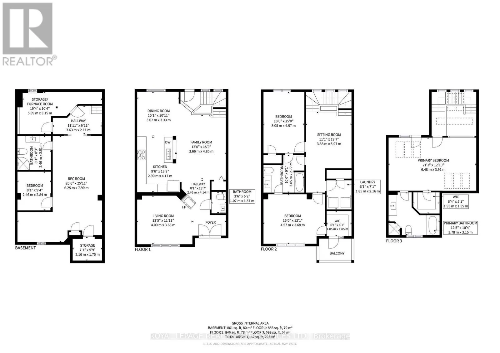 TENTH LINE WEST/MCDOWELL DRIVE Nestled in the prestigious neighborhood of Churchill Meadows, this exquisite 3-storey executive Bond-built townhome offers 3000 sq. ft. of luxurious living space. The home features Brazilian Cherrywood flooring throughout the main level, complemented by 12-foot ceilings, crown moulding, and pot lights that create a warm and inviting ambiance. The open-concept layout is ideal for both entertaining and large family gatherings. The gourmet kitchen is a chefs dream, with tall cabinetry, a stunning marble backsplash, premium appliances, including a double-door ice-maker fridge, built-in stove, oven, and microwave. On the second floor, a spacious family room offers privacy, along with two large bedrooms and a well-appointed Jack and Jill bathroom.The private master retreat occupies the entire third floor, showcasing cathedral ceilings, skylights for natural light, and a 4-piece ensuite with a soaker tub. The large L-shaped walk-in closet provides ample storage space, while the private sundeck offers the perfect setting for morning coffee. Conveniently located steps from Brittany Glen Plaza, local schools,and minutes from Streetsville GO Station, Highway 403, and Erin Mills Town Centre, this homeblends comfort and luxury with exceptional accessibility, making it the perfect choice for discerning buyers. (id:27476)