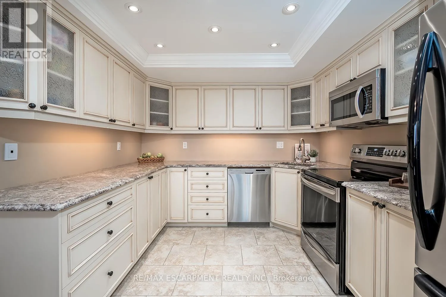 Cross Streets: Lakeshore Road West. ** Directions: Lakeshore Road West/Walden Circle. 2 bedroom + den penthouse level suite at the highly sought-after 'Sheridan Club Condominiums' in Clarkson Village! 1,392 sq.ft. of bright and open living space with absolutely stunning views of the Toronto skyline and Lake Ontario! Steps to the Clarkson GO Station, QEW, the lake, Rattray Marsh, schools, parks, restaurants and shopping! Beautifully updated kitchen with stainless steel appliances, granite and pot lighting opens to a spacious dining room with tray ceiling and a spectacular living room highlighted by the abundance of natural light and breathtaking views. Primary bedroom with walk-in closet, 3-piece ensuite and access to den plus an additional second bedroom with access to a 4-piece bathroom across the hall. Engineered hardwood floors, crown moulding and in-suite laundry. Resort-like building amenities include an indoor pool, gym, sauna, library, party room, games room, workshop, outdoor seating/BBQ area and visitor parking. Condo fee includes cable and internet as well as a membership to the exclusive 'Walden Club' directly across the street, which provides access to an outdoor pool, tennis, squash and pickleball courts, clubhouse and fitness centre! Two side-by-side underground parking spaces and 1 storage locker. (id:27476)