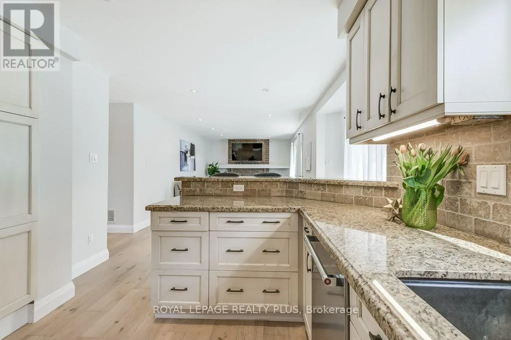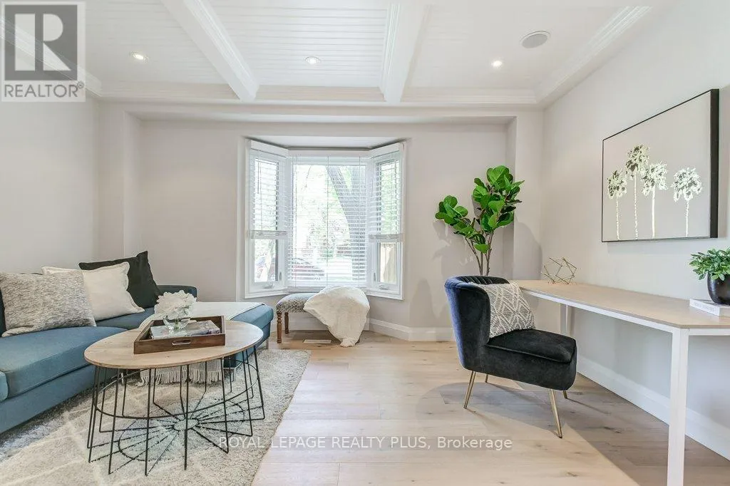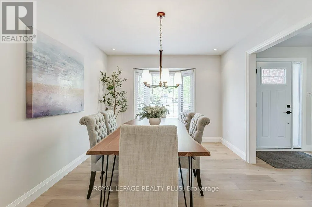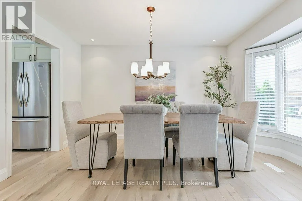 10th Line/Trelawny This stunning home combines curb appeal with a thoughtful blend of modern updates and functional design. Inside, the beautifully appointed kitchen features timeless tumbled marble and a spacious eat-in layout that overlooks the family room and backyard, creating a perfect space for everyday living and entertaining. Hardwood floors flow seamlessly across the main and upper levels, enhancing the sense of warmth and continuity. A sunken living room with a striking coffered waffle ceiling offers flexibility, ideal as a den, office, formal living space, or even a fifth bedroom. The open-concept foyer provides excellent sightlines and leads to large principal rooms, including elegant formal living and dining areas along with a bright, welcoming family room. Upstairs, four generously sized bedrooms form a well-designed family layout, highlighted by a massive primary retreat complete with dual closets and a spacious four-piece ensuite. The unfinished basement offers endless possibilities to finish to your own style while also providing ample storage, including a cold room. This home is designed for both comfortable family living and memorable entertaining, with every detail thoughtfully considered. (id:27476)