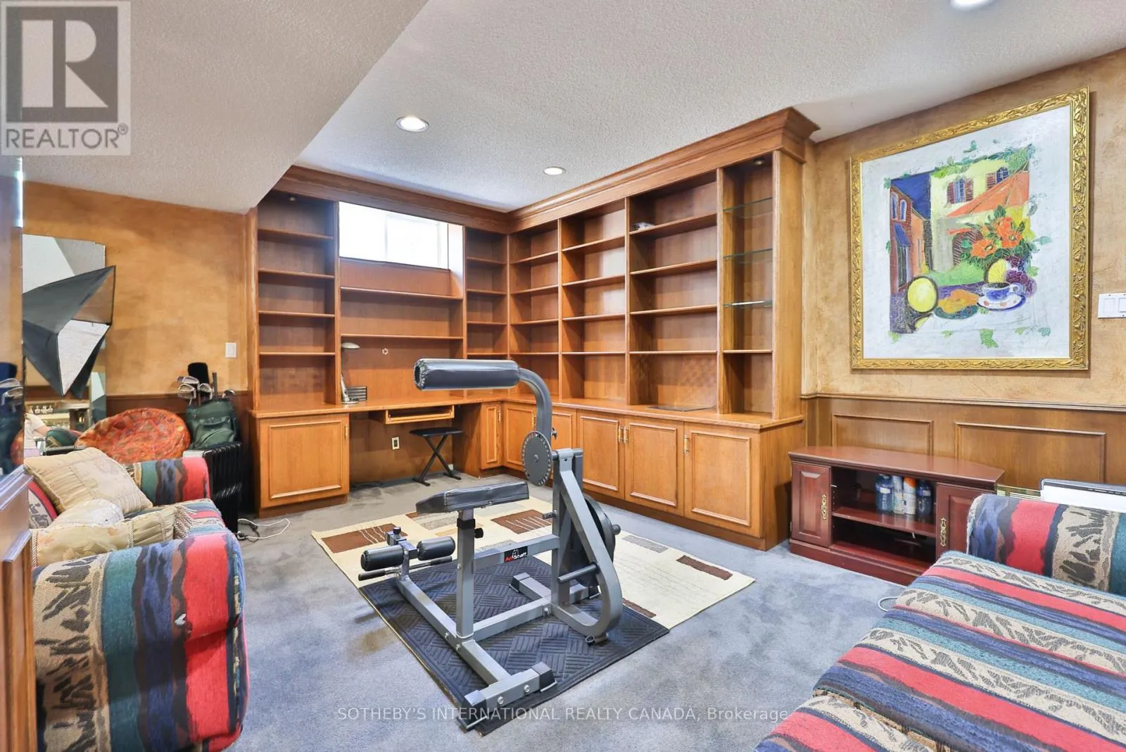 Cross Streets: Mississauga Road. ** Directions: from Mississauga Rd, south onto Geran Cres. Nestled in one of Mississaugas most desirable communities, just moments from the prestigious Mississauga Golf and Country Club, this stately residence offers timeless appeal and exceptional space for both family living and grand entertaining. Built with enduring quality and traditional craftsmanship, the home combines elegance with comfort, creating the perfect setting for a lifetime of memories.Upon entry, guests are greeted by luxurious marble floors that set a tone of refinement throughout. The main level boasts striking marble-clad fireplaces and classic herringbone wood floors that flow seamlessly through the formal living, dining, and family rooms. A dedicated home office, enhanced with rich custom built-ins and a charming bay window overlooking the tree-lined street, provides an inviting and private workspace filled with natural light. A thoughtfully designed laundry room with built-in storage is also located on this level, adding practicality and ease to daily living.The generous layout offers four bedrooms and five bathrooms, each thoughtfully designed with ample space and classic proportions. Large principal rooms lend themselves beautifully to gatherings, celebrations, and quiet family evenings alike.The lower level is equally impressive. A finished walk-out basement with soaring 9-foot ceilings expands the home's versatility, featuring a second kitchen, wet bar, fully functional sauna, exercise room, and abundant natural light. This level is ideal for extended family, guests, or as a hub for entertaining on a grand scale. Practical features such as a large garage further enhance the homes appeal, providing ample space for vehicles, storage, or hobby use.While beautifully maintained, the residence also presents an exciting opportunity to infuse modern updates and personal touches, ensuring its timeless foundation is complemented by contemporary style. (id:27476)