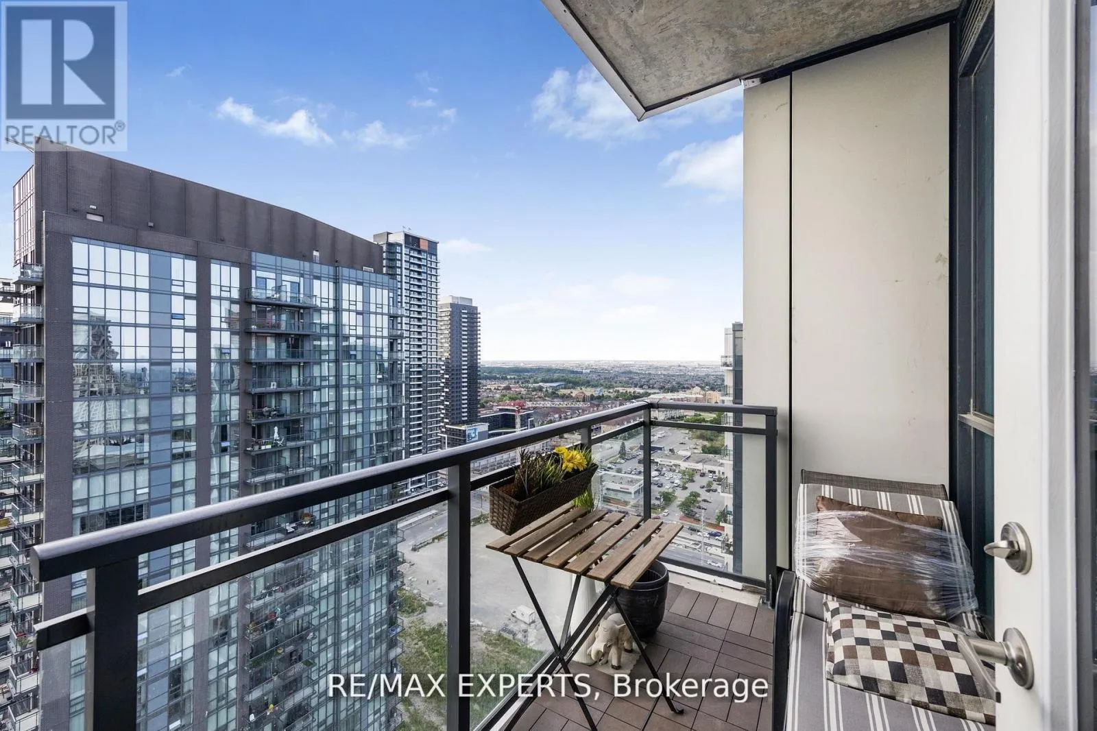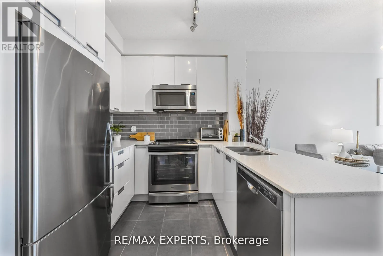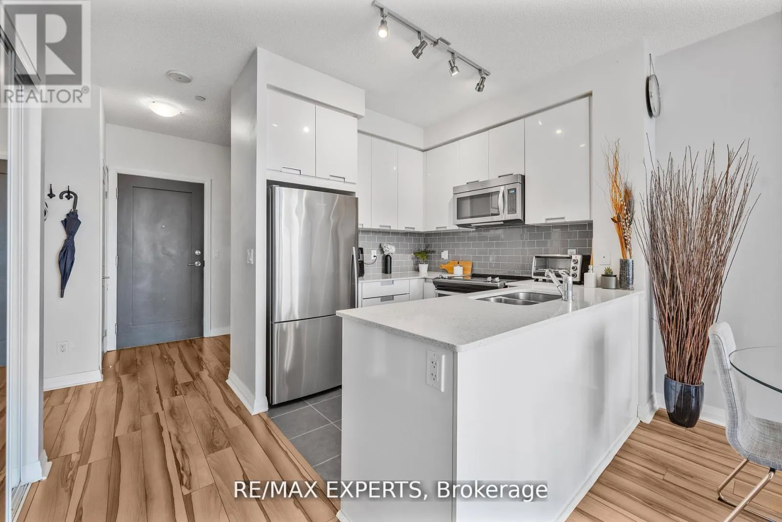 Eglinton/Hurontario Welcome home to this sun filled unit at Pinnacle Uptown, Crystal Tower. This 1-bedroom + Den condo is where comfort meets possibility. The open-concept layout flows effortlessly from a sleek kitchen to a bright living space, perfect for cozy nights or lively dinner parties. Modern upgraded full sized is a masterpiece, featuring luxurious quartz counters, Complementing backsplash and sophisticated finishes that elevate the space to new heights of elegance. The generous size primary bedroom has large closet and entrance to the modern semi on suite. Large den perfect for a home office or kids Nursery. Great Amenities, Pool, Fitness Centre, Guest Suite, Party Rm, Games Rm &More. Conveniently located minutes away from all major highways and the future Mississauga LRT, you are walking distance from Square One Shopping Center, parks, recreation centers, the list goes on. Don't miss out on this turn key unit! (id:27476)