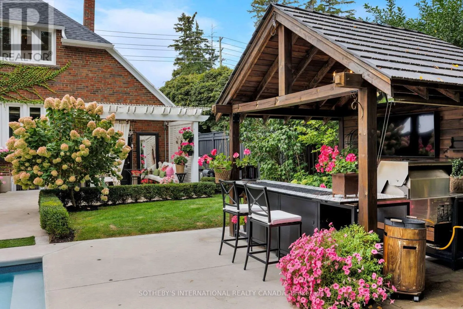 Cross Streets: Coming East on Lakeshore Road West, turn left down Clarkson Road South towards Orr Road. ** Directions: Lakeshore Road West & Clarkson Road South. A Classic in Clarkson! South of Lakeshore, this stunning character home oozes charm from top to bottom. Irresistible curb appeal on a professionally landscaped 60 ft wide lot. Follow the flagstone path to your original rounded wood entry door and head inside this exceptional home. The perfect combination of timeless style and modern living in a way few properties can match. The main floor welcomes you with a generous front hall fitted with beautiful pattern cement tile & Oak hardwood floors that extend throughout the home, extra high baseboards, a foyer closet and crystal knobs on the original wood doors. As you step inside, the heart of the home unfolds, a kitchen anchored by an oversized peninsula with marble counter tops, custom cabinetry, a pot filler, Waterstone faucet, high end appliances, including a Wolf gas range, Viking stand alone refrigerator, Perlick freezer & Brigade dishwasher. Flow effortlessly into your dining room which features a stunning Coffered ceiling and an incredible Ethan Allen iron light fixture. The living room was designed with luxury and comfort in mind, the perfect place to unwind and enjoy the garden view from both angles. Outdoor living is extra special with a lush private yard. Feel as though you are in the French Riviera with the smooth concrete patio, 10x16 cocktail saltwater pool with deck jets & multi colour lighting, not one but two pergolas, one providing full coverage for those rainy days, and an expansive covered bar equipped with a Crown Verity Gas BBQ. Upstairs, the 2nd floor offers 3 bedrooms, ample storage, and a stylish 3-piece bath w/French-inspired hardware, heated marble floors, bevelled edge quartz counters & a soaker tub. Equally impressive, the lower level offers nanny or in-law suite potential w/a side entrance, laundry area with Miele washer & dryer, finished open concept space, a kitchenette and a gorgeous 3-piece bathroom with Kohler cast iron trough sink. Steps to the Rattray Marsh, Clarkson Go & Lakeshore! (id:27476)