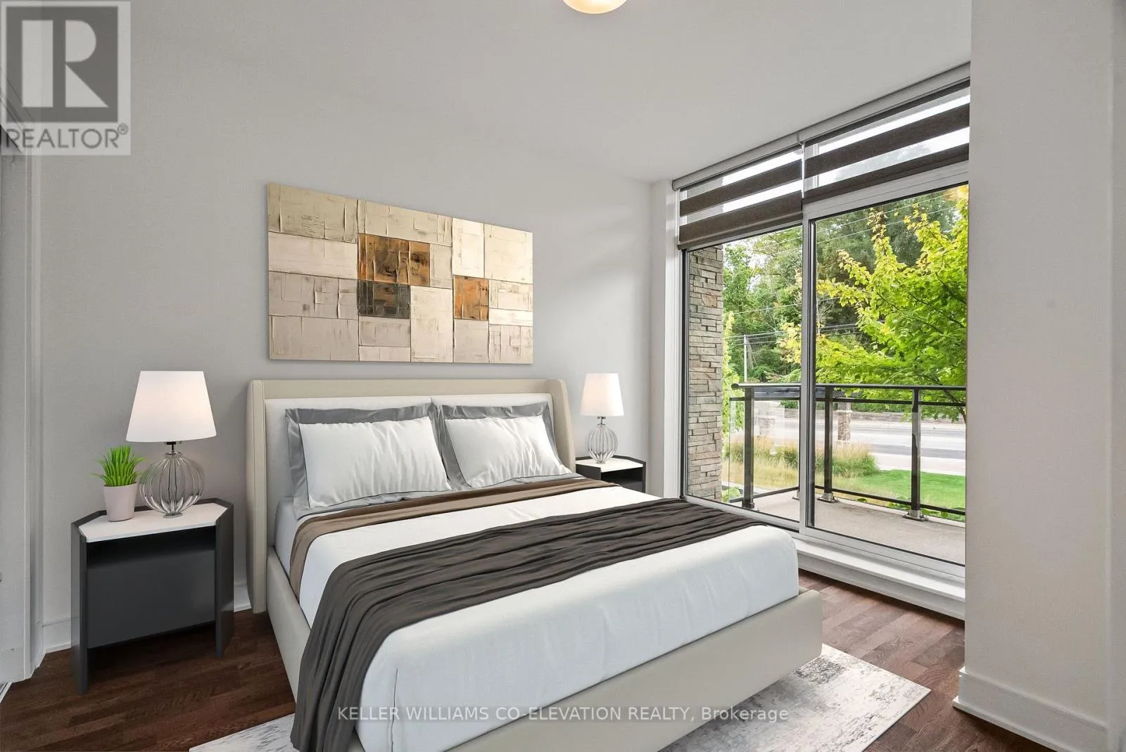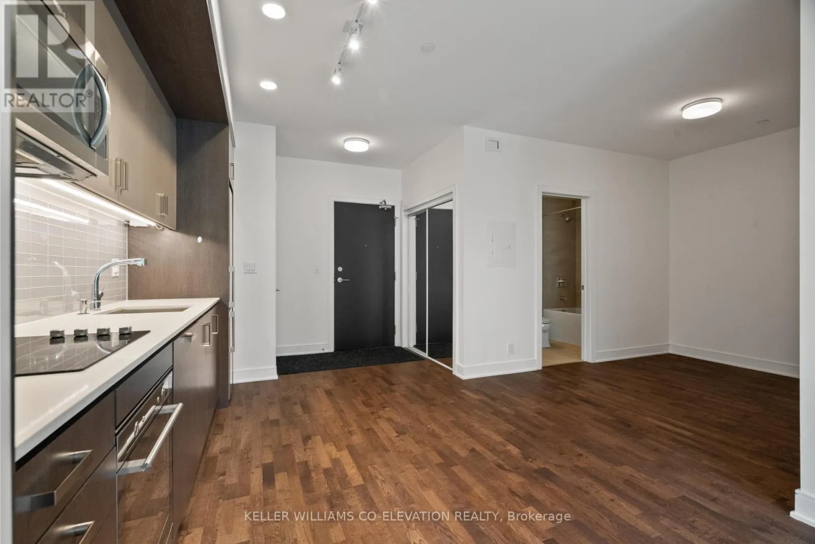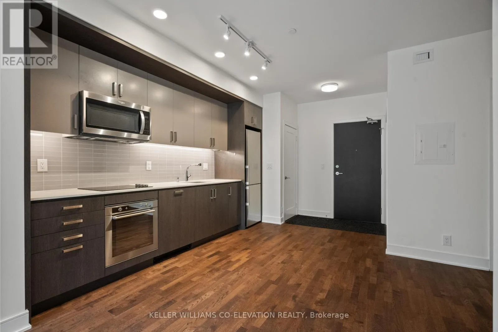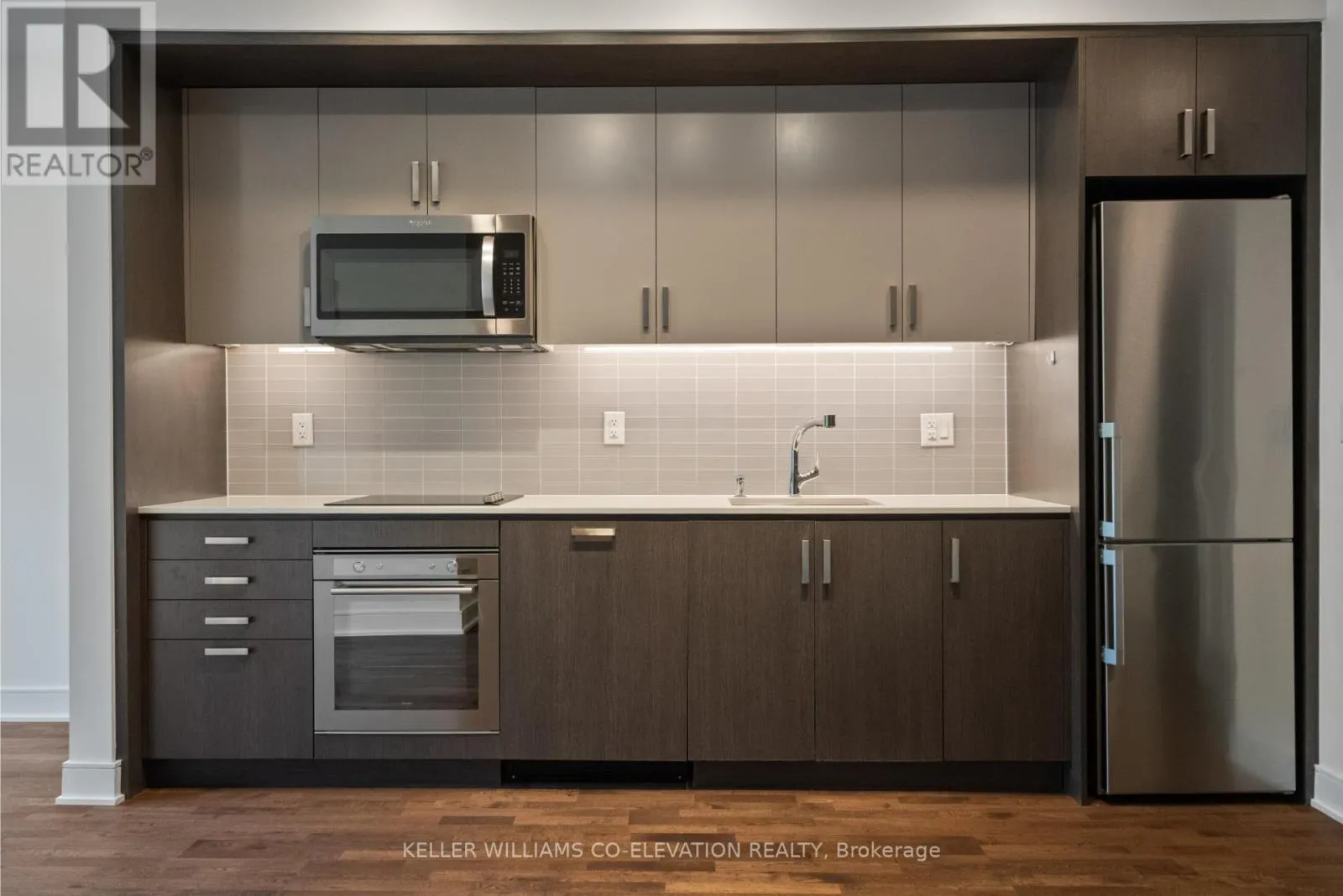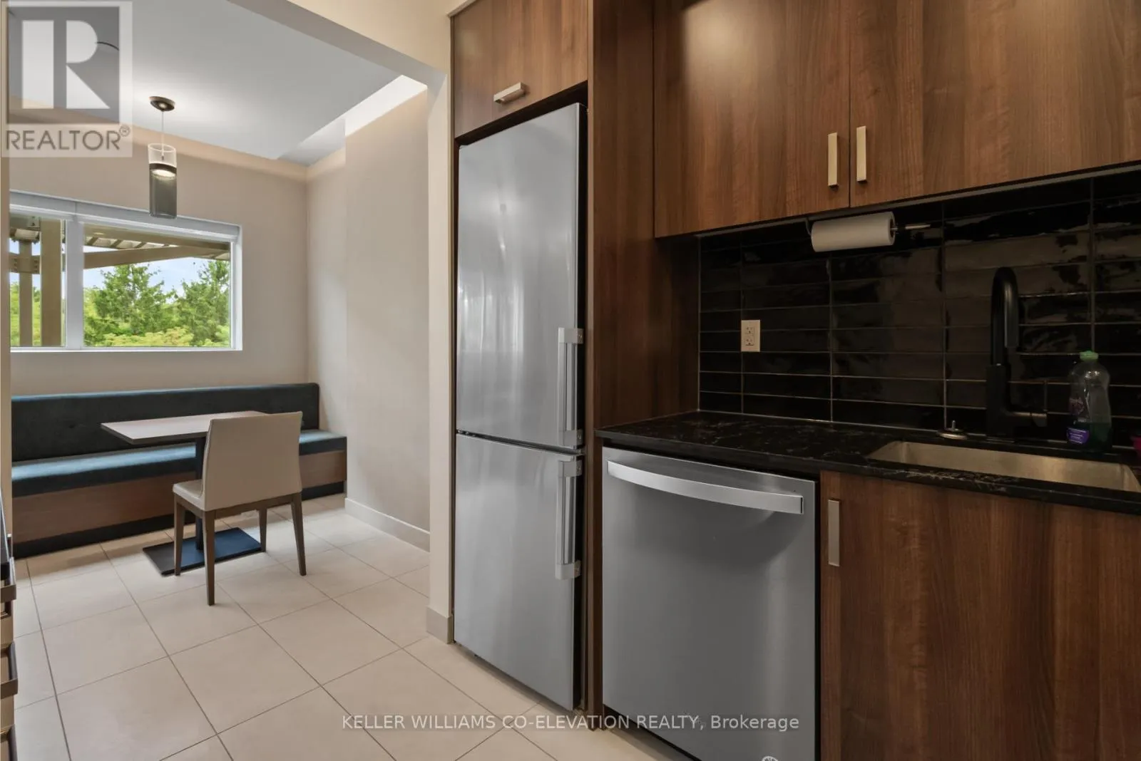 Cross Streets: Lakeshore And Clarkson Road. ** Directions: Lakeshore and Clarkson. Welcome to the coveted Oak Park model at The Craftsman Condos in vibrant Clarkson Village. This bright and stylish ground-level suite offers 660 sq. ft. of open-concept living with one bedroom plus a spacious den perfect as a dining area, office, or guest space. Featuring 9-ft ceilings, warm hardwood floors, and floor-to-ceiling windows, the unit is filled with natural light and opens to an oversized private terrace overlooking the garden. The modern kitchen includes two-tone cabinetry, quartz countertops, stainless steel appliances, and a sleek backsplash. Enjoy thoughtful upgrades like heated bathroom floors, custom window coverings, full-sized laundry, and a Google Nest V3 for smart climate control. Wall-to-wall closets offer ample storage. Included is a rare oversized parking space with a private EV charger and easy access for larger vehicles - one of the few units with this convenience. The Craftsman offers exceptional amenities, including a fitness and yoga centre, 24-hr concierge, rooftop terrace, landscaped courtyard, elegant party room, and guest suite. This is more than a home it's a connected, social community. Located in the prestigious Clarkson Village neighbourhood, just steps to waterfront trails, parks, shops, restaurants, transit, and minutes to Clarkson GO and the QEW. Boutique living meets nature and convenience, welcome home. (id:27476)