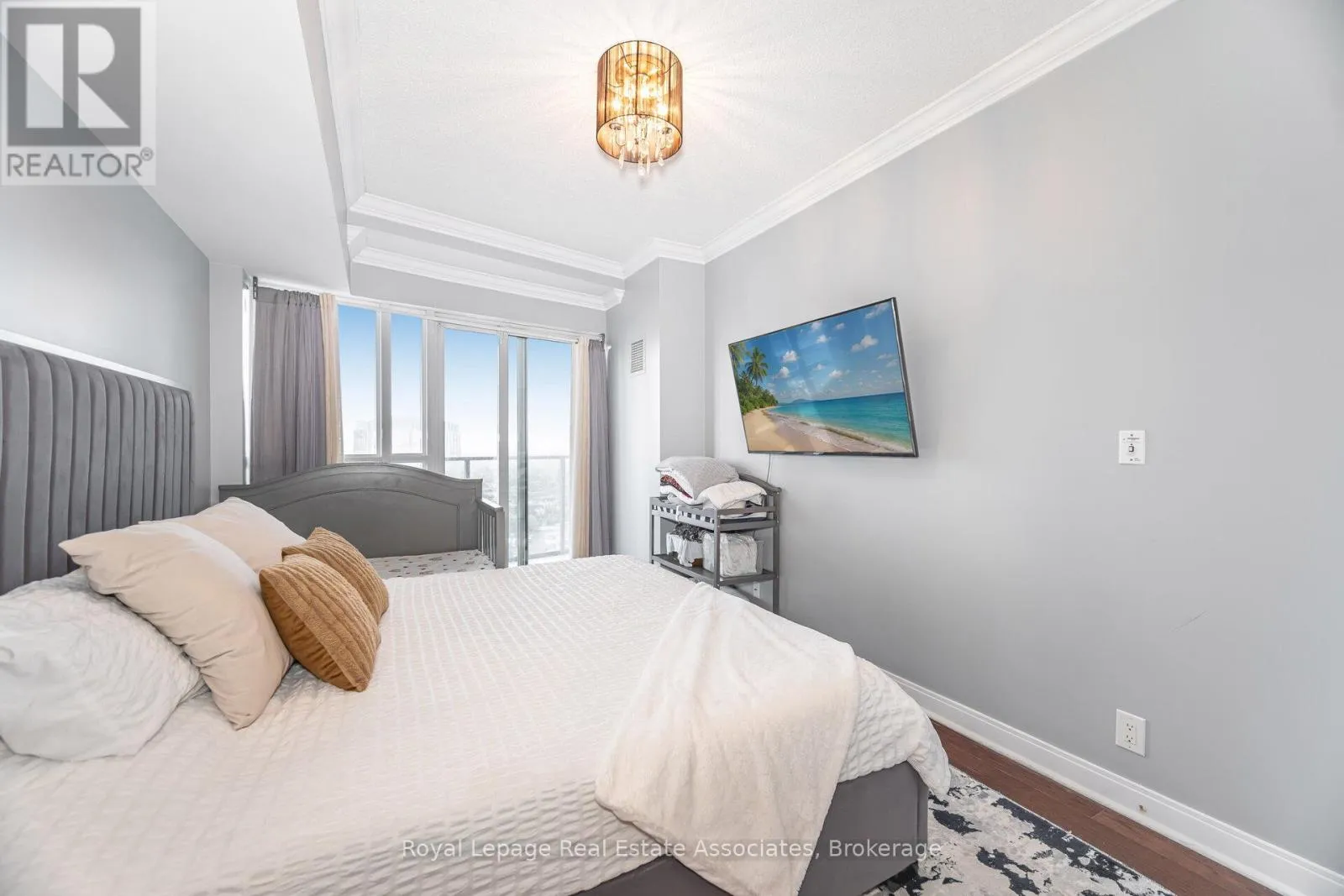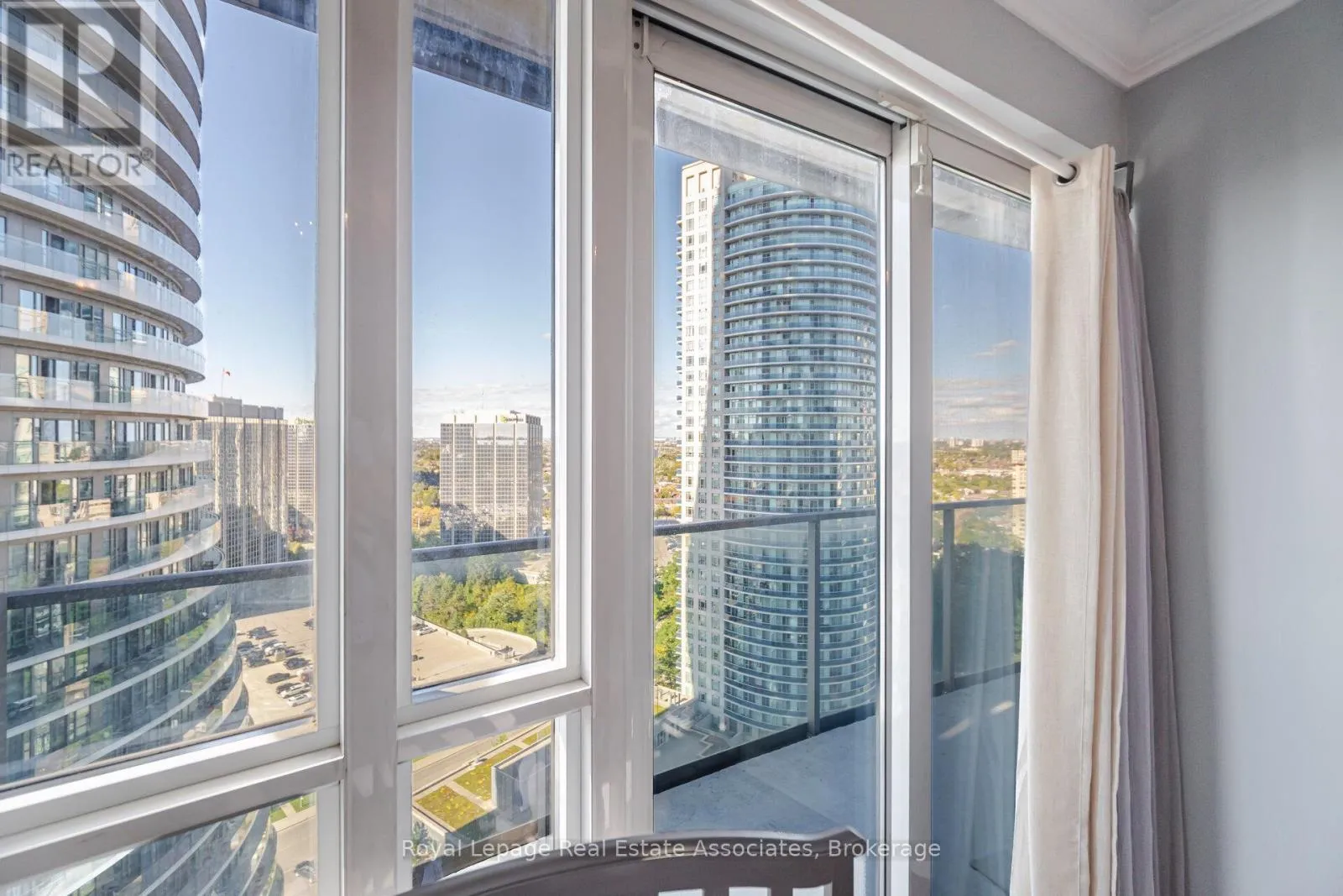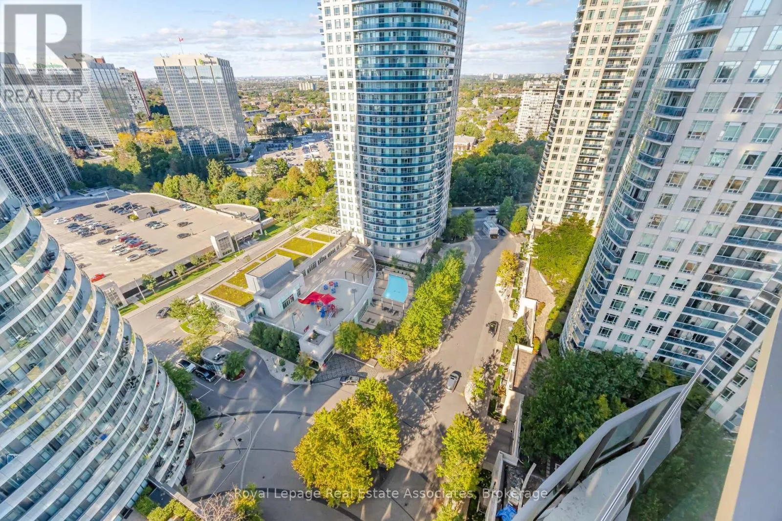 Hurontario and Burnhamthorpe Experience luxury living in the heart of Mississauga at 60 Absolute Ave. This beautifully updated 3-bedroom, 2-bathroom condo offers stunning, unobstructed panoramic views through floor-to-ceiling windows that flood the home with natural light.The thoughtfully designed open-concept layout seamlessly connects the kitchen, dining, and living areas, creating an inviting space for both everyday living and entertaining. The modern kitchen features sleek cabinetry, stone countertops, and a breakfast bar, while the living area extends to a covered balcony accessible from all three bedrooms perfect for enjoying morning coffee or evening sunsets.The spacious primary suite includes a 4-piece ensuite bathroom and a large closet for ample storage. Two additional bedrooms provide flexibility for family, guests, or a home office all with direct balcony access.Residents enjoy a modern lobby and premium building amenities, including a fitness centre, indoor pool, party room, 24-hour concierge, and secure underground parking.Situated in a prime Mississauga location, this property places you at the centre of it all: Square One Shopping Centre right across the street, easy access to dining, entertainment, and parks, and the future Hurontario LRT at your doorstep. Major highways (403, 401, QEW) are just minutes away, making commuting seamless. (id:27476)