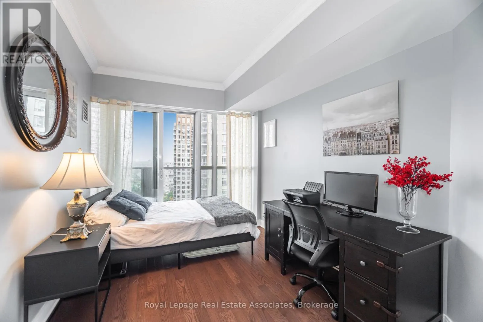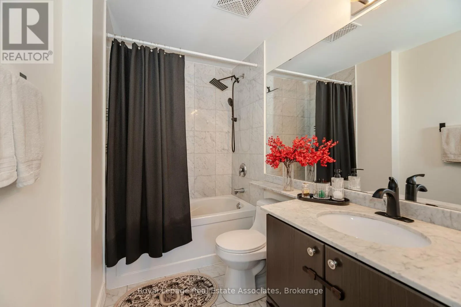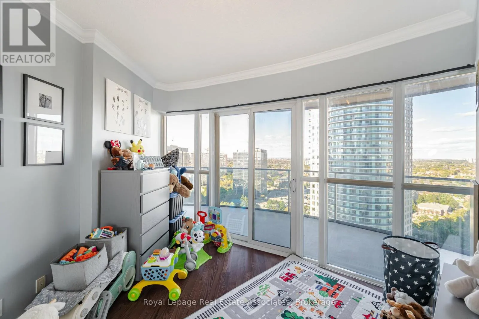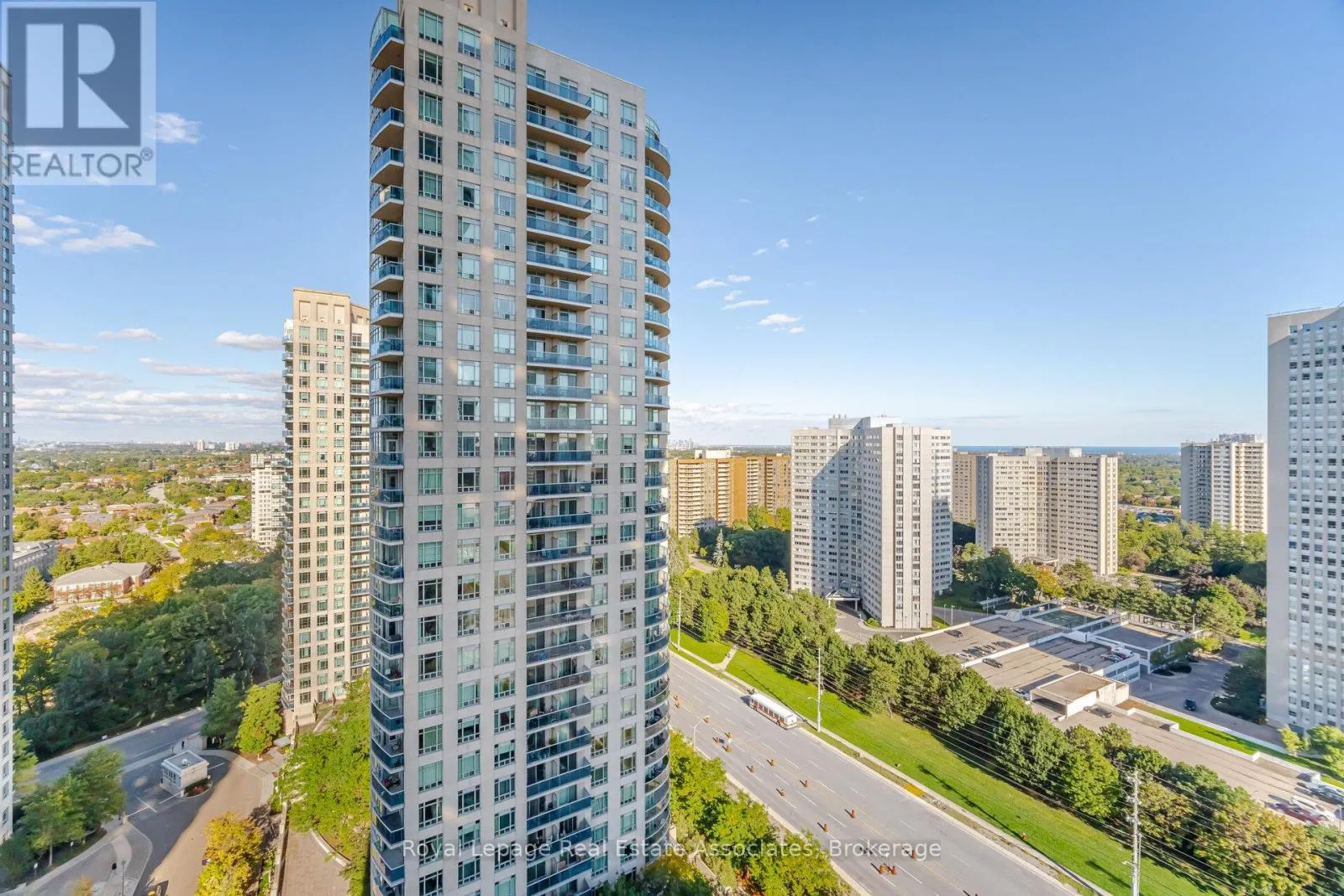 Hurontario and Burnhamthorpe Experience luxury living in the heart of Mississauga at 60 Absolute Ave. This beautifully updated 3-bedroom, 2-bathroom condo offers stunning, unobstructed panoramic views through floor-to-ceiling windows that flood the home with natural light.The thoughtfully designed open-concept layout seamlessly connects the kitchen, dining, and living areas, creating an inviting space for both everyday living and entertaining. The modern kitchen features sleek cabinetry, stone countertops, and a breakfast bar, while the living area extends to a covered balcony accessible from all three bedrooms perfect for enjoying morning coffee or evening sunsets.The spacious primary suite includes a 4-piece ensuite bathroom and a large closet for ample storage. Two additional bedrooms provide flexibility for family, guests, or a home office all with direct balcony access.Residents enjoy a modern lobby and premium building amenities, including a fitness centre, indoor pool, party room, 24-hour concierge, and secure underground parking.Situated in a prime Mississauga location, this property places you at the centre of it all: Square One Shopping Centre right across the street, easy access to dining, entertainment, and parks, and the future Hurontario LRT at your doorstep. Major highways (403, 401, QEW) are just minutes away, making commuting seamless. (id:27476)