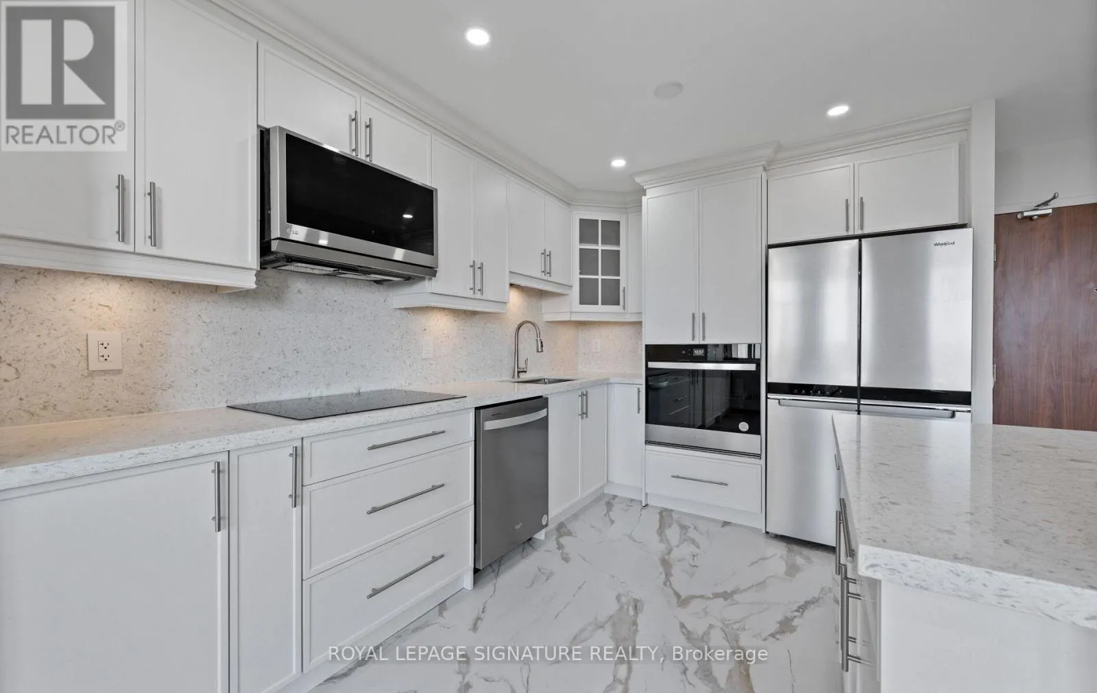 Derry W & Glen Erin ** Completely Gutted and Rebuilt 3-Bedroom Suite w/ 2 Prkg spots & Locker ** Re-built for the owners' personal use, no expense was spared in this renovation which was done by licensed professionals. The re-designed kitchen has five new s/s appliances: a 4-door fridge, a cook-top stove, a built-in wall oven, a microwave, and a dishwasher. Abundant cupboard space, a pantry, quartz counters and matching backsplash complete this kitchen. A new modern electrical breaker panel has been installed, and the entire apartment has been rewired (city-inspected & approved). Neutral-coloured engineered hardwood flooring flows seamlessly across every room. The 5-pc bath has double sinks and a glass shower. The primary bedroom has a deep walk-in closet, with two more large bedrooms. The inside storage room is pre-wired for a washer and dryer. Enjoy sunsets from your full-length west-facing balcony. Heat, water, internet & cable all included. This is a rare opportunity that blends location, lifestyle, and design. Do not miss out! (id:27476)
