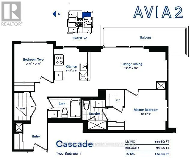 Burnhamthorpe & Confederation Welcome to AVIA 2 by Amacon Developments located in the heart of Mississauga's City Centre. This Corner unit features a functional split 2 Bedroom layout with ample natural light, Floorplan "Cascade" with 866 sqft interior and a spacious 120 sqft balcony with South East facing views. Laminate flooring throughout with modern, light and airy finishes. Modern kitchen with built in appliances and quartz counter tops, Combined living/dining room with wrap around windows offering nothing but natural light. Spacious primary bedroom with both a mirrored closet and a walk in closet with a functional 3pc ensuite. Second Bedroom features mirrored closet and an East view. Large balcony with stunning views of downtown Mississauga. Steps from Sheridan college, square one shopping mall, highway 403, schools, restaurants, entertainment and much more! (id:27476)