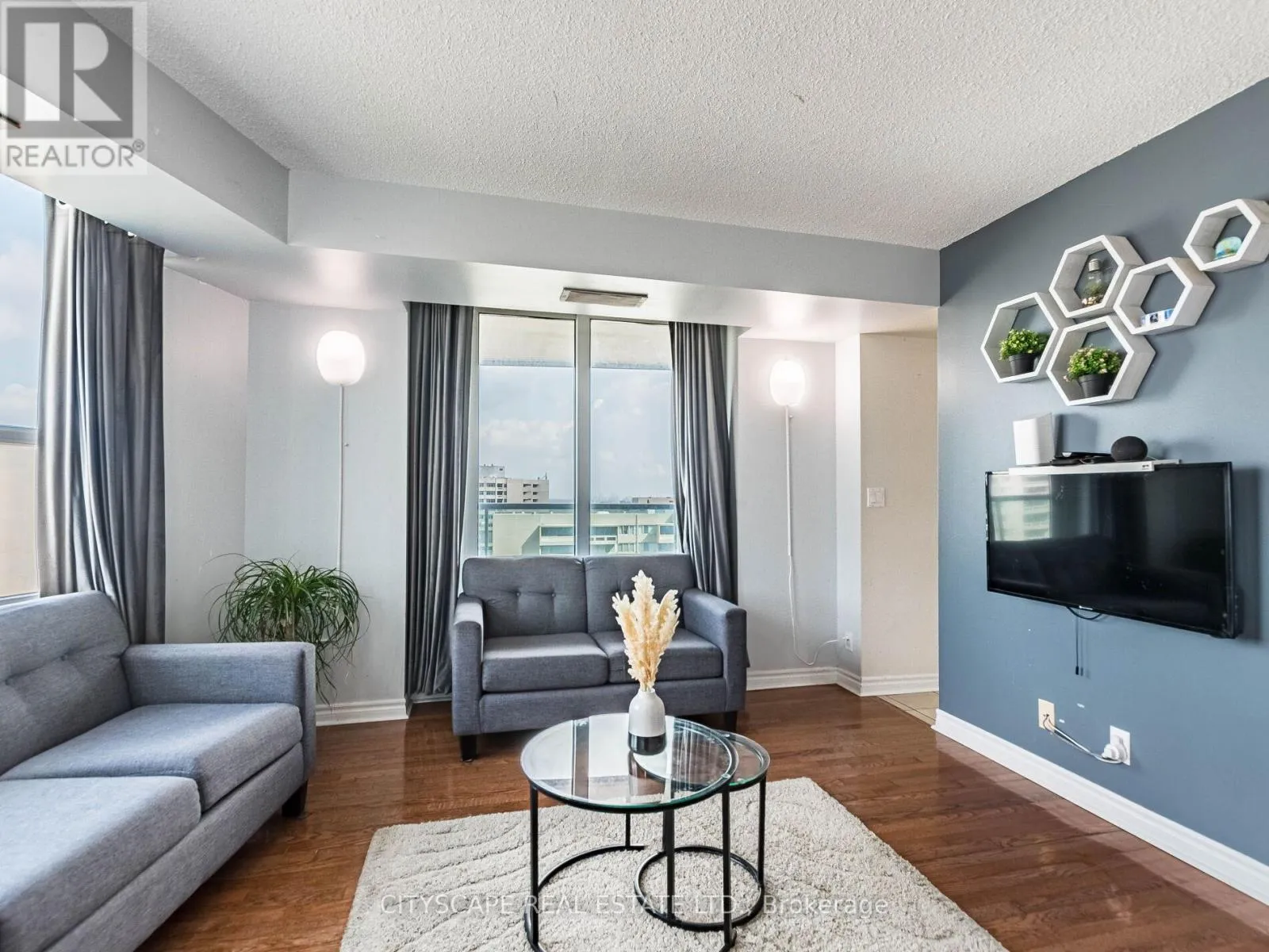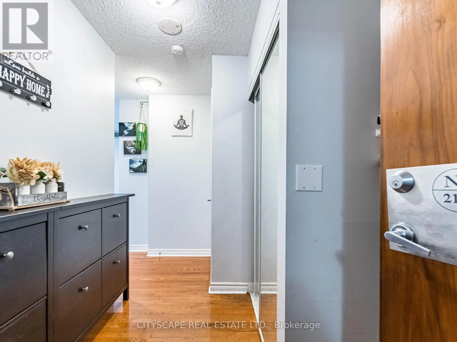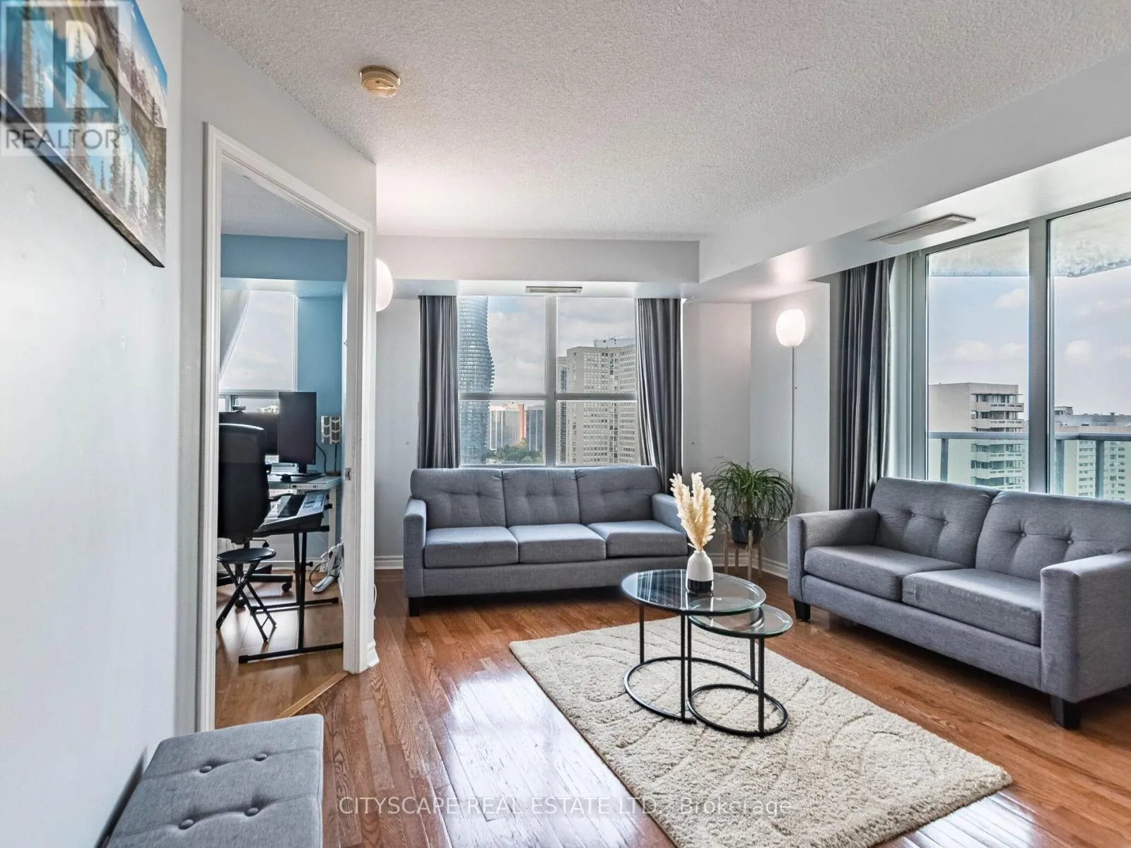 Hurontario/Burnhamthorpe This well-maintained 2+2 bedroom condo offers a bright, open layout with plenty of natural light. Beautiful wood flooring flows throughout, while the kitchen is finished with elegant tiles. Both bedrooms feature large closets, and the inviting living room opens to a full-sized balcony perfect for relaxing or entertaining. Enjoy the convenience of in-suite laundry, one underground parking space and one locker. The building offers exceptional amenities including 24-hour concierge, indoor pool, sauna, gym, party room, and even a movie theatre. Ideally located, you'll be just steps from Square One Shopping Centre, schools, transit, Celebration Square, City Hall, the Civic Centre, library, and major highways. Perfect for families, young professionals, or investors! (id:27476)