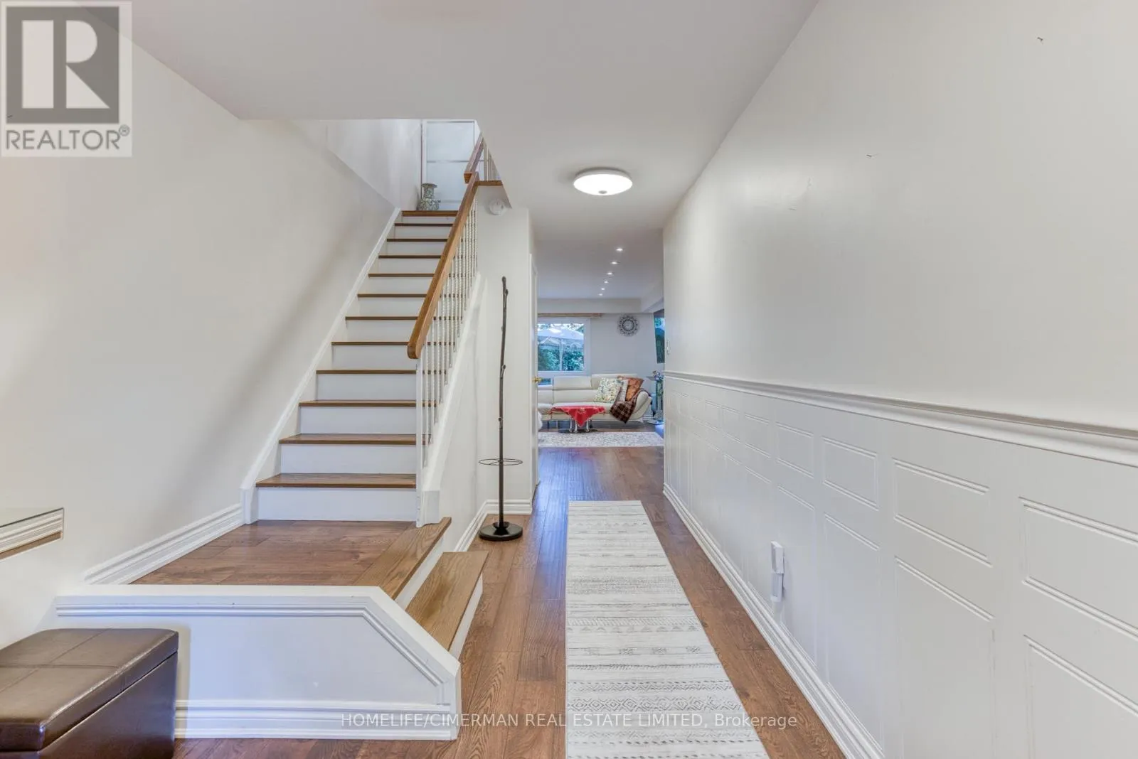 Hurontario and Fairview Welcome to Hampton Oaks! This 3+1 Bedroom, 3 Bath Townhome shows true pride of ownership and is very well-kept. Main level fully renovated featuring new kitchen cabinets with under cabinet lighting, quartz counter and ceramic backsplash, smoot ceiling, pot lights in living room, wainscotting and engineered hardwood floors. Primary ensuite and walk-in closet. Basement offers one bedroom with walk-in closet and renovated 3pc bath, might be a very good addition for temporary guests accommodation. Two car parking on driveway and garage. Lovely private backyard patio surrounded by mature trees. Bright, spacious and clean. Very welcoming and ready to move in. Must see! Walking distance to Cooksville Go and future Hurontario LRT. (id:27476)