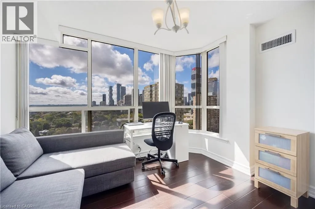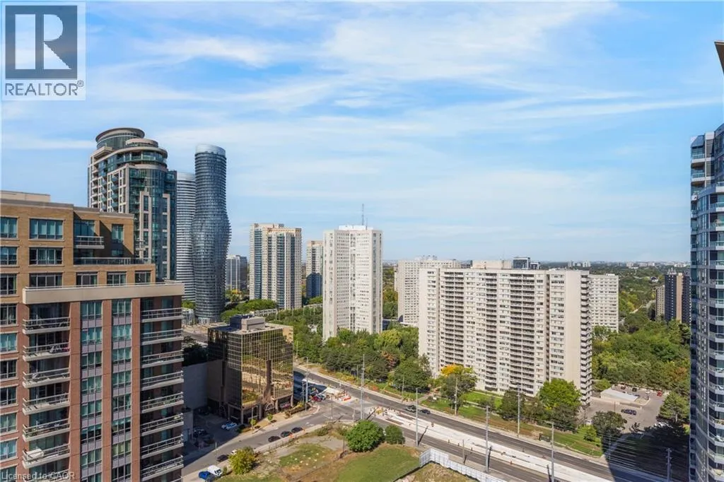 HURONTARIO TOWARDS CENTRAL PKY E Welcome to this stunning 2-bedroom, 2-bathroom condo on the 22nd floor of 55 Elm Drive W, offering some of the most breathtaking, unobstructed views of the city through an entire wall of floor-to-ceiling windows that run from the primary bedroom through the open-concept living and dining areas, and into the second bedroom. The natural light and skyline vistas create a truly elevated living experience. Inside, you'll find a functional layout perfect for both relaxing and entertaining, while the building itself offers an impressive selection of amenities including outdoor tennis courts, indoor squash courts, a rooftop BBQ area and expansive common terrace, an indoor pool, hot tub, sauna, a fully equipped gym, library, billiards room, party room, and boardroom. Located in the heart of Mississauga, just steps from Square One, transit, shopping, and dining, this condo combines luxury, convenience, and incredible views in one exceptional package. (id:27476)