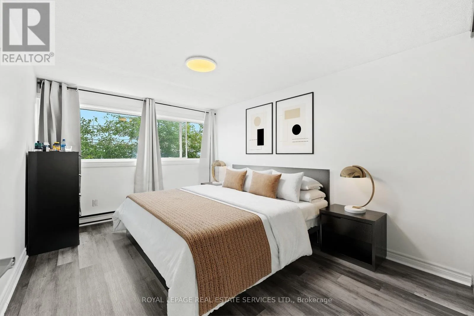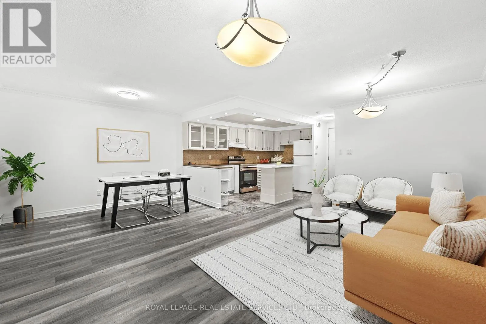 Cross Streets: Dundas & Tomken. ** Directions: From Dundas St E &Tomken Rd, head south on Tomken Rd, turn left onto Constitution Blvd. Property is in complex on the left. Discover comfortable, stylish living in this sunlit 2 bed, 1 bath condo townhouse in the heart of Applewood. With over 1000 sq ft of well laid out space. The main level welcomes you with an open concept living/dining area, complete with crown moulding, pot lighting, and a walk out to a south facing balcony that floods the space with natural light. You'll love the kitchen centre island, ideal for meal prep or casual gatherings, while upstairs features two good sized bedrooms with generous closets and large picture windows. The bathroom has been tastefully updated, and finishing touches like fresh paint, vinyl plank flooring, and hardwood steps make this home move in ready.Step outside and enjoy a fenced front patio, perfect for morning coffee or a small garden. The building offers visitor parking, and the maintenance fees include water, building insurance, and common elements.Location is a big win: you're just steps from transit (with direct access to subway connections), and a short drive from high-traffic arteries like Hwy 427, QEW, and 403. Schools, parks, shopping, and amenities are all within easy reach.Whether you're a first-time buyer, down-sizer, or investor, this unit delivers both style and convenience in a mature, well connected neighbourhood. Welcome home! (id:27476)