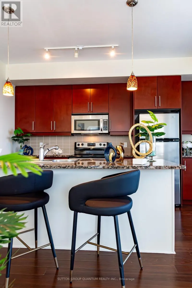Cross Streets: Hurontario/Lakeshore. ** Directions: Hurontario and Lakeshore in Port Credit. Experience breathtaking lake views and modern elegance in this spacious Port Credit suite. This upgraded 2-bedroom plus den, 2 full bath residence with a large balcony showcasing magnificent views of Lake Ontario, downtown Port Credit, and beyond. The Gourmet Kitchen features rich chocolate cabinetry, stainless steel appliances, a large quartz peninsula, and a striking backsplash- perfect for both cooking and entertaining. The upgraded primary ensuite offers a luxurious his-and-hers vanity for added comfort and style. Enjoy the building's exceptional amenities, including a party room, fitness centre, outdoor terrace, landscaped courtyard, meeting room, and 24 hour concierge service. Located just steps from the Go Train, commuting to downtown Toronto is effortless. You'll also love the charm of Port Credit, with its boutique shops, restaurants, and scenic waterfront trails right at your doorstep. Take advantage of this rare opportunity to ownn a luxurious waterfront home in the heart of PortCredit. Book your private tour today. (id:27476)