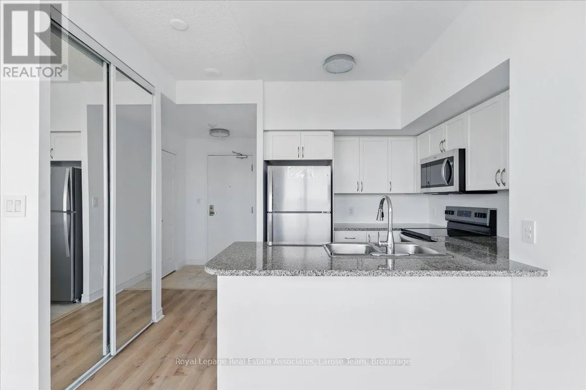 Hurontario & Burnhamthorpe Rd Elevate your everyday in this sky high showstopper! Rarely offered floor plan with the best views in the building (southeast). Perched on the 37th-floor this 651 sq ft sun-drenched suite stuns with unobstructed, panoramic sunrise views of Lake Ontario, CN Tower and Downtown skyline. Soaring 9-ft ceilings and fully renovated with brand new stainless steel appliances, granite counters, stylish refreshed white kitchen, new laminate floors, zebra blinds, and walk-outs to an open balcony from both the bedroom and living areas. Washroom features new vanity and faucet. Owned locker and one underground parking, Ensuite security panel. Steps to Square One, dining, parks (inc. Kariya Park), Sheridan and Mohawk Colleges and a short 10 minute drive to UTM and proximity to transit/major highways (401,403,QEW) . This one checks all the boxes and then some. Bldg. offers lower maintenance fees and tons of amenities: pool/hot tub, sauna, gym, guest suites, EV car chargers, and a top floor rooftop penthouse lounge/party room with wrap around terraces. TURNKEY AND MOVE IN READY in highly walkable area! Pet friendly building! (id:27476)
