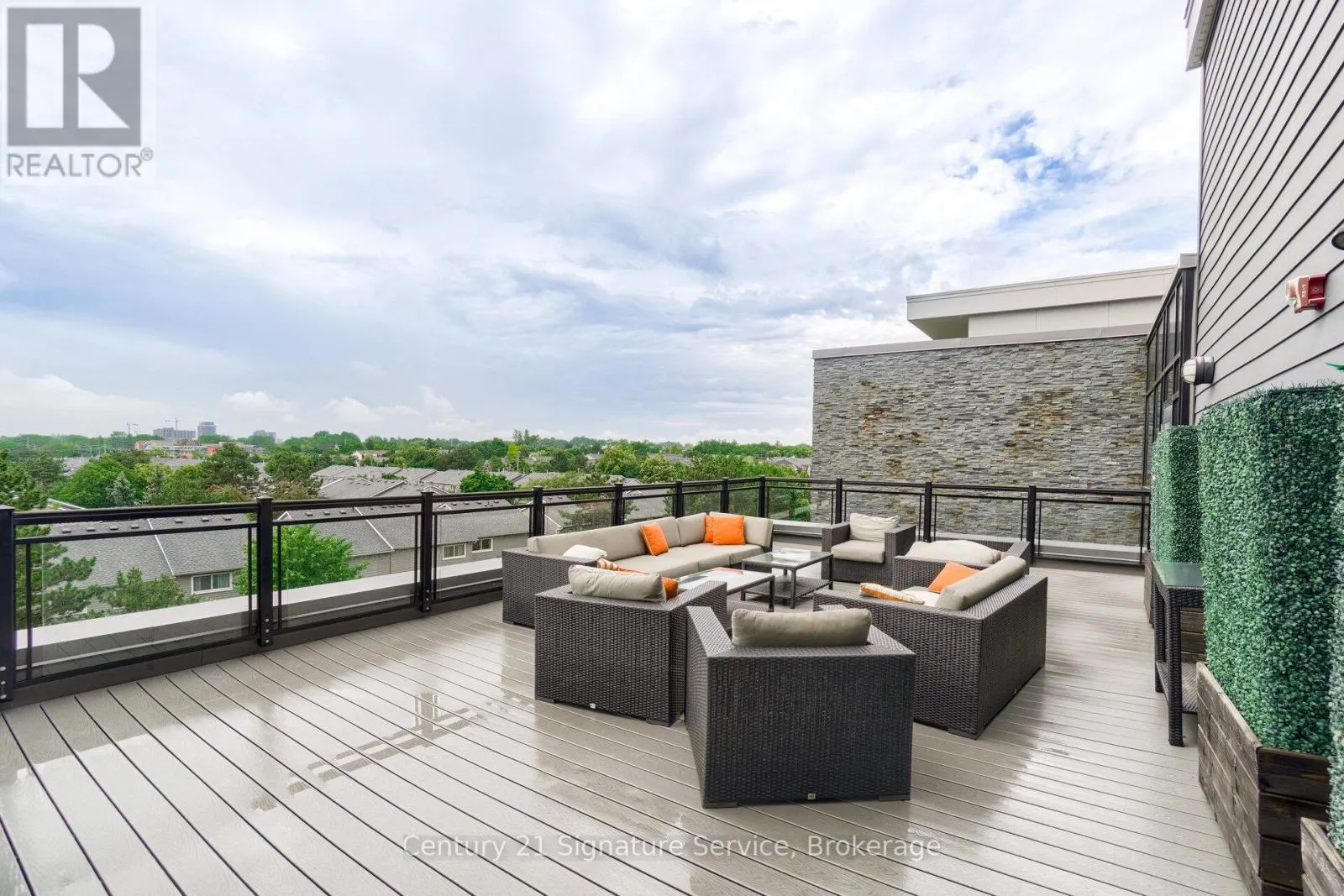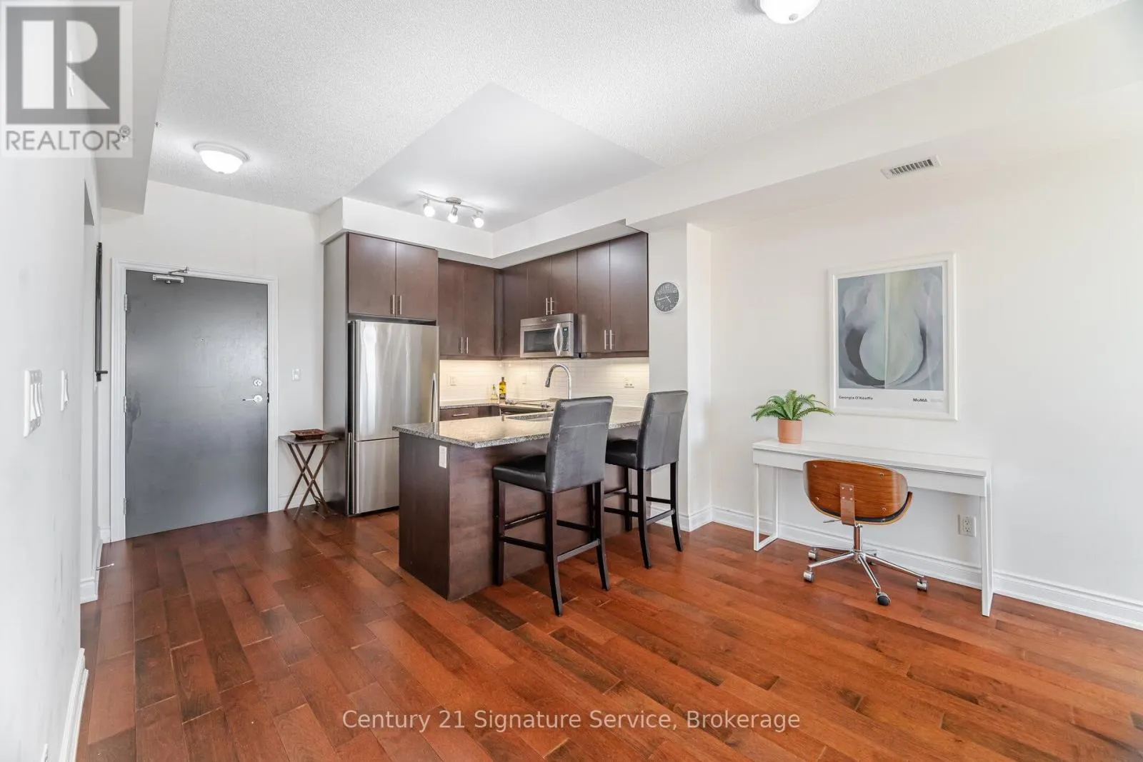 Erin Mills & South Millway This stunning 1-bedroom plus den condo is the perfect blend of style and convenience. Step into a bright, open-concept living area with a walkout to your private balcony, complete with a gas BBQ hookup for easy entertaining. The kitchen featuring a breakfast bar, granite countertops, and modern stainless-steel appliances. The separate den is a versatile space, ideal for a home office, study, or secondary bedroom. You'll also appreciate the convenience of an in-suite washer and dryer. This building is an entertainer's paradise. Enjoy the breathtaking south-facing rooftop terrace, a beautifully decorated party room and lounge with a full-size bar and elegant fireplace, a main-floor lounge with a TV, and a fully equipped exercise room. Enjoy an unbeatable location, just steps away from beautiful trails and parks. You're also close to transit, shopping, UTM Campus, and the Erindale and Clarkson GO Stations, with easy access to major highways 403, 407, and QEW. (id:27476)
