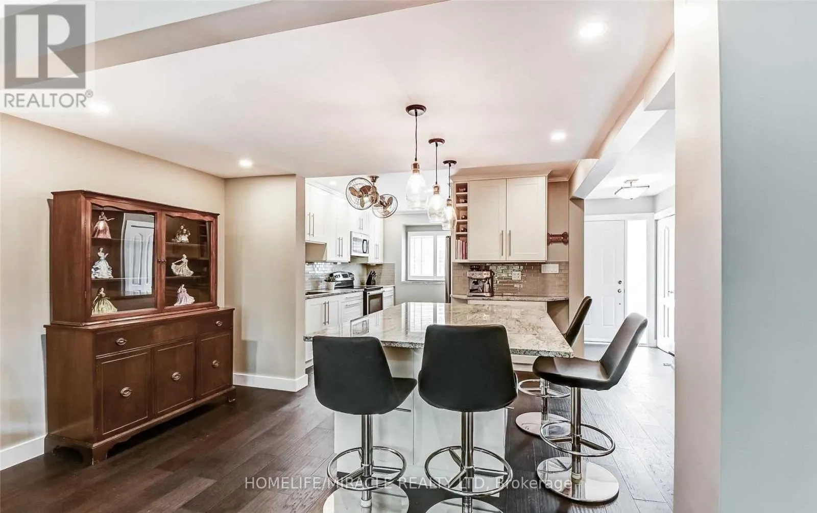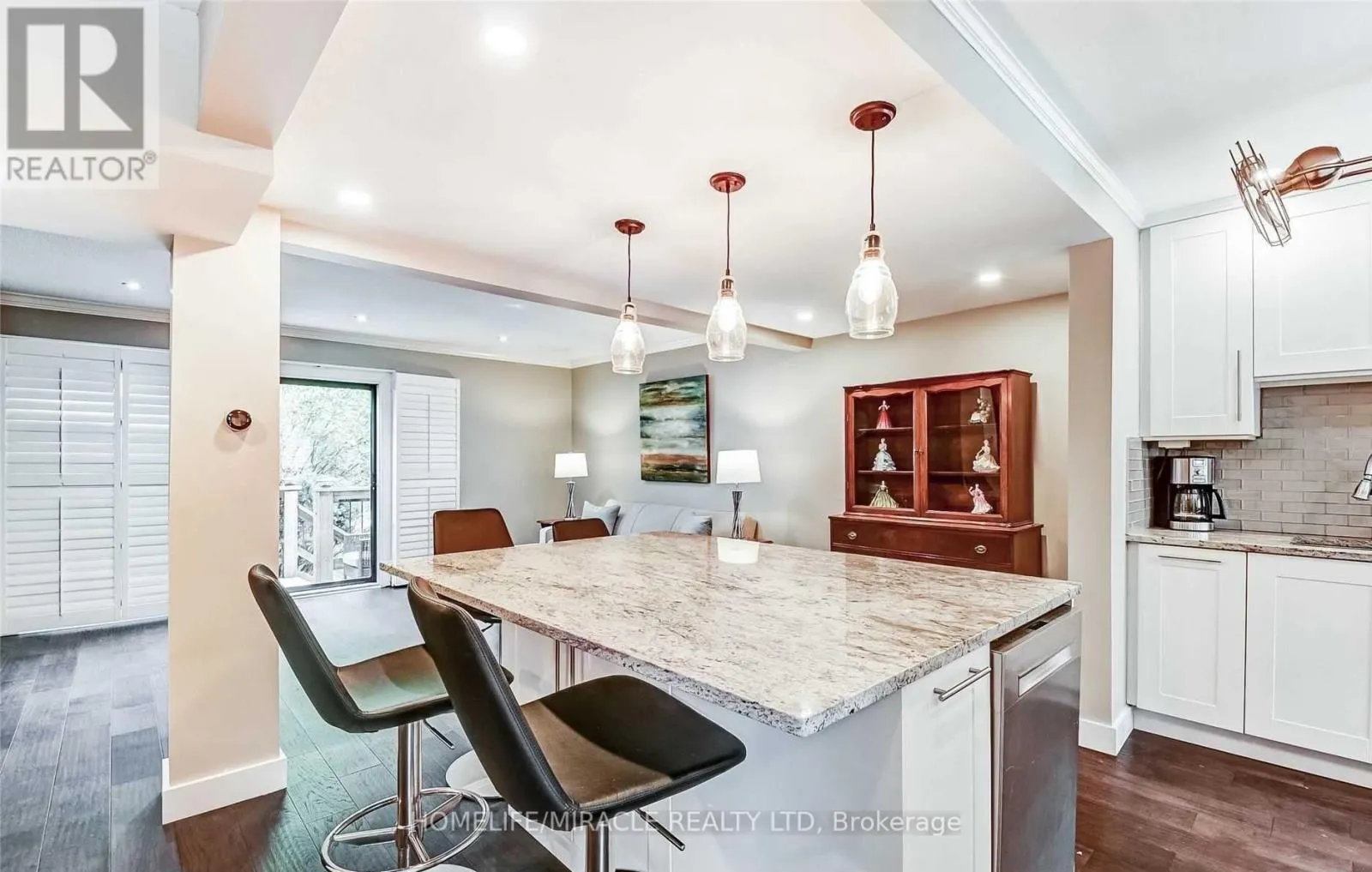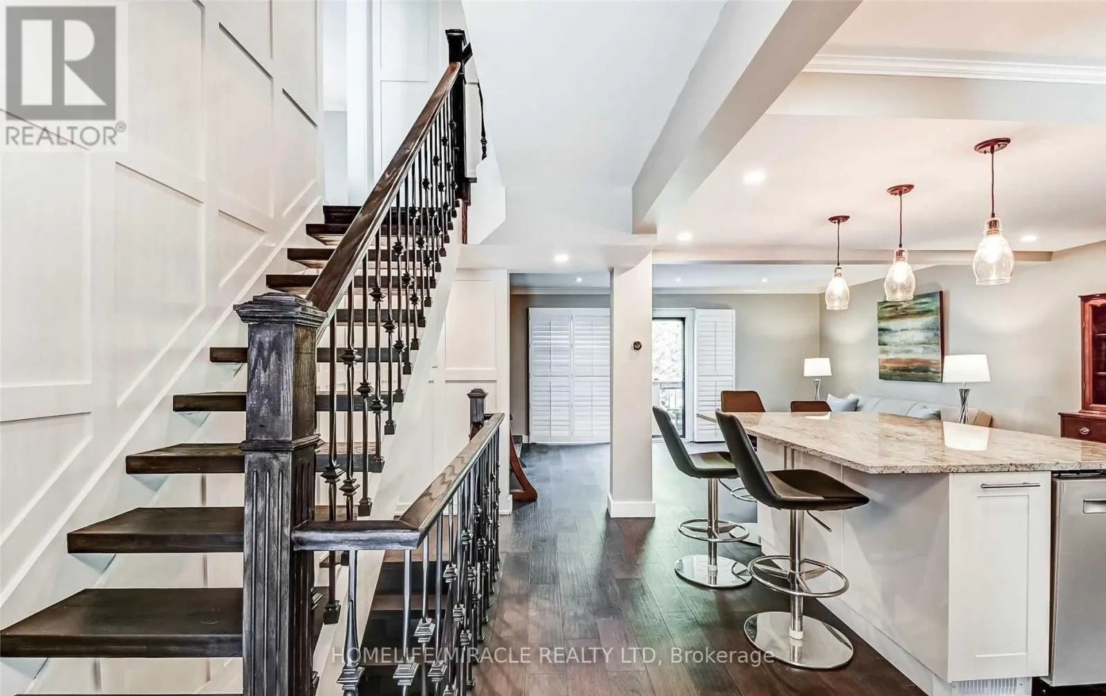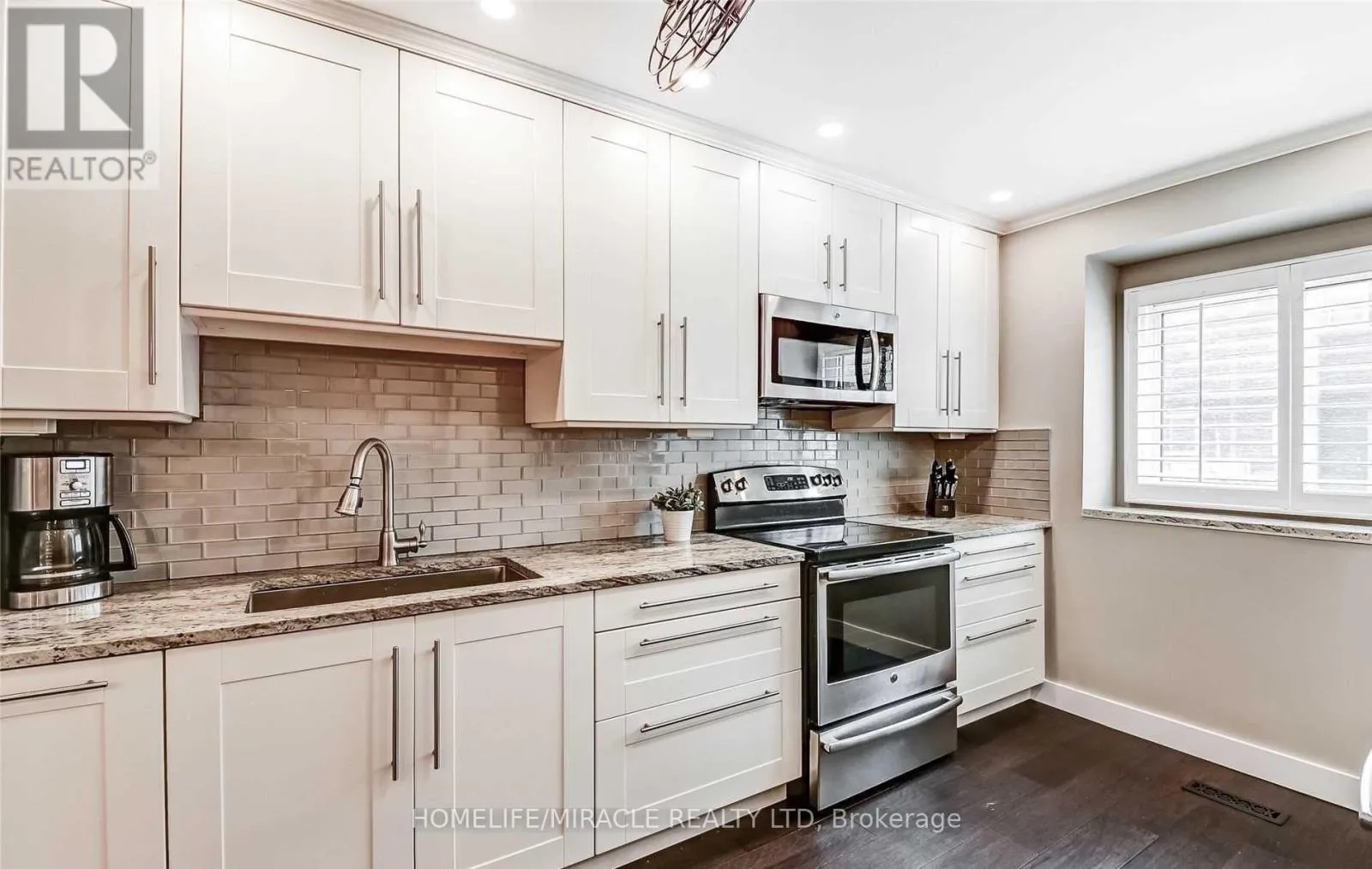 Cross Streets: Glen Erin / Shelter Bay. ** Directions: Derry Rd/ Glen Erin Dr. Spacious and beautifully maintained 4-bedroom, 3-bathroom condo townhouse in sought-after Meadowvale, Mississauga. Extensively upgraded in 2021 with over $100,000 in improvements, including a modern kitchen with stainless steel appliances, tiled backsplash, and centre island. Bathrooms tastefully updated, complemented by Hickory Antique Charm hardwood floors, wrought iron railings, modern trims, and fresh paint throughout. Open-concept design backing onto Maplewood Park. Steps to Lake Aquitaine, scenic trails, transit, schools, and Meadowvale Community Centre. A well-cared-for home in a prime family-friendly location offering excellent value. (id:27476)